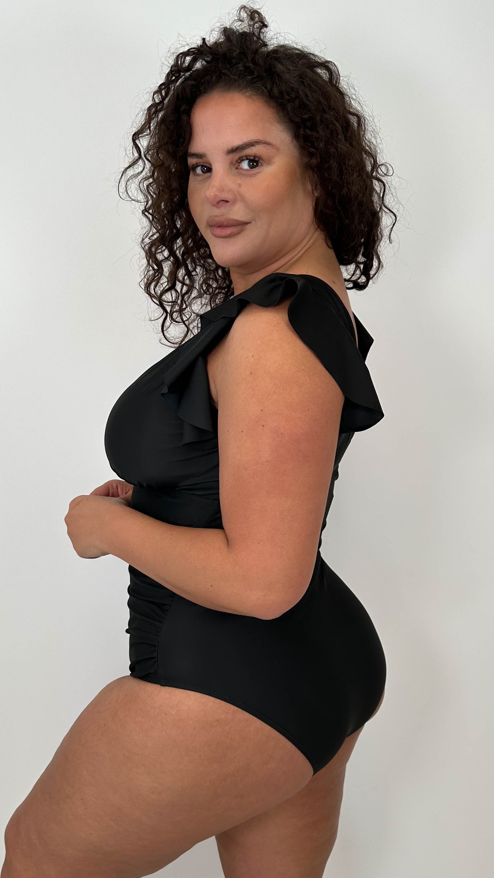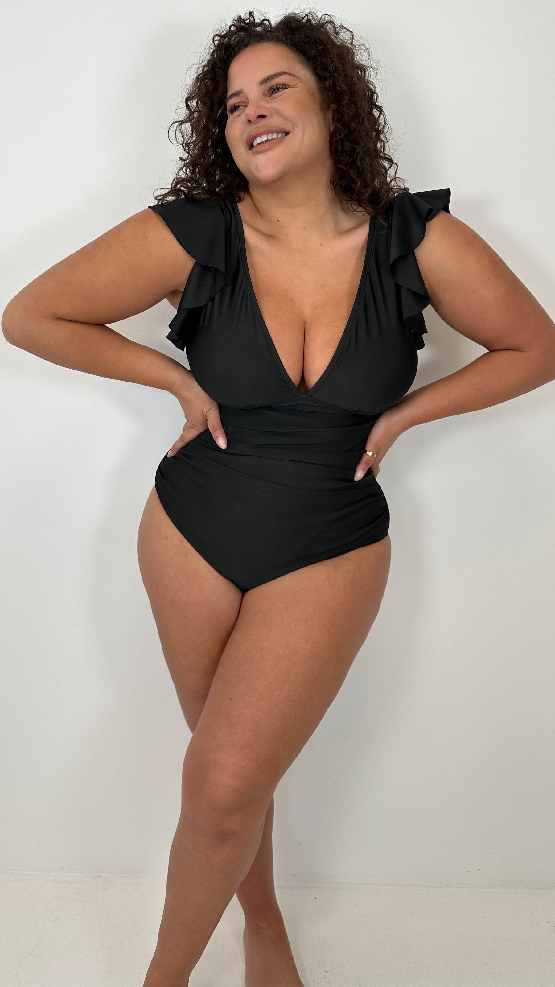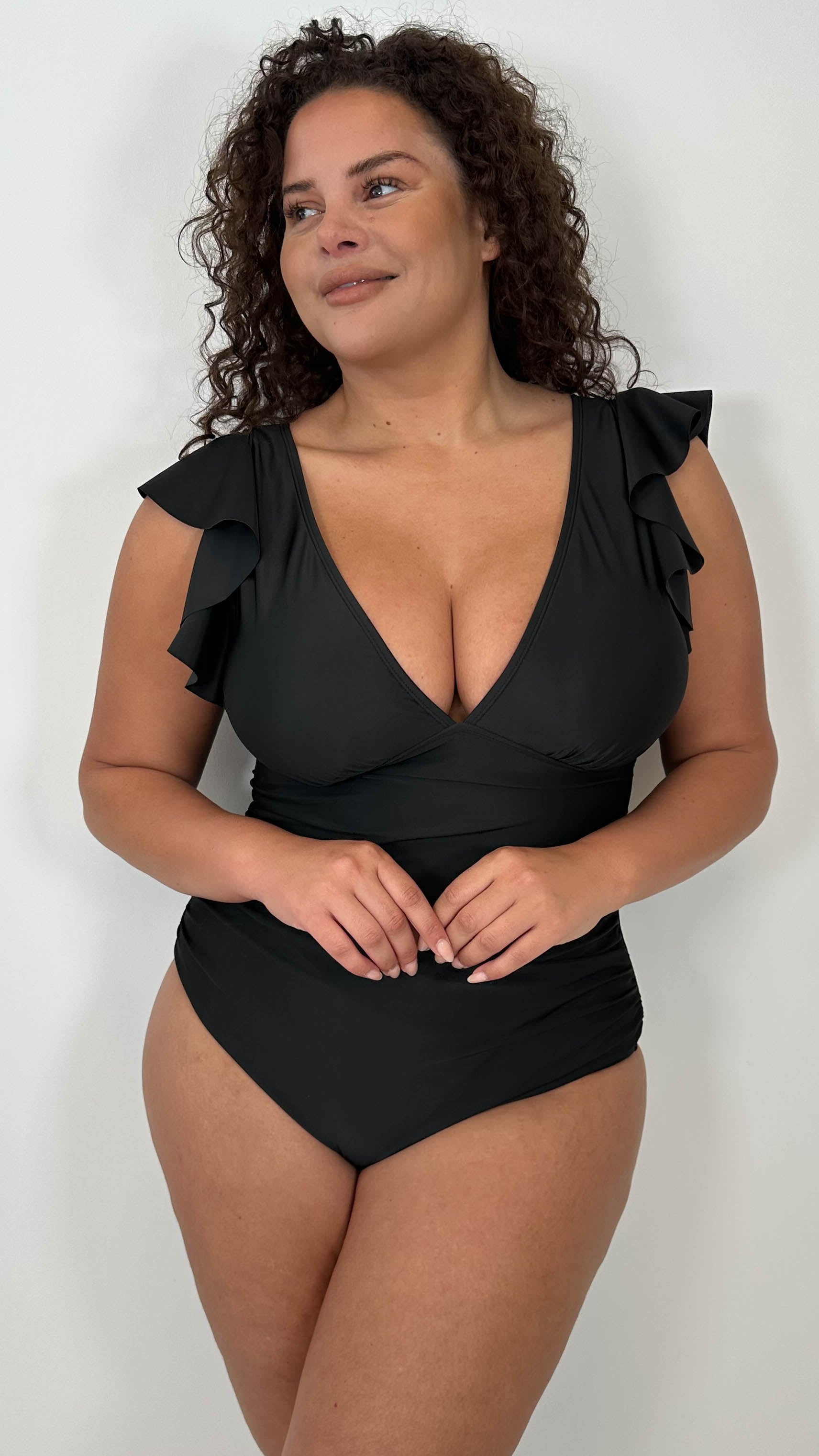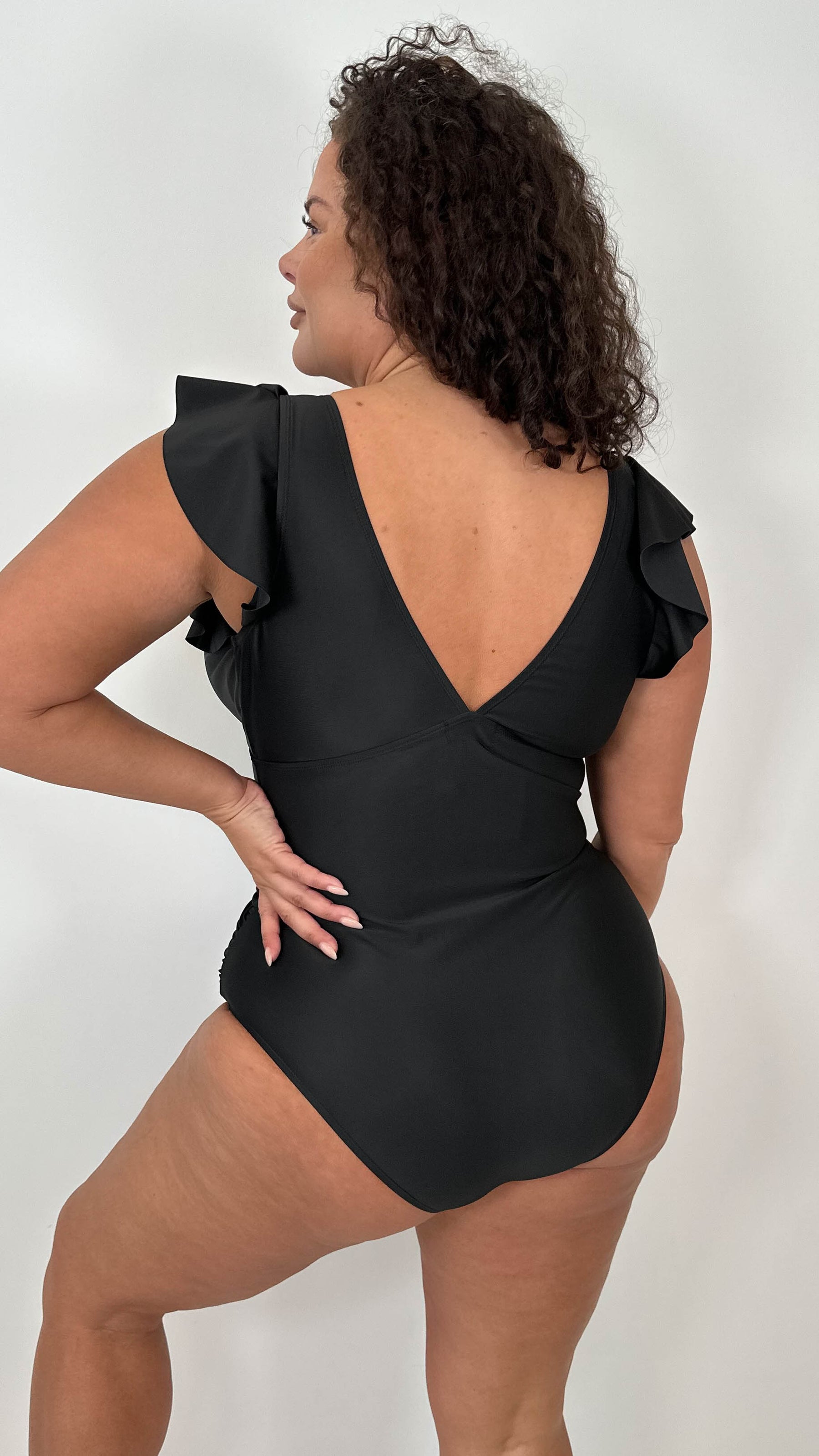 CurveWow Frill Sleeve Swimsuit Black