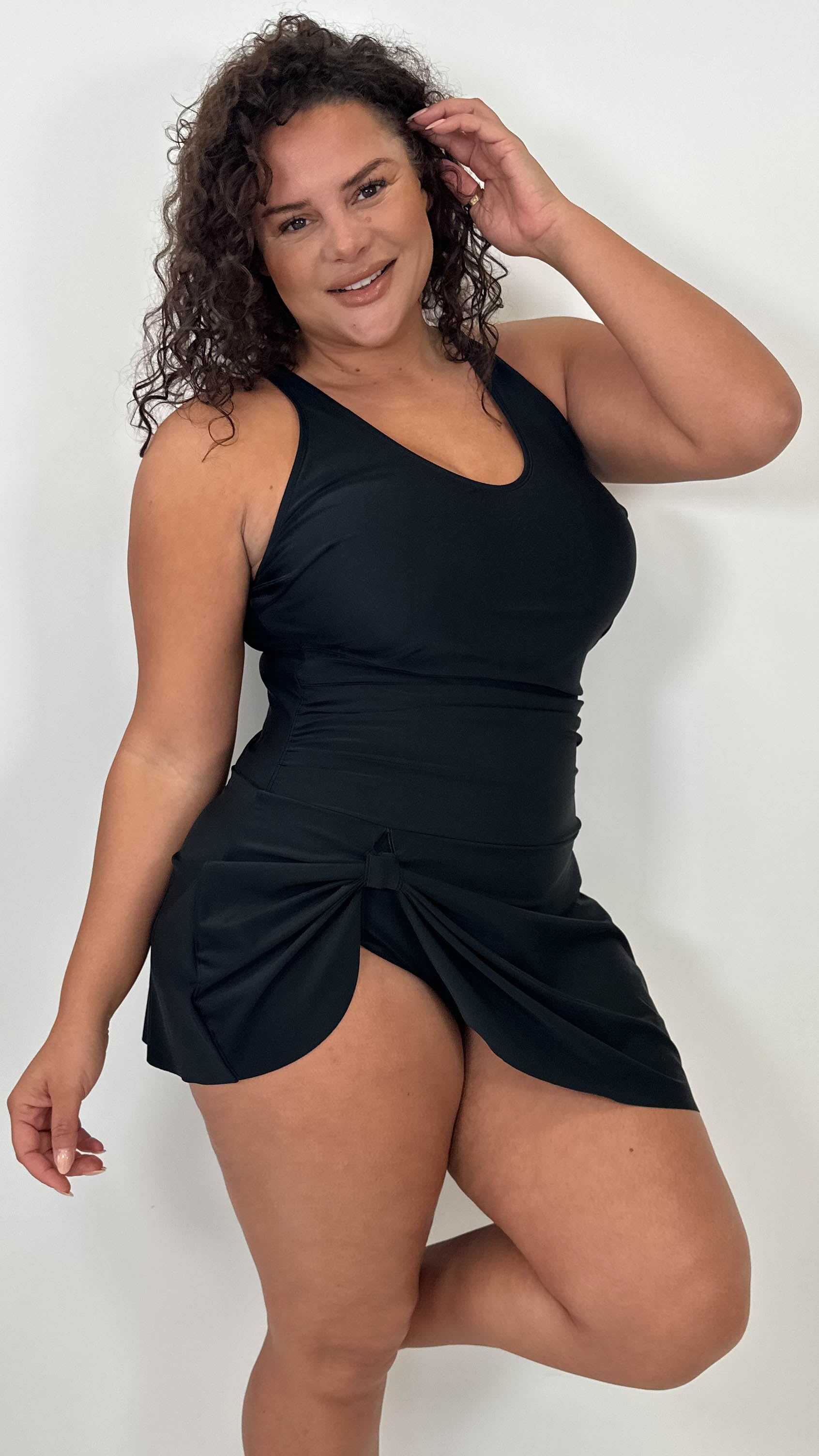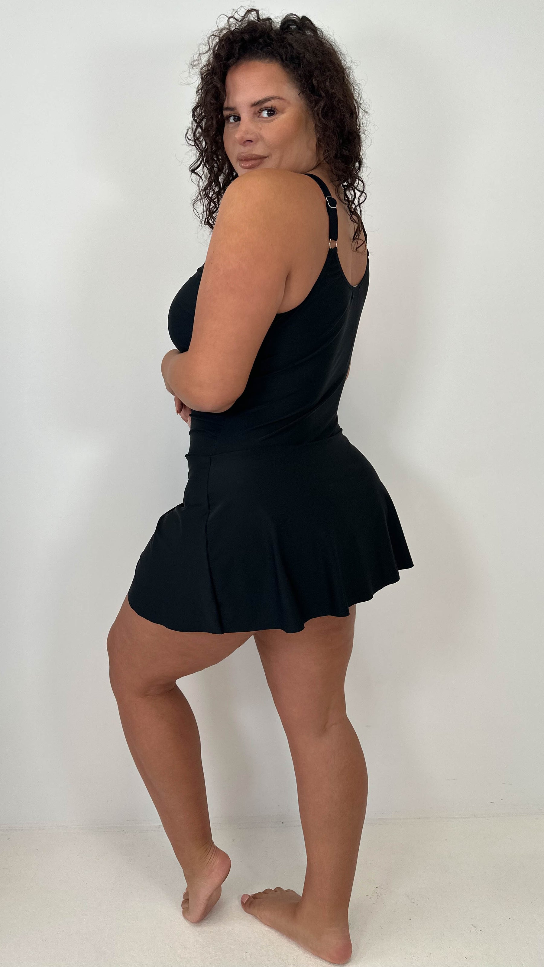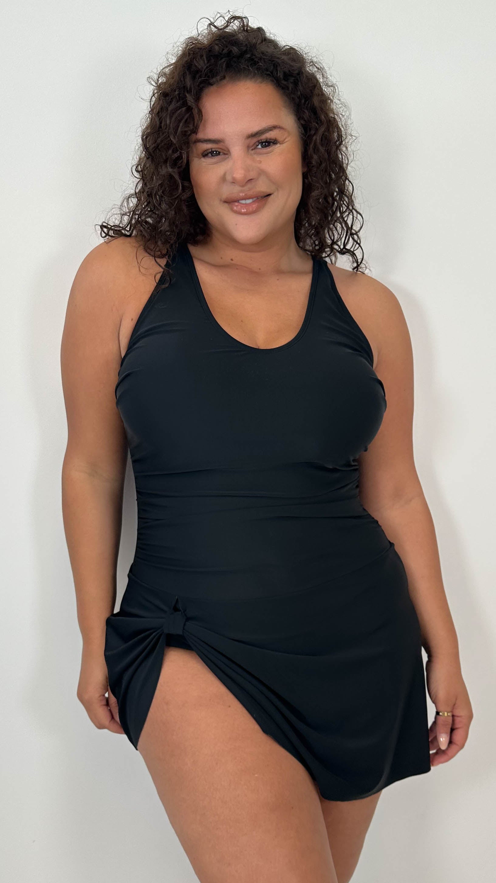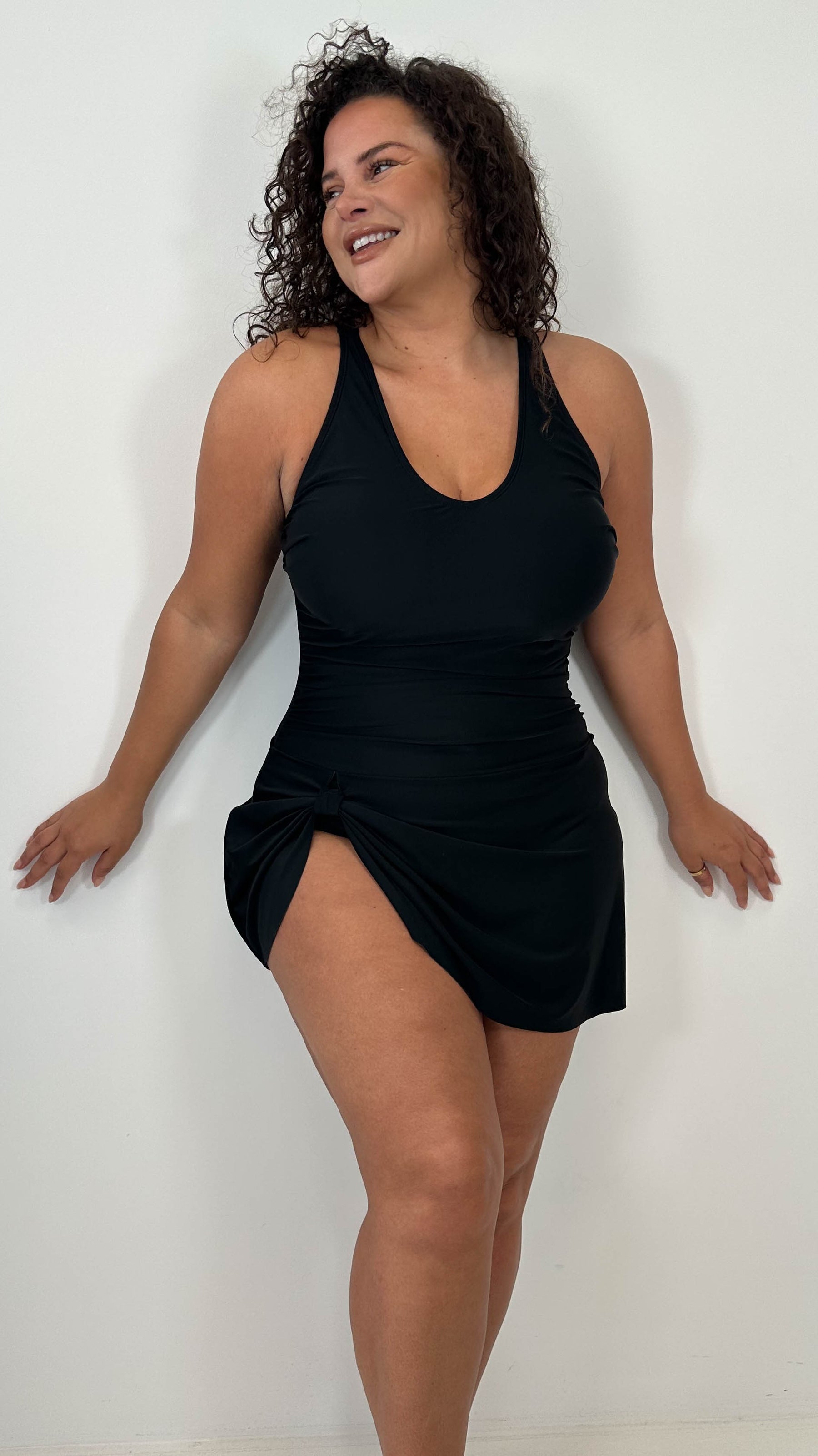 CurveWow Gathered Front Midi Dress Pink & Black Floral
