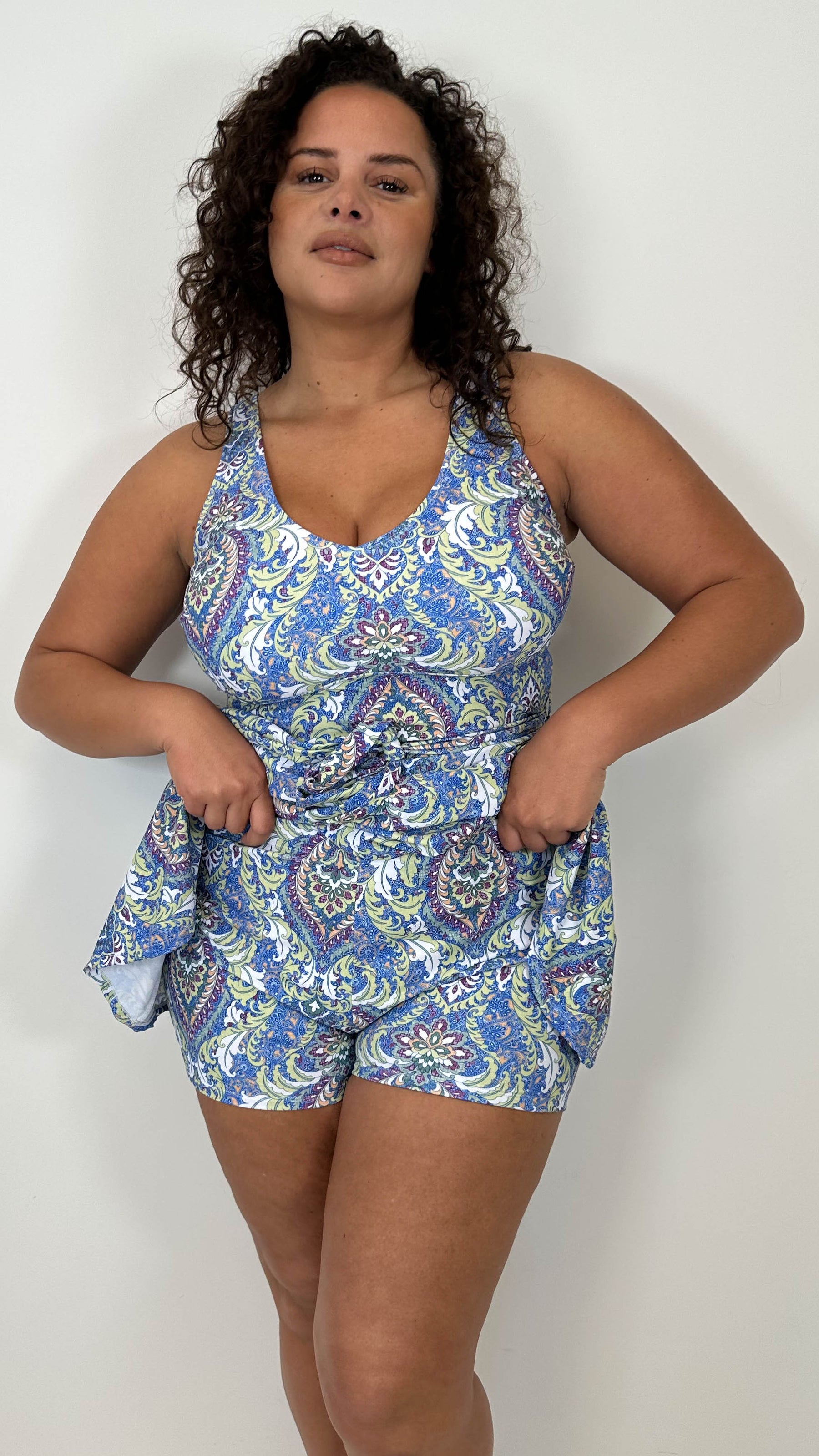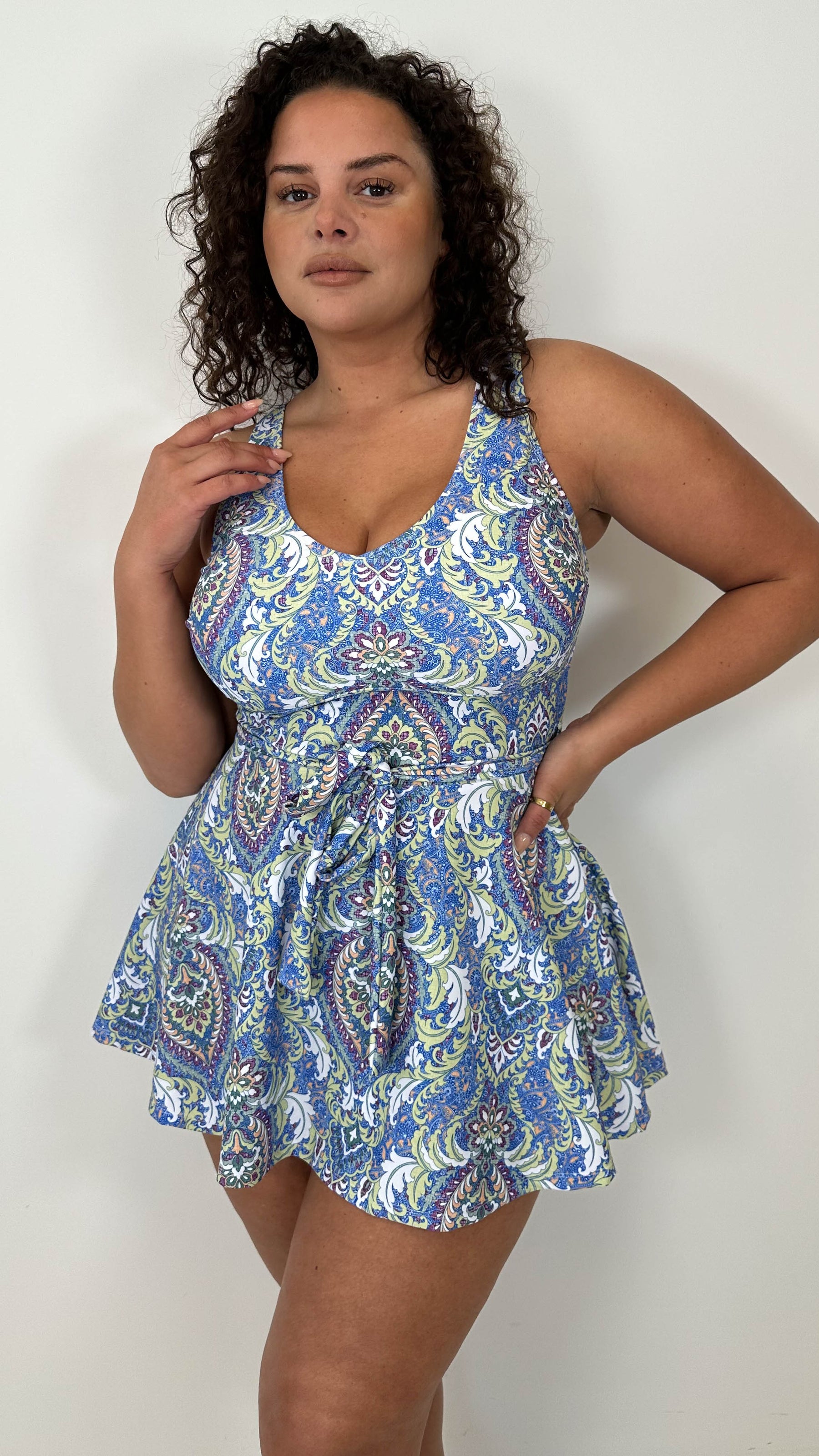 CurveWow Printed Tie Waist Swimdress Baroque Paisley