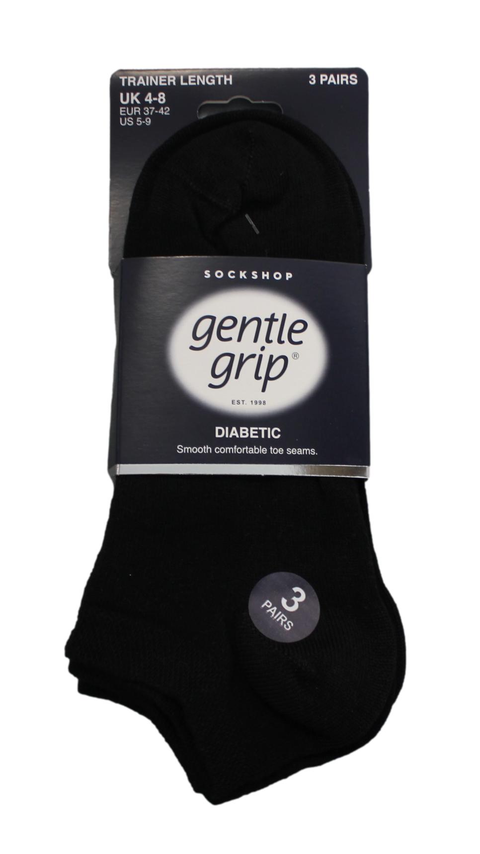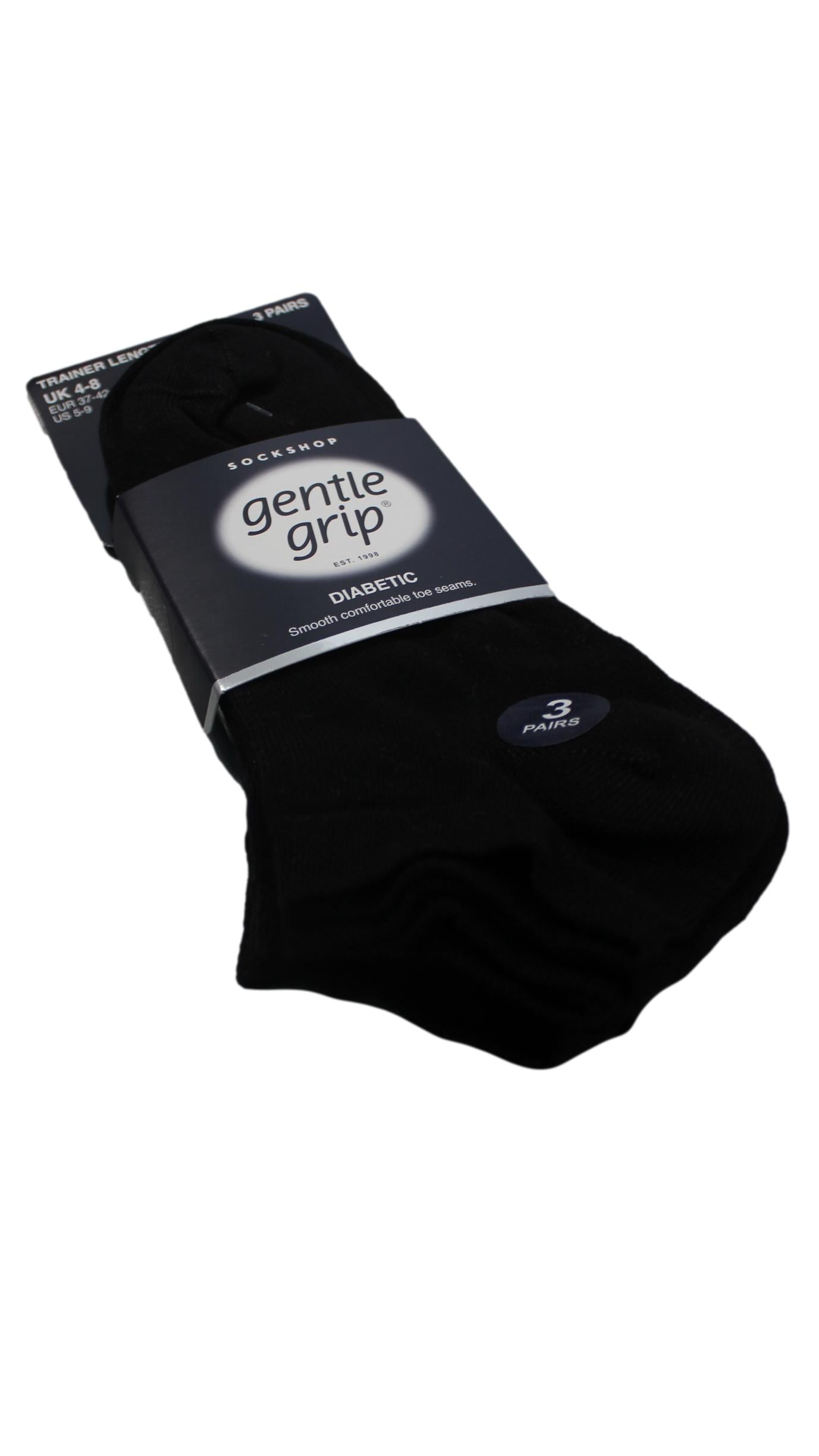 Gentle Grip 3 Pack Diabetic Trainer Socks Black