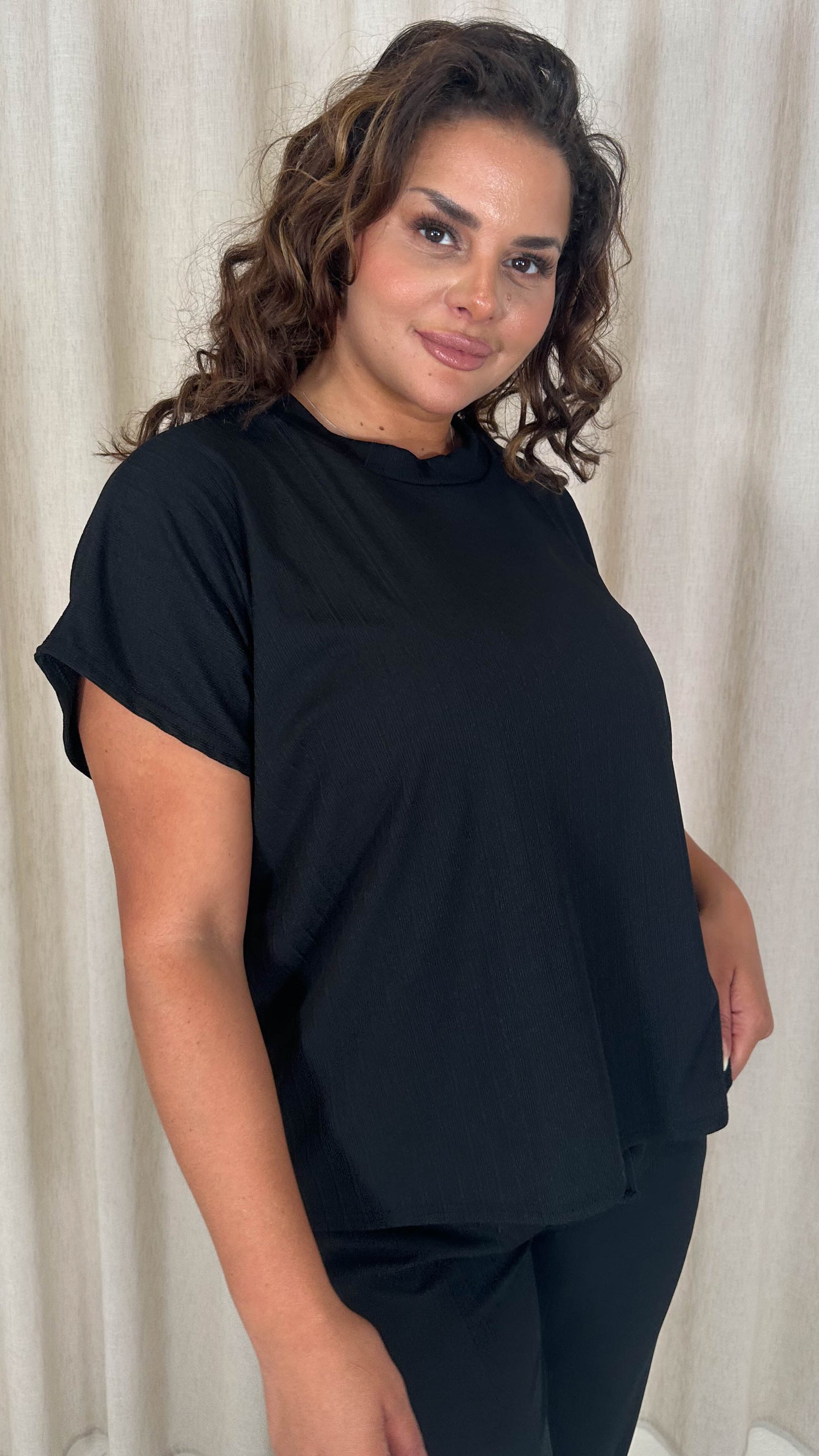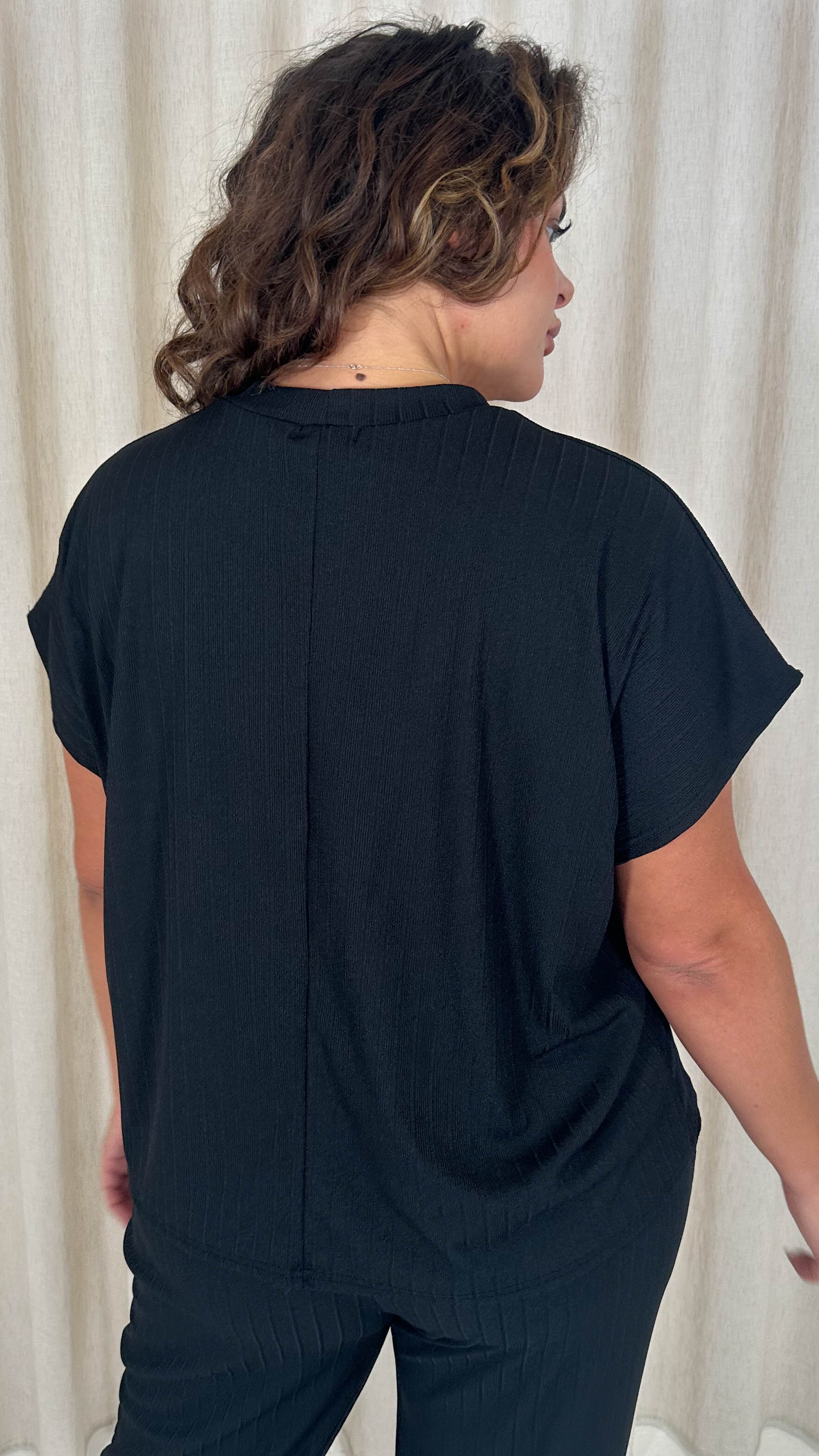 CurveWow Bandage Rib Lounge Oversized T-Shirt Black