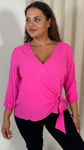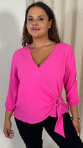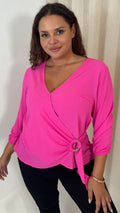 CurveWow Bubble Crepe O Ring Wrap Top Cerise Pink