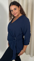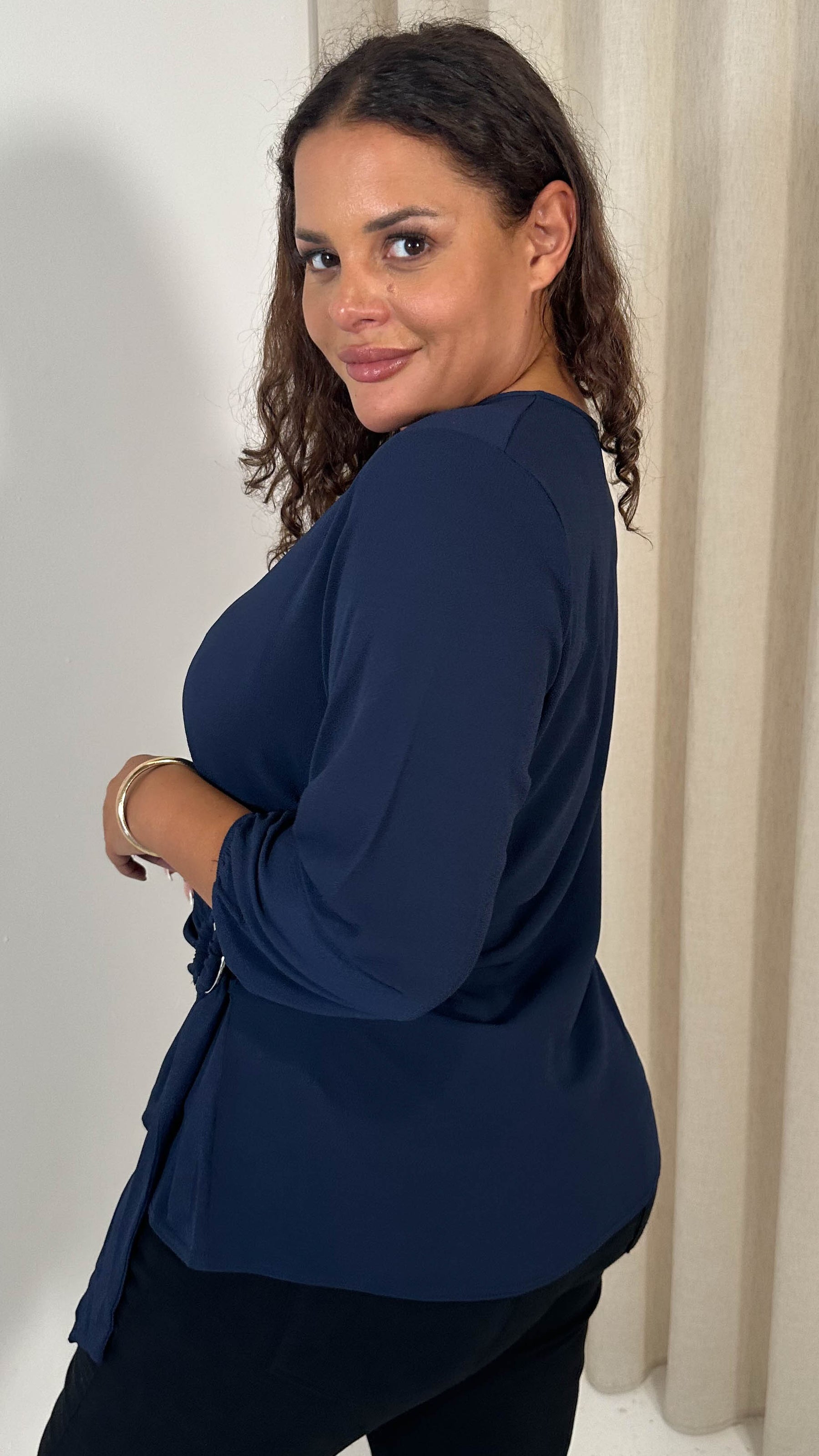 CurveWow Bubble Crepe O Ring Wrap Top Navy