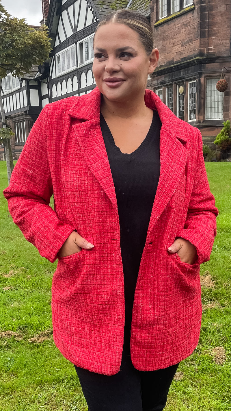 CurveWow Double Breasted Boucle Jacket Red