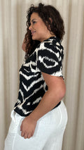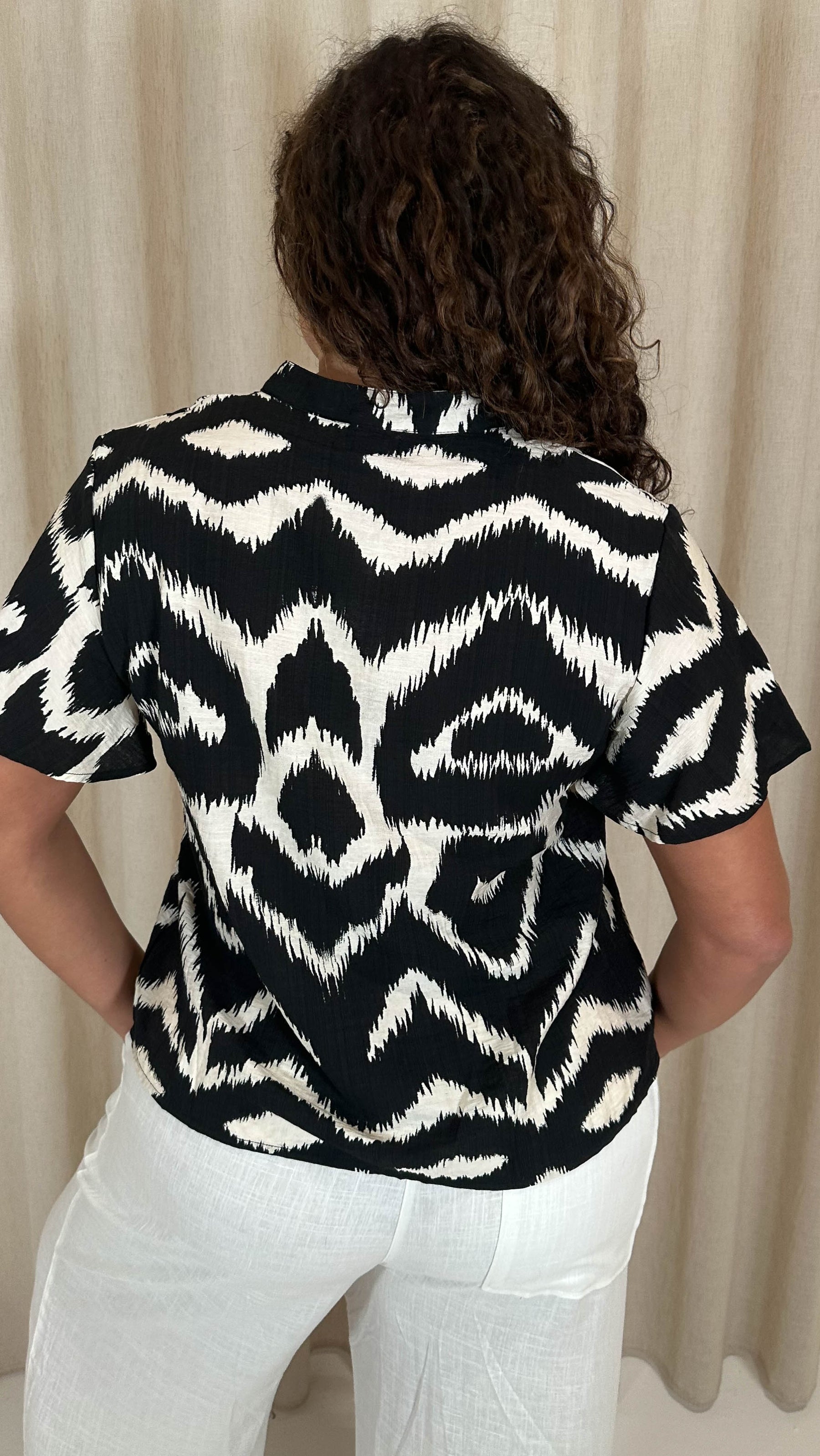CurveWow Frill Sleeve Collarless Shirt Mono Aztec
