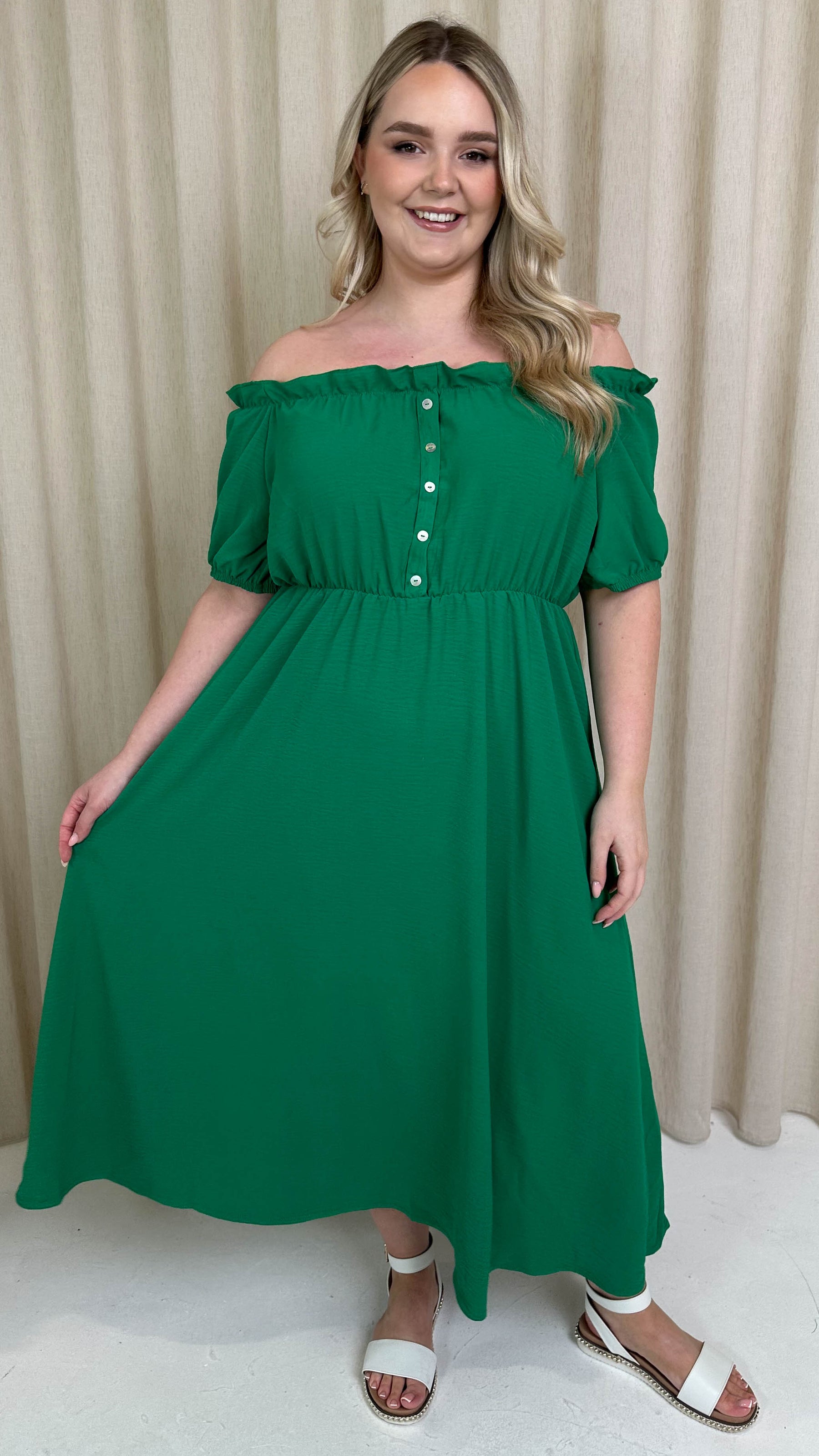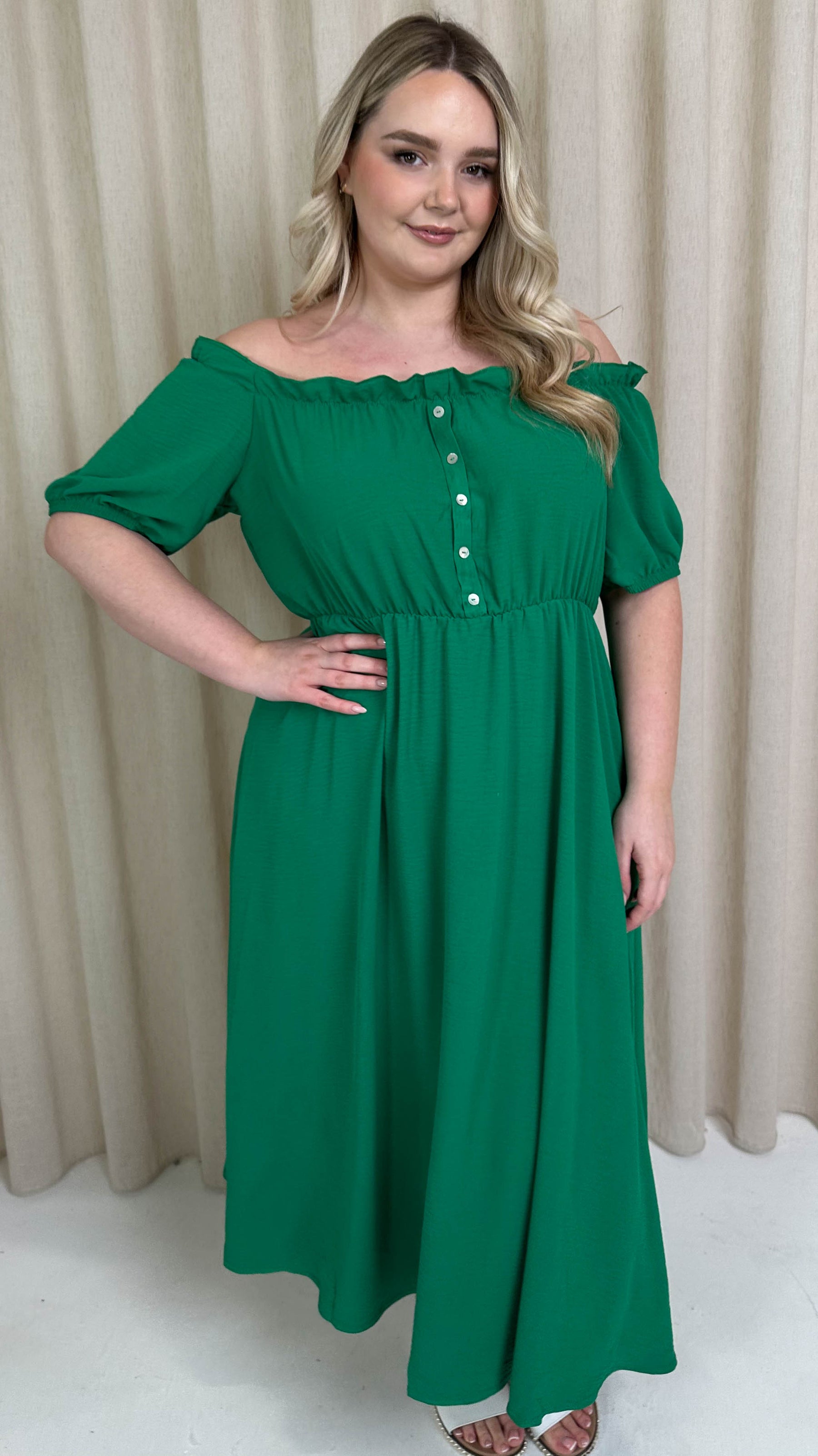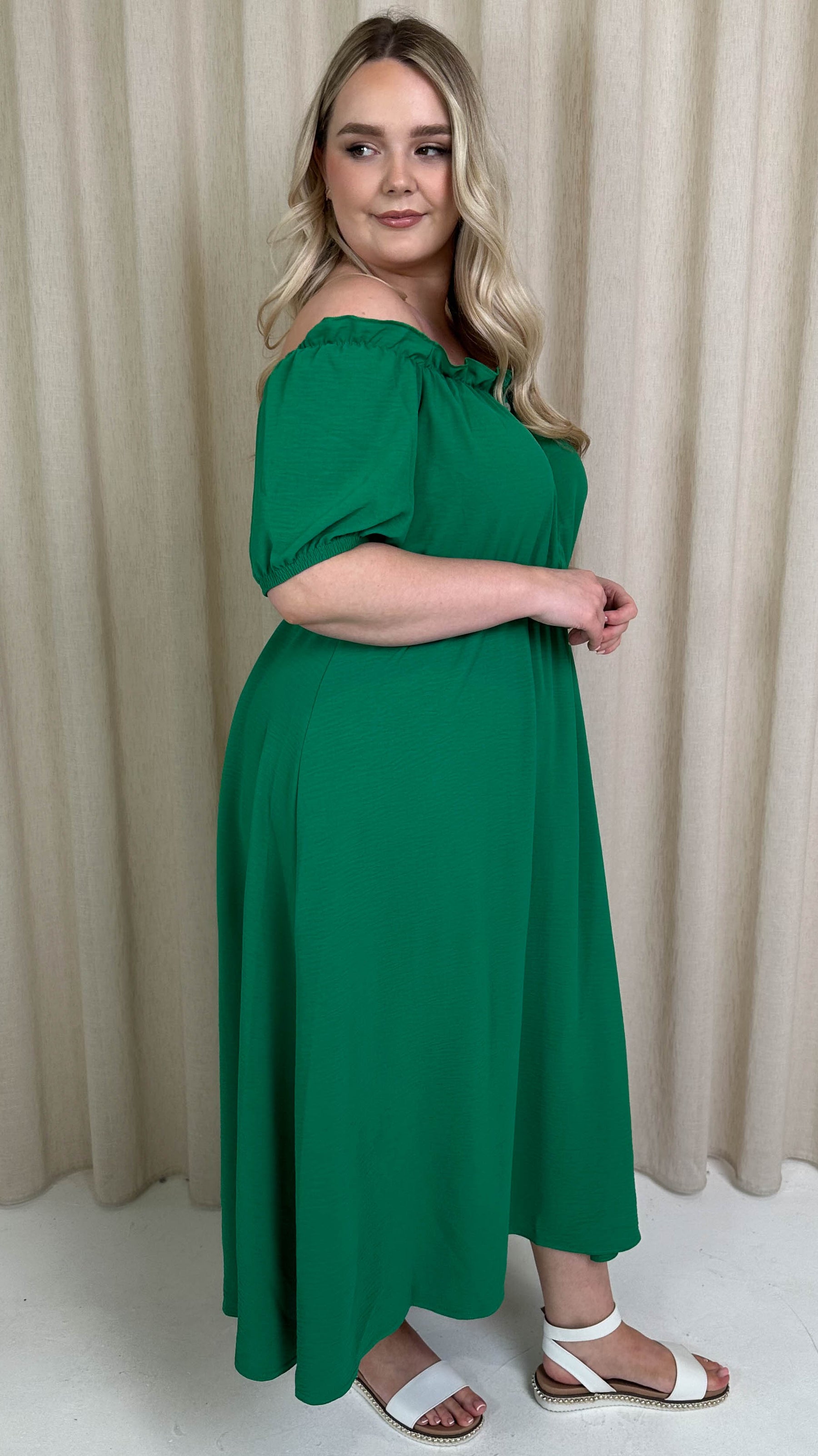 CurveWow Bardot Midi Dress Jade Green