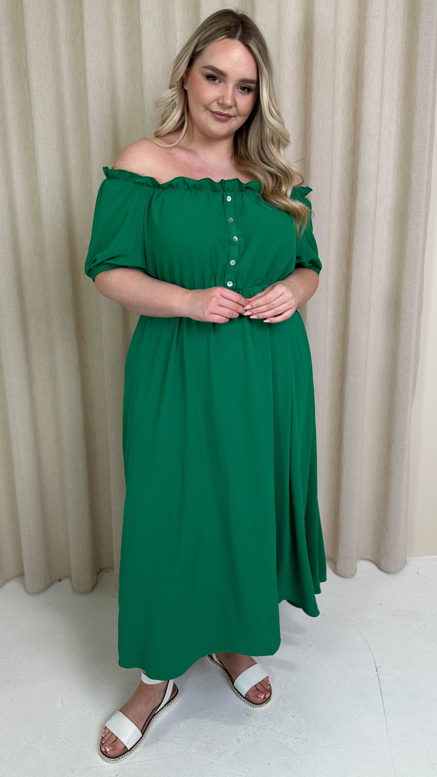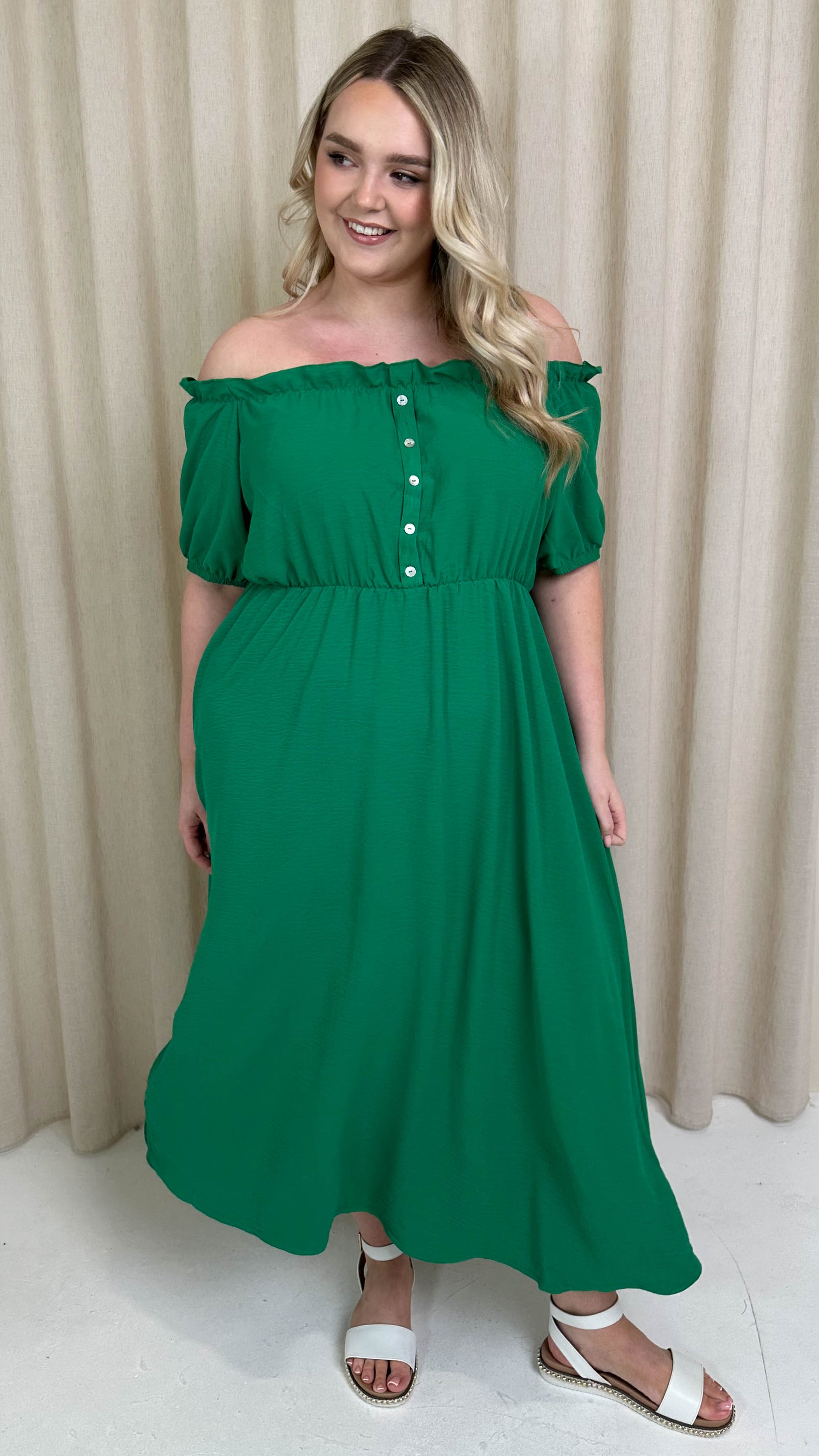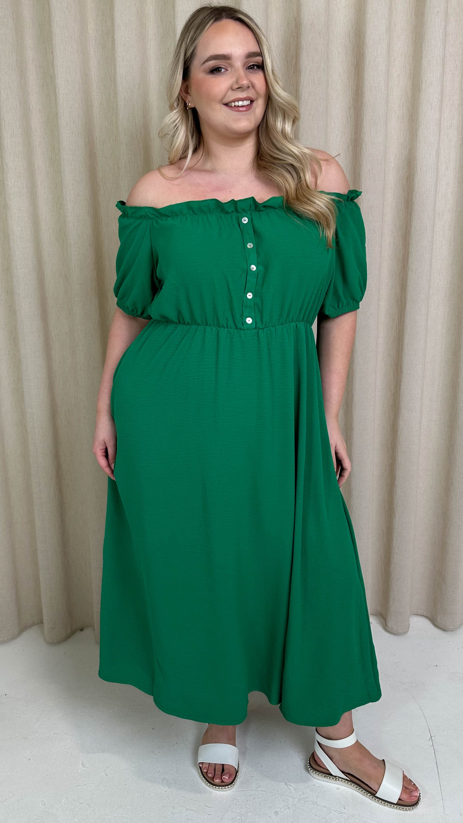 CurveWow Bardot Midi Dress Jade Green