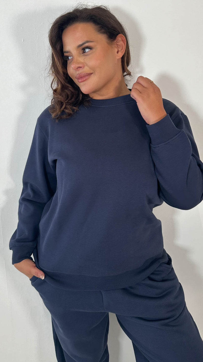CurveWow Basic Crew Neck Sweat Navy