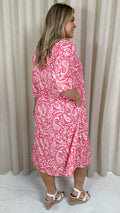 CurveWow Button Front Midi Shift Dress Pink Paisley