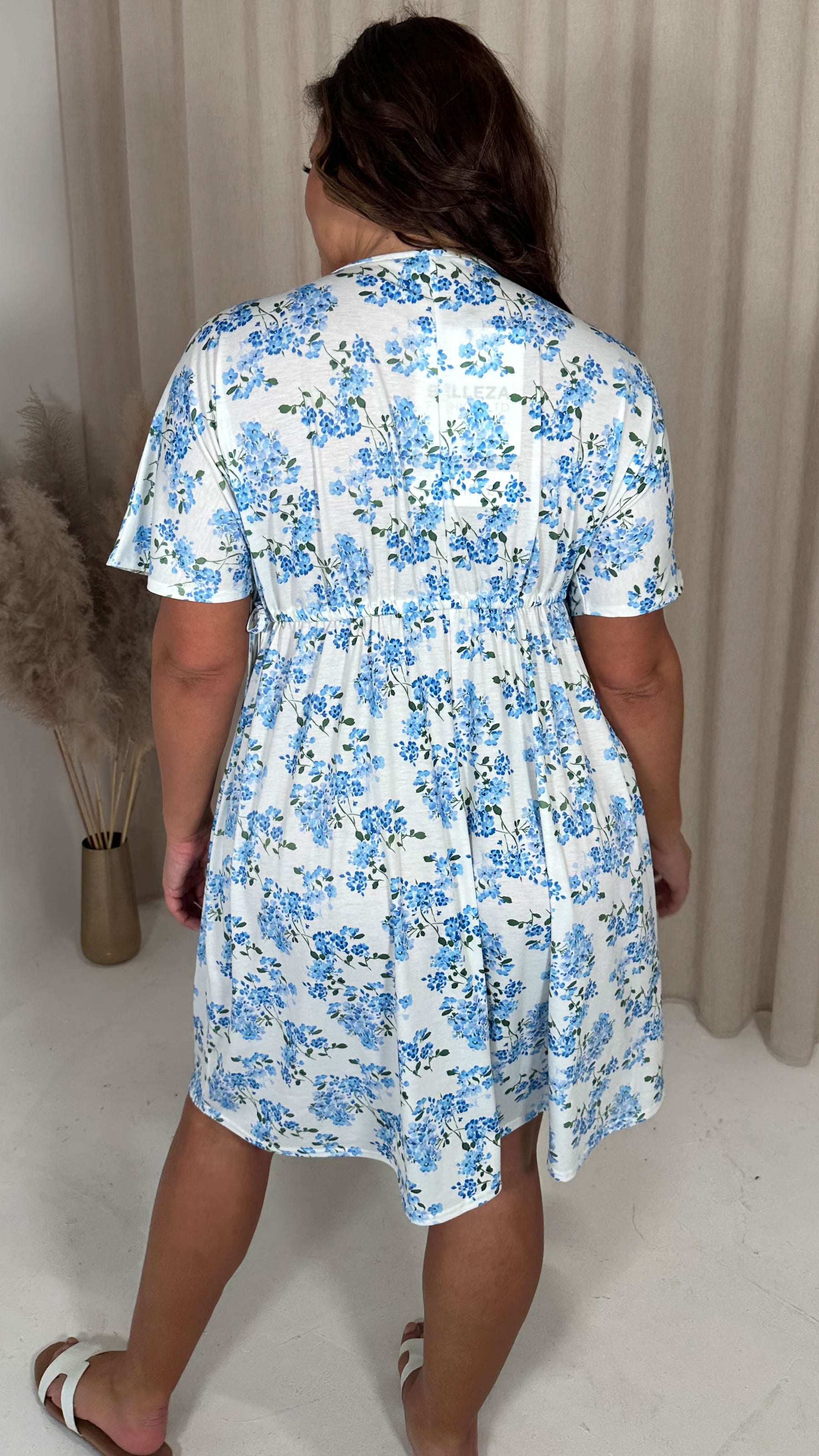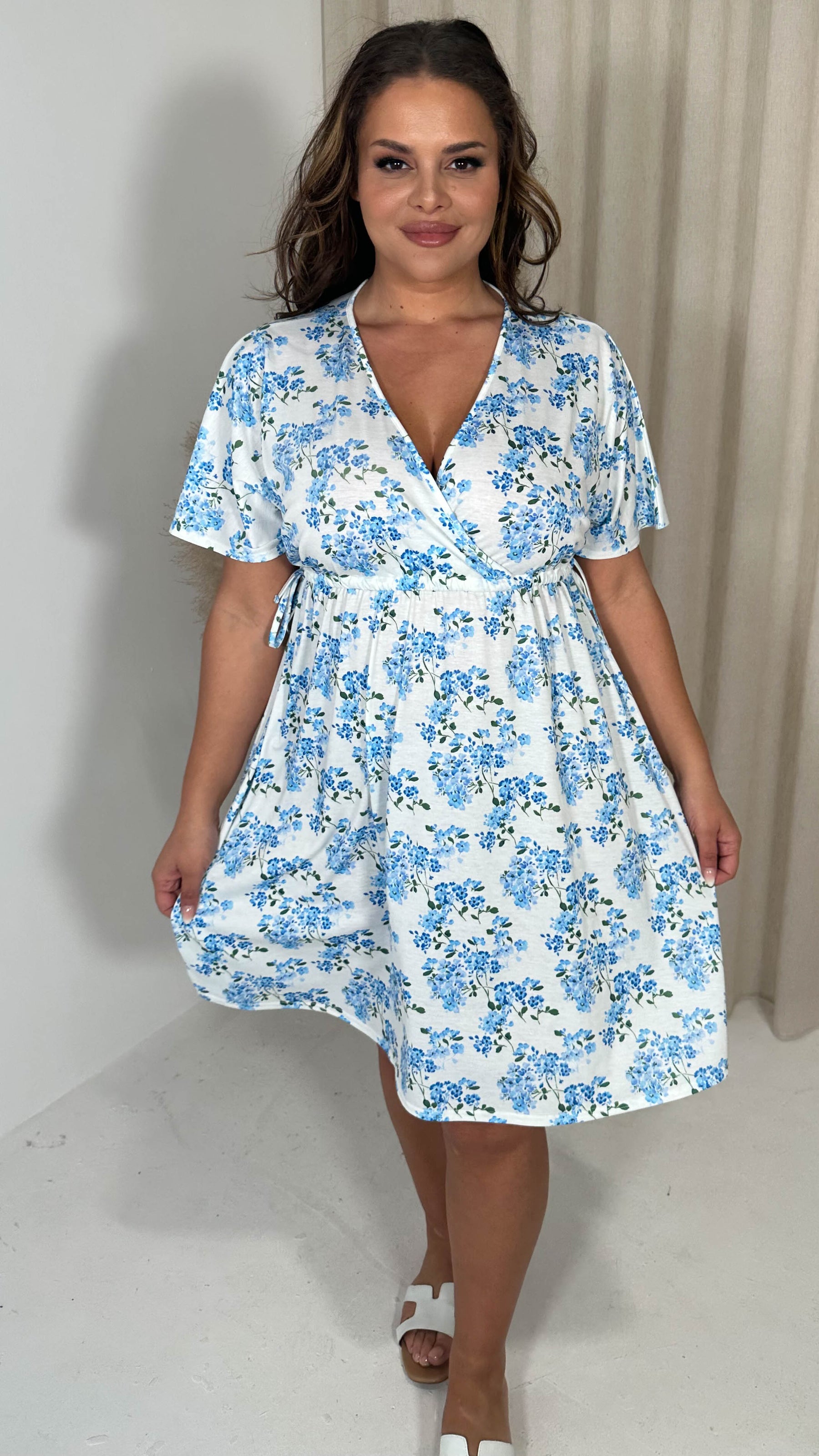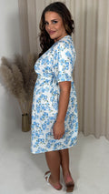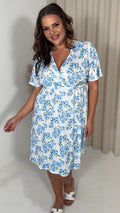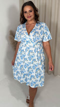 CurveWow Drop Shoulder Wrap Channel Waist Dress Blue Floral