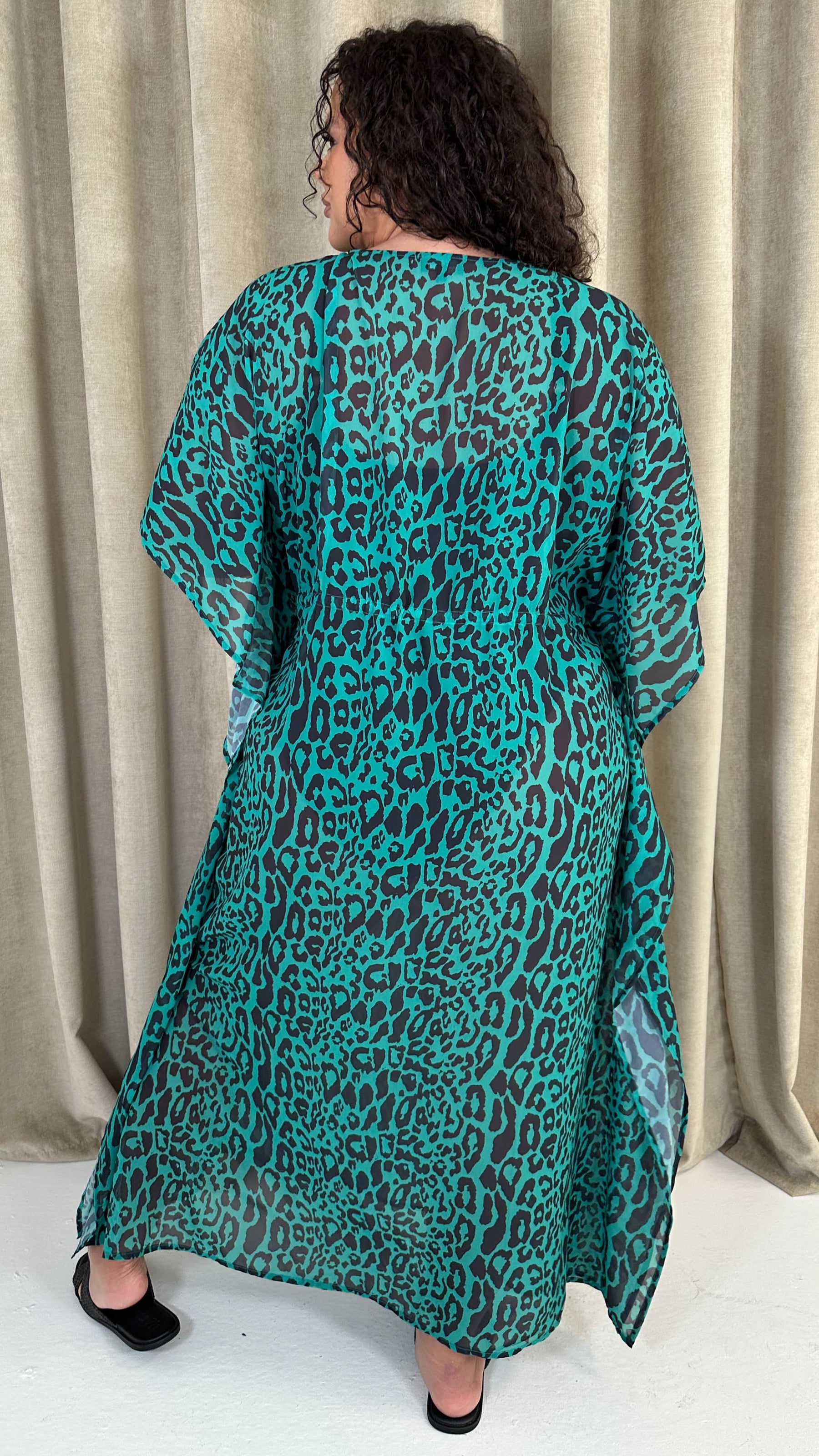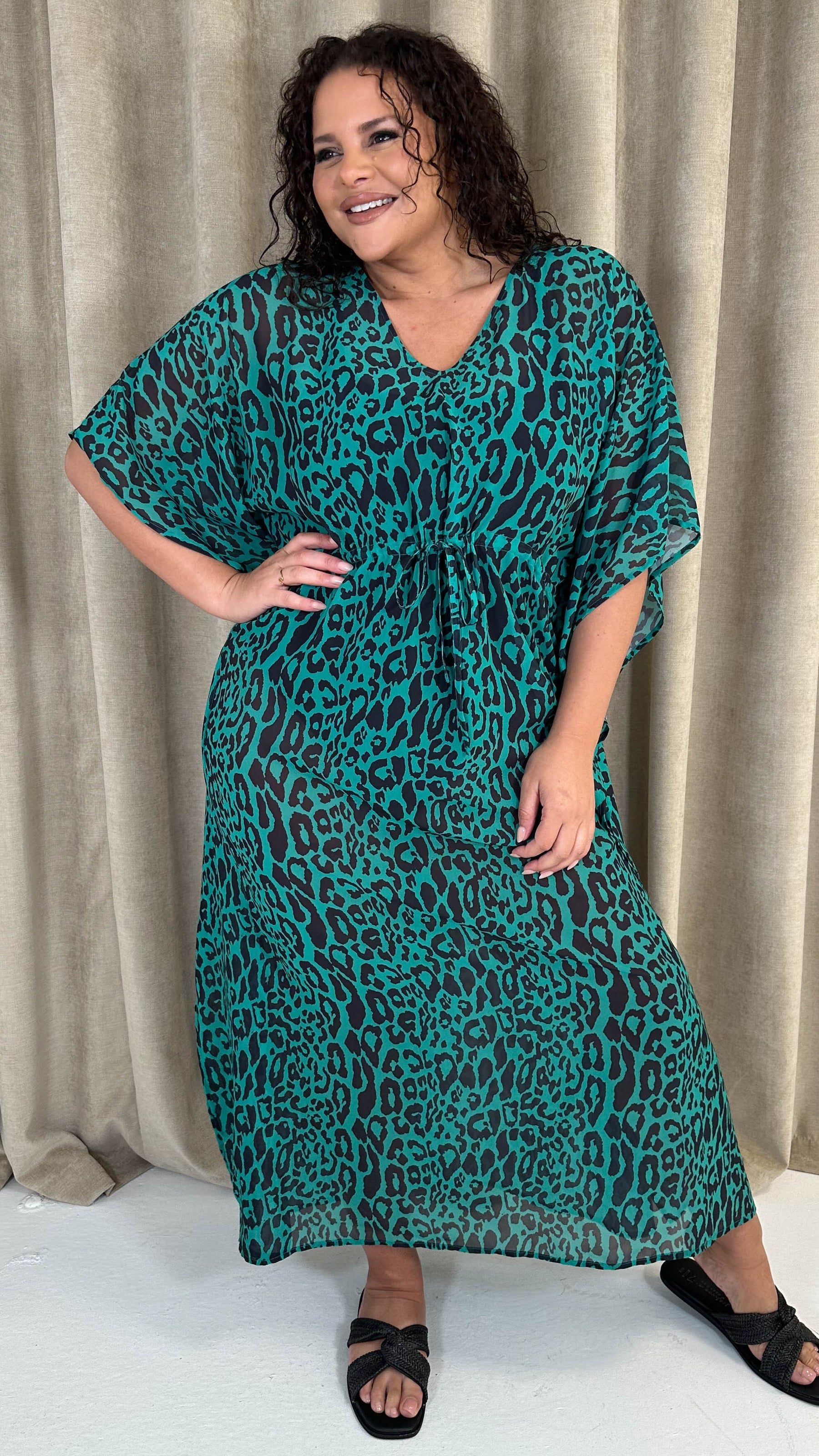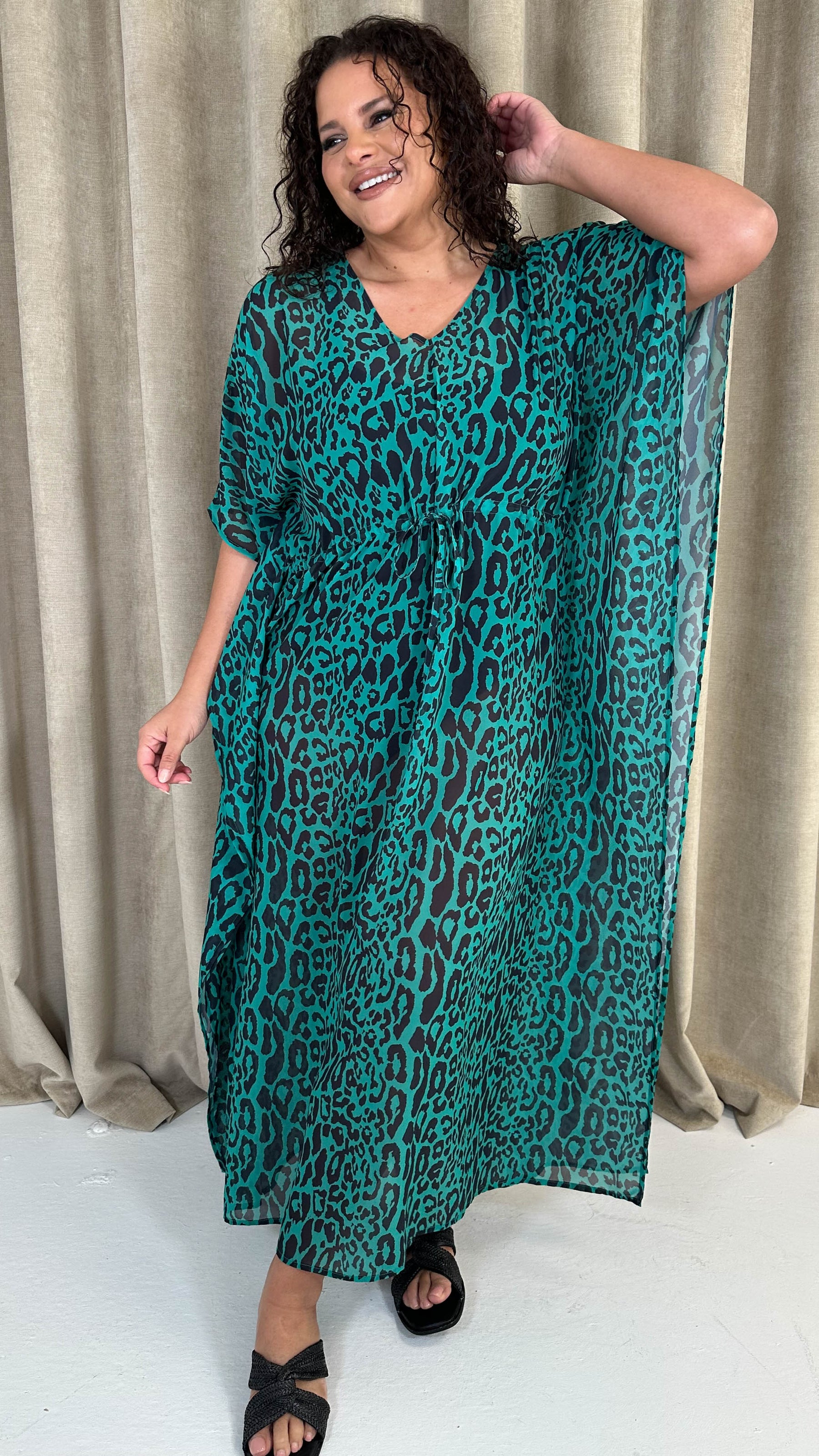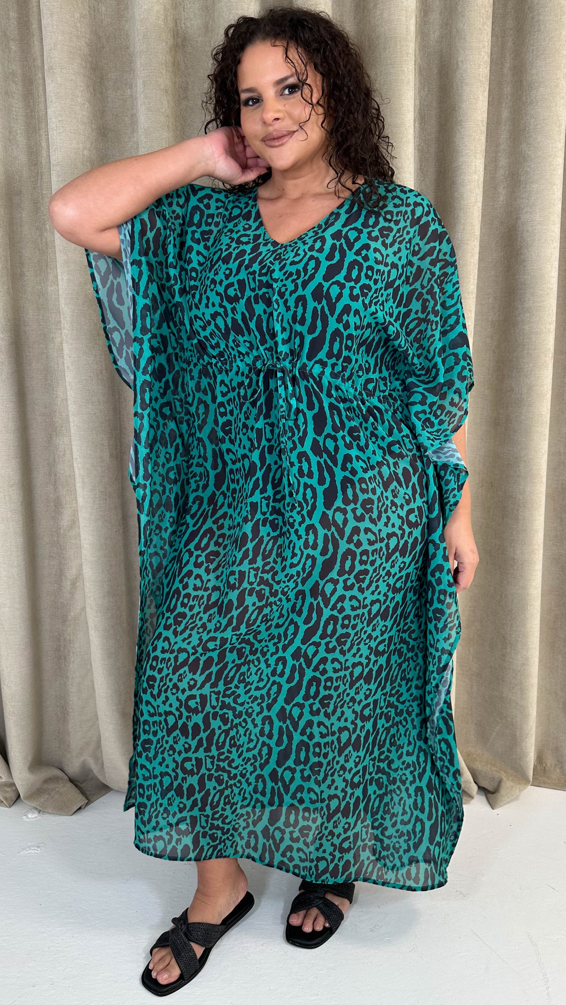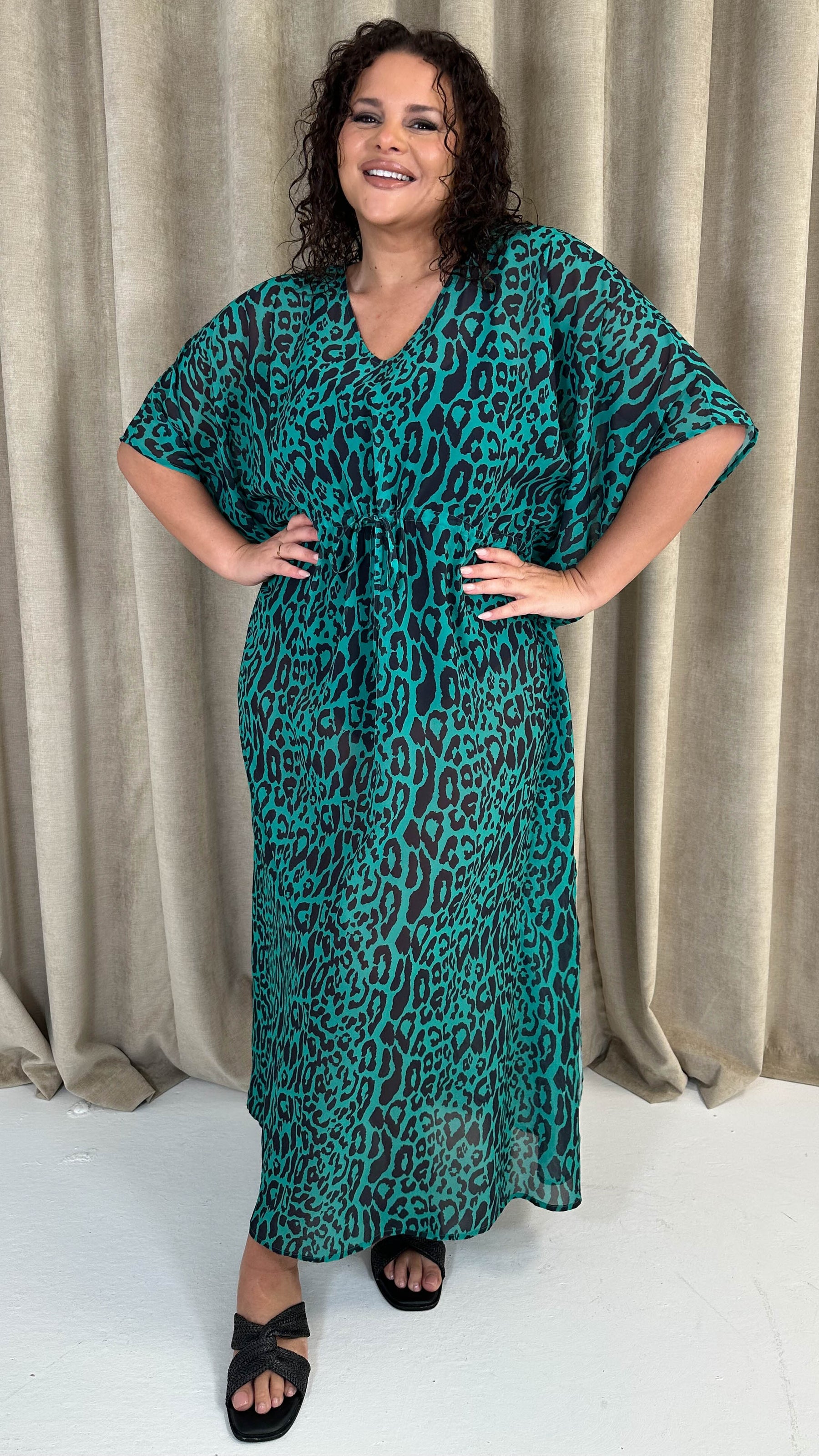 CurveWow Frill Sleeve Swimsuit Sage Green Tropical Floral