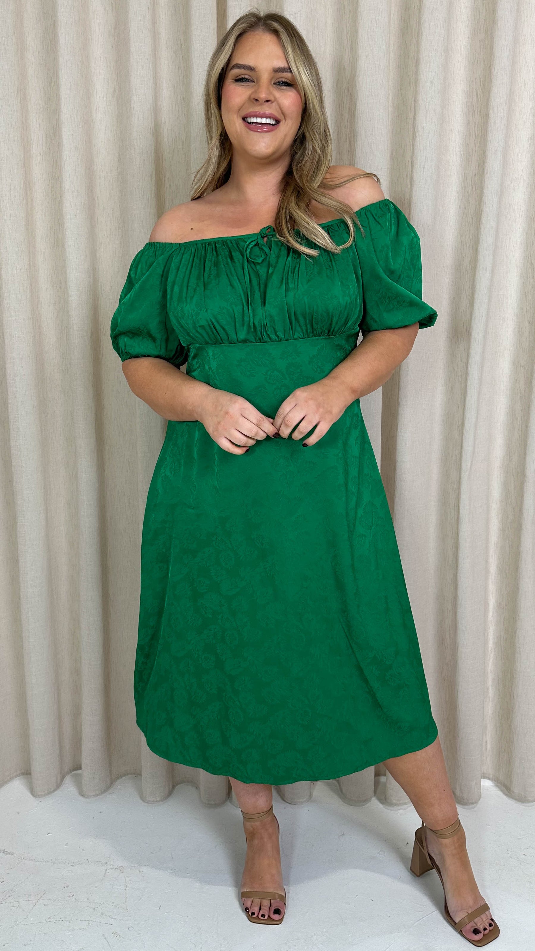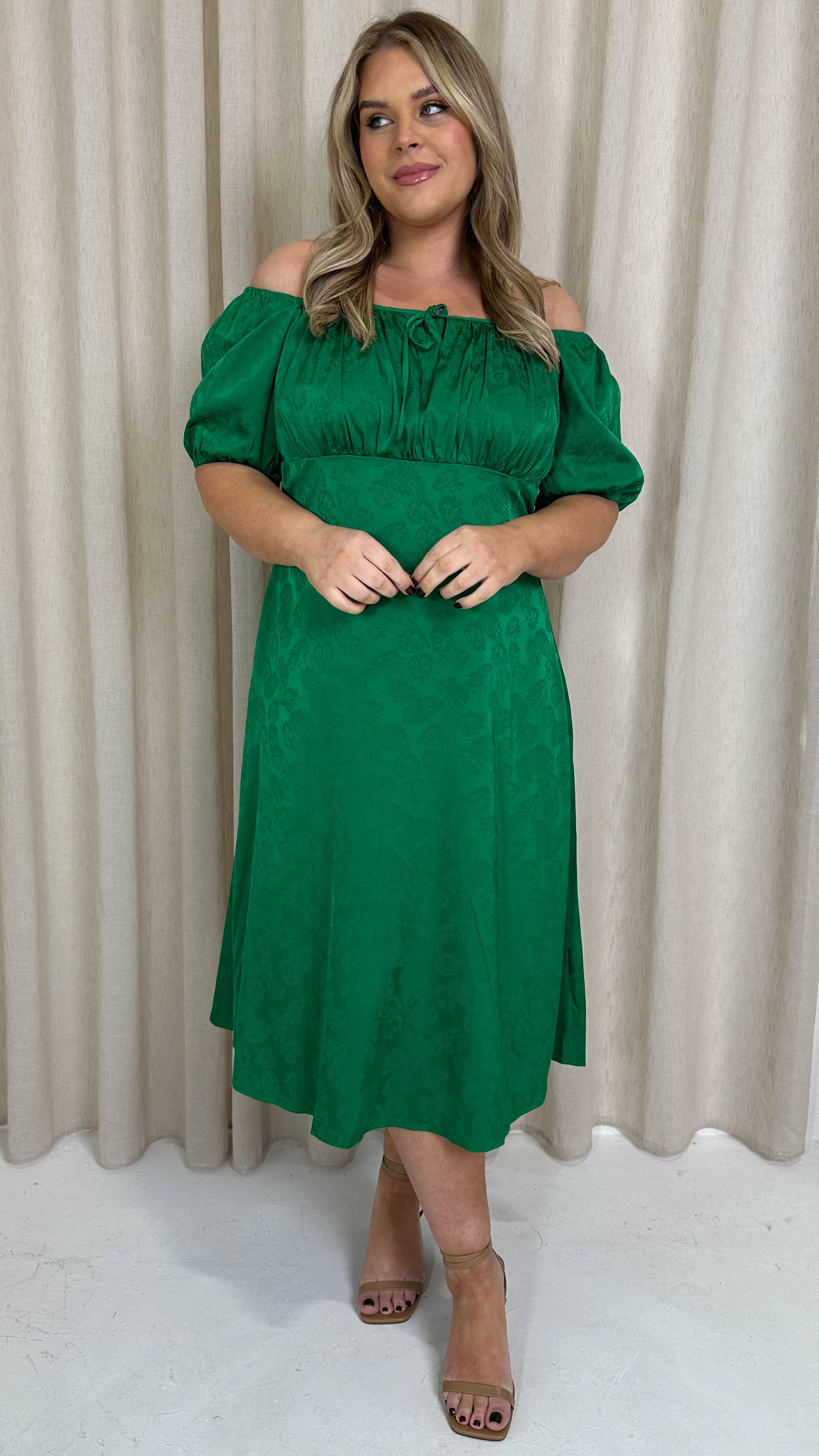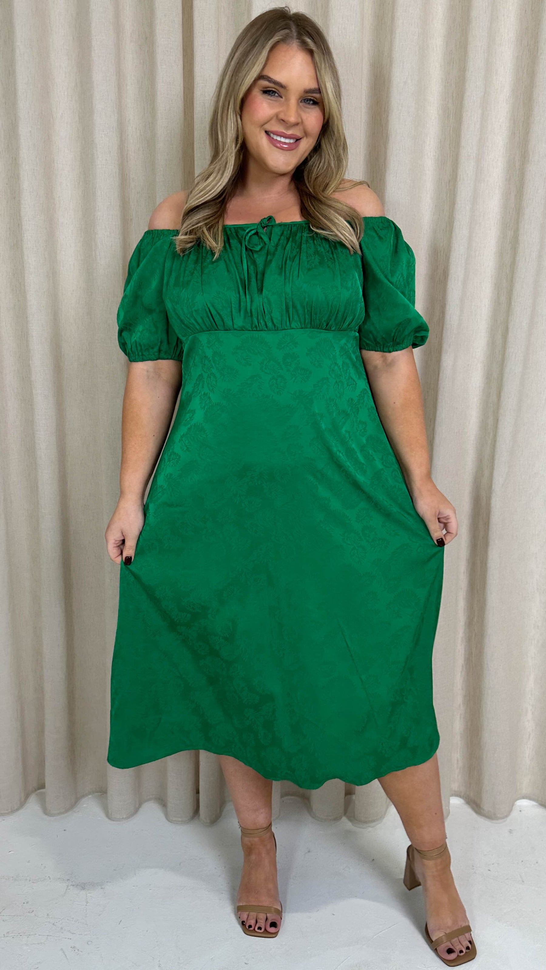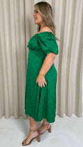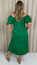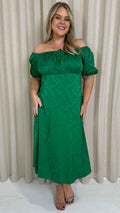 CurveWow Keyhole Palm Satin Dress Green