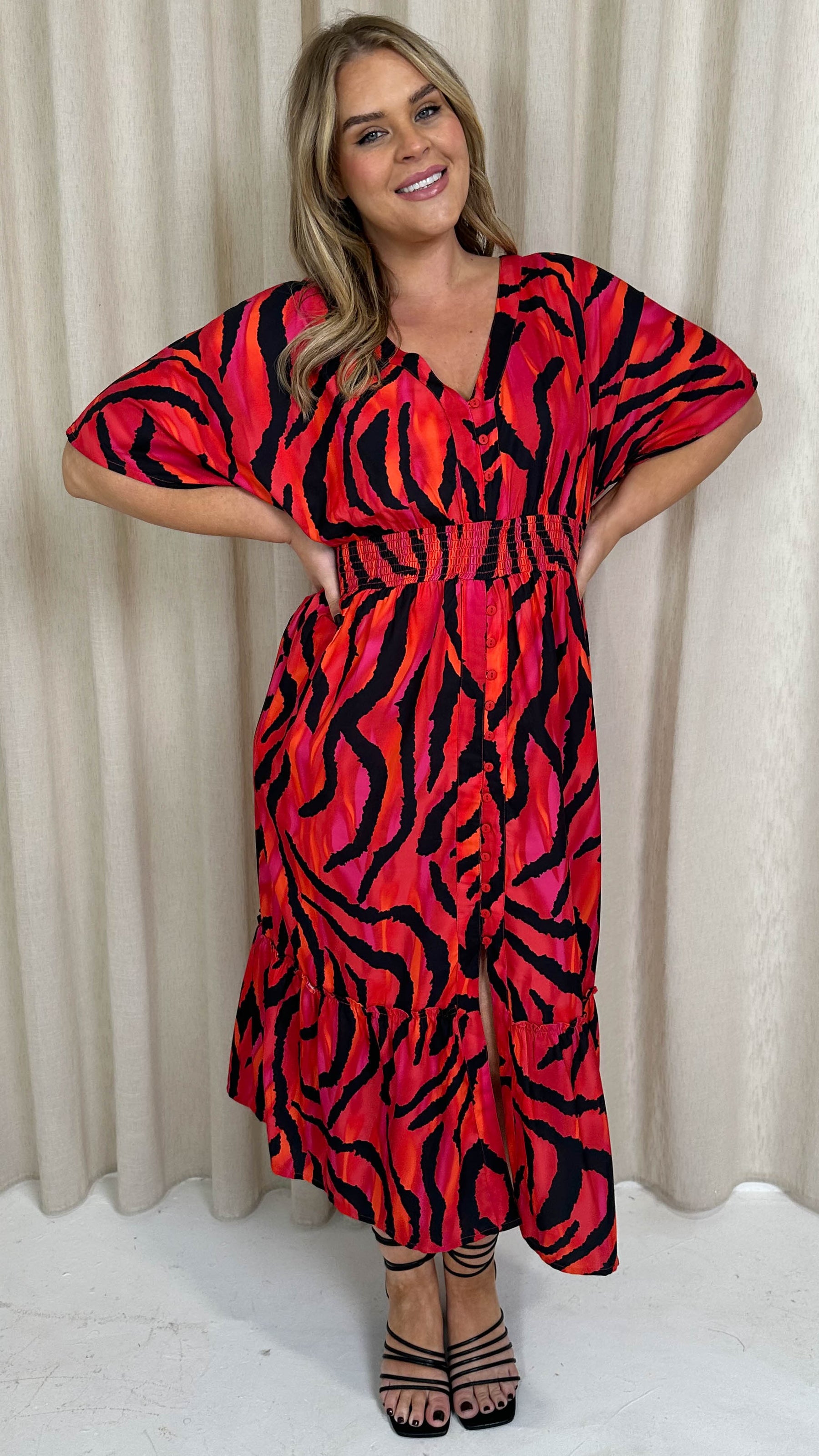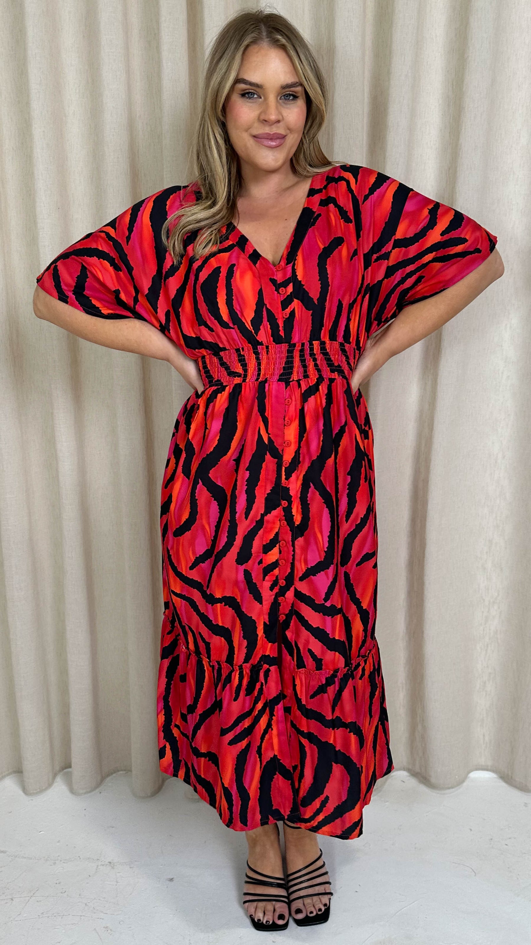 CurveWow Kimono Midaxi Dress Pink Zebra