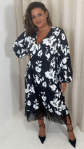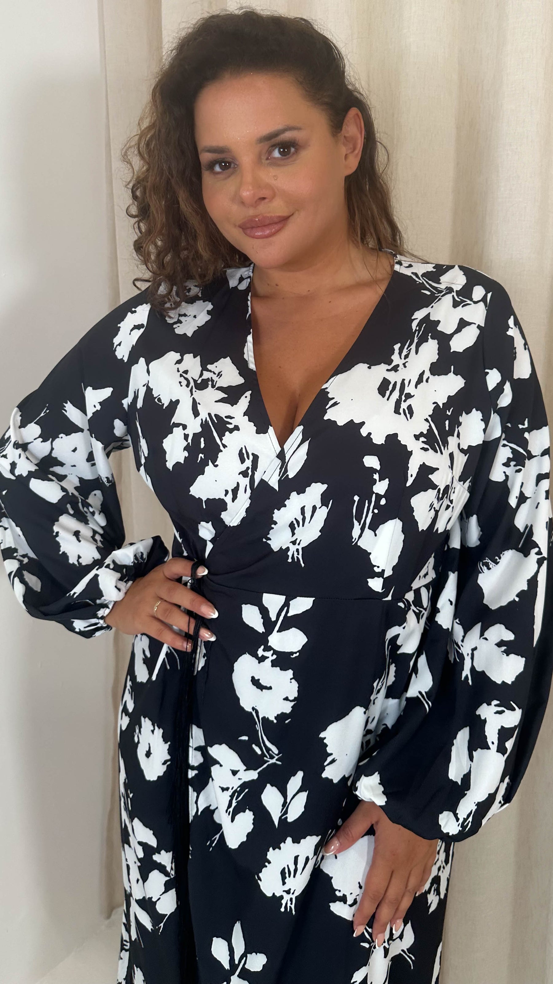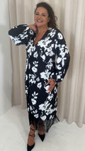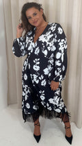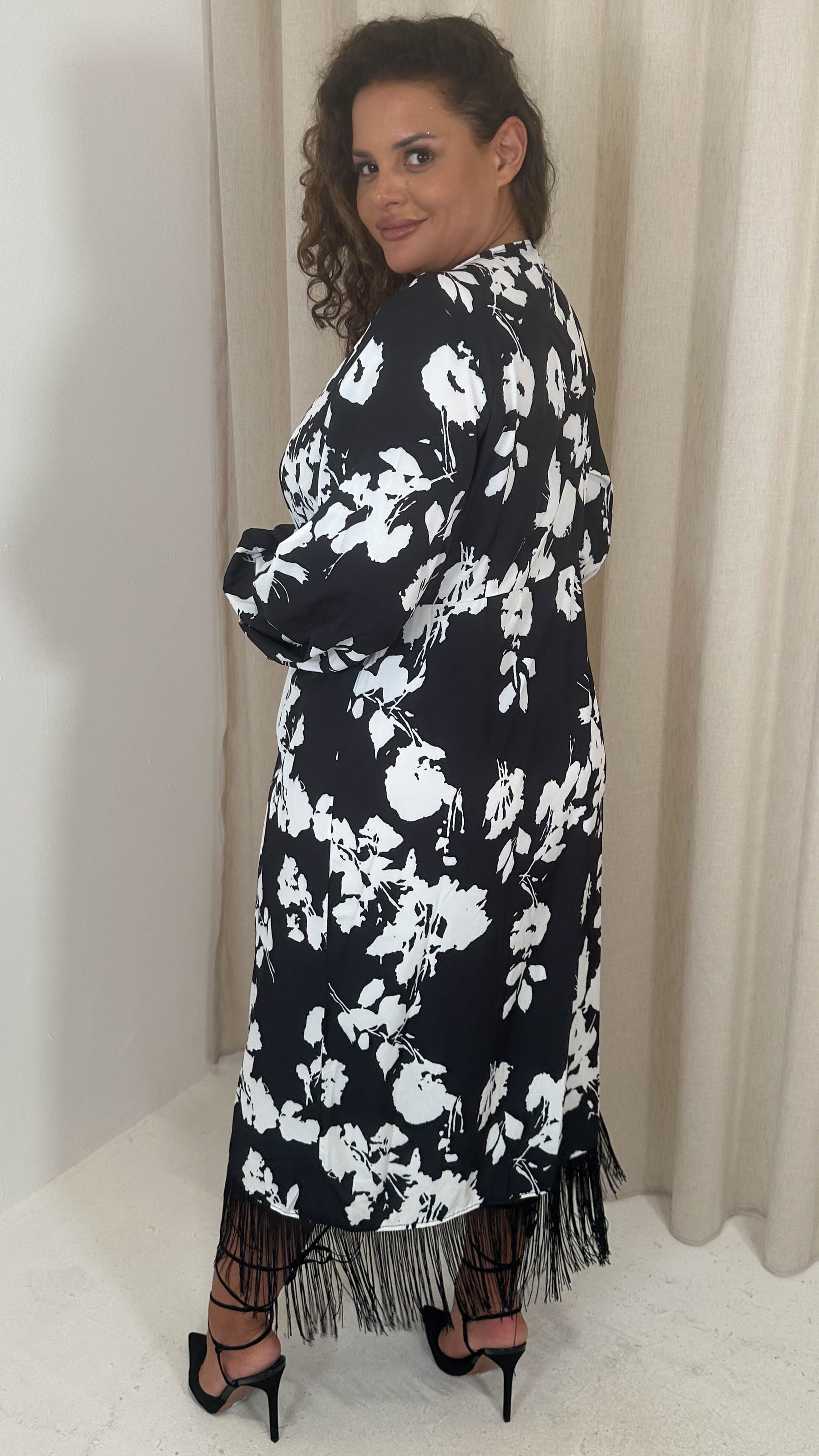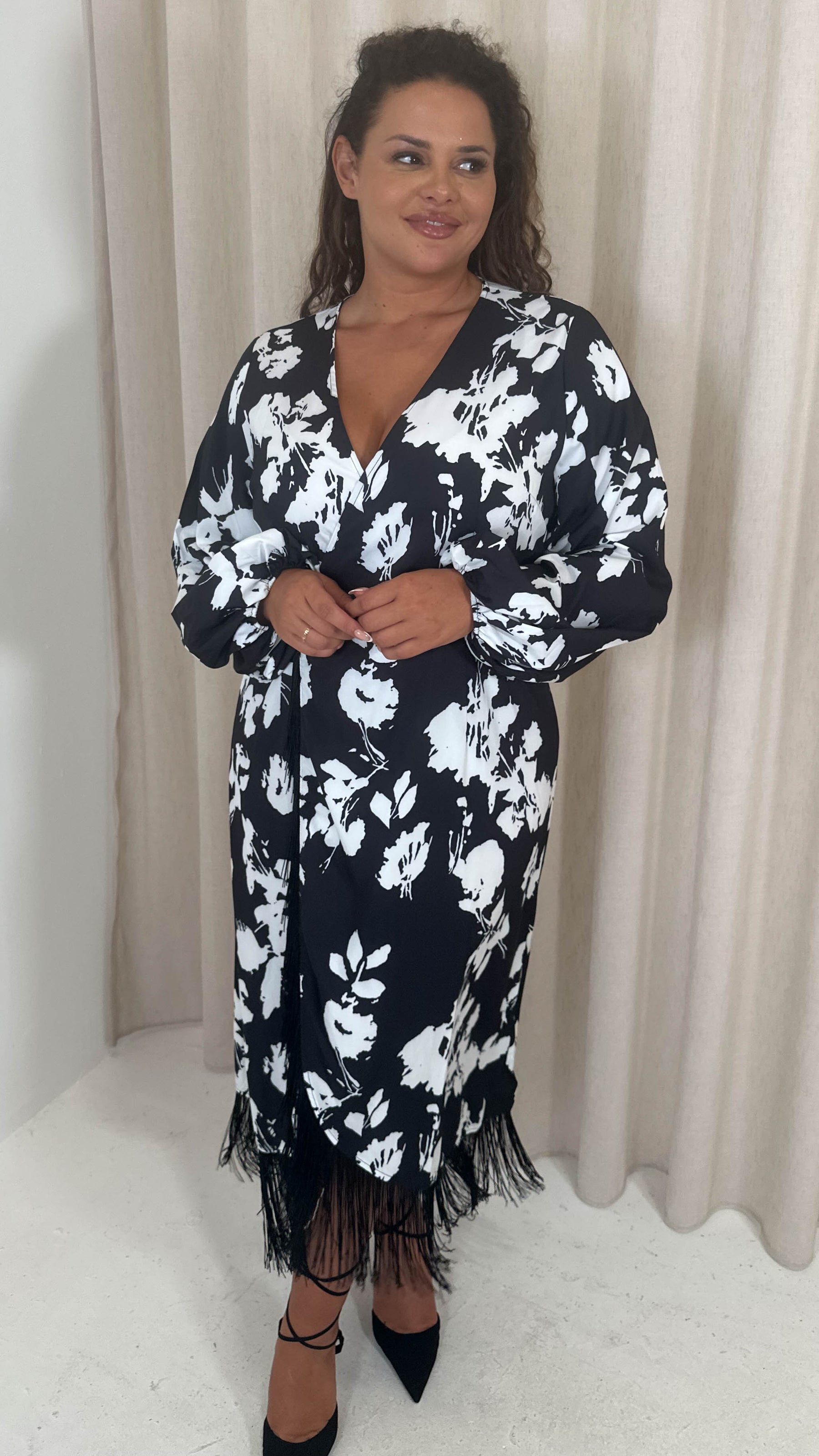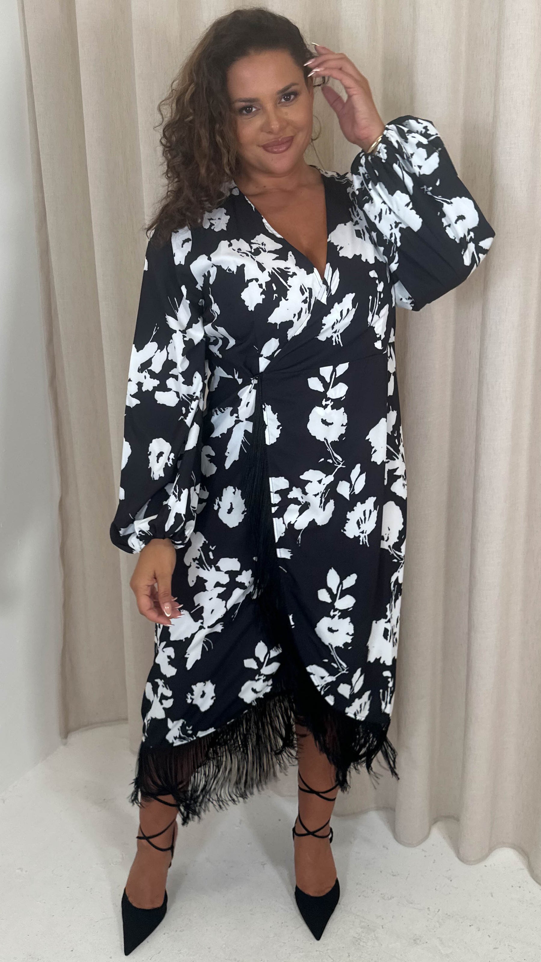 CurveWow Wrap Fringe Hem Dress Mono Floral