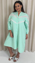 CurveWow Striped Shirt Dress Green Stripe