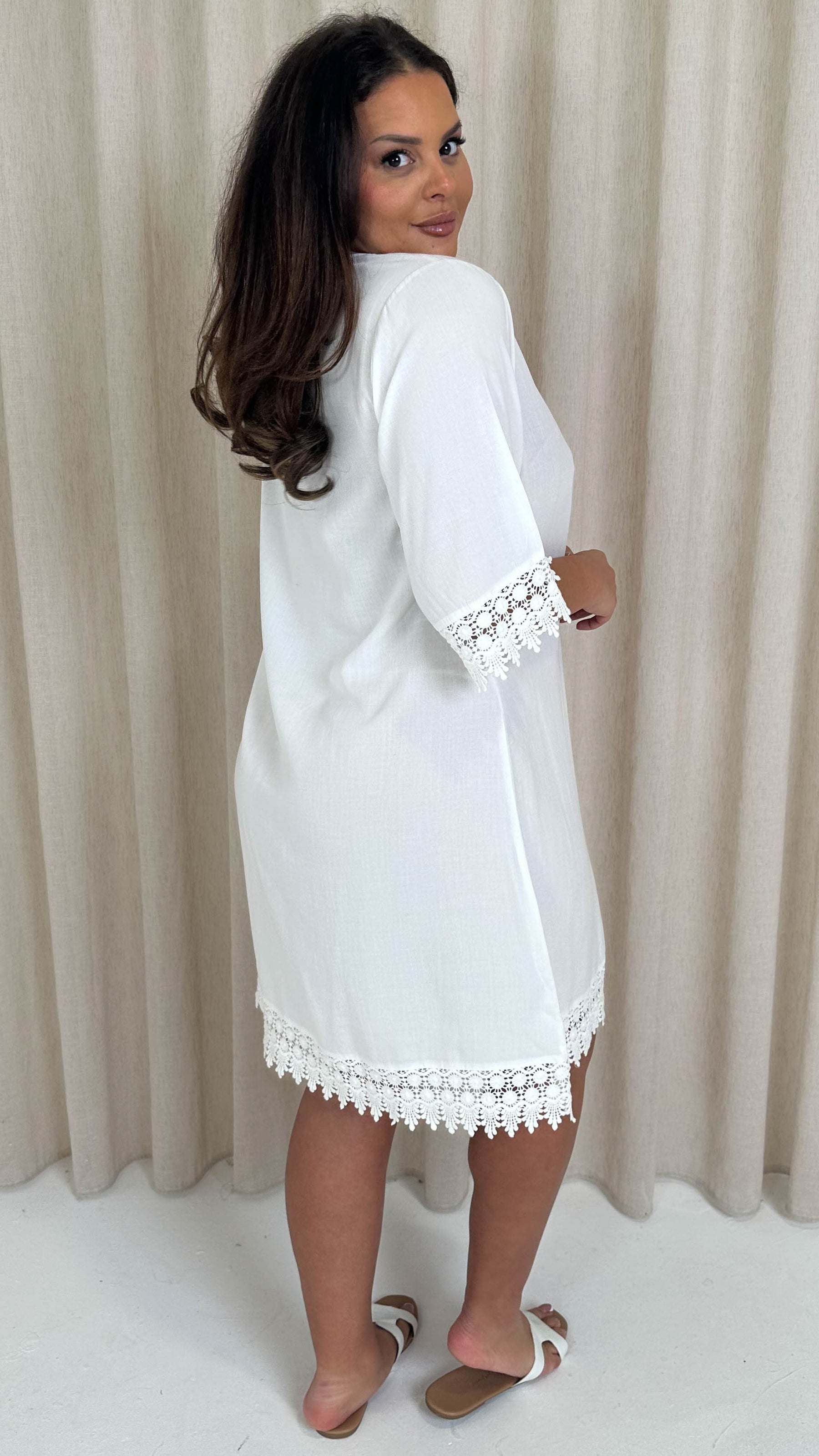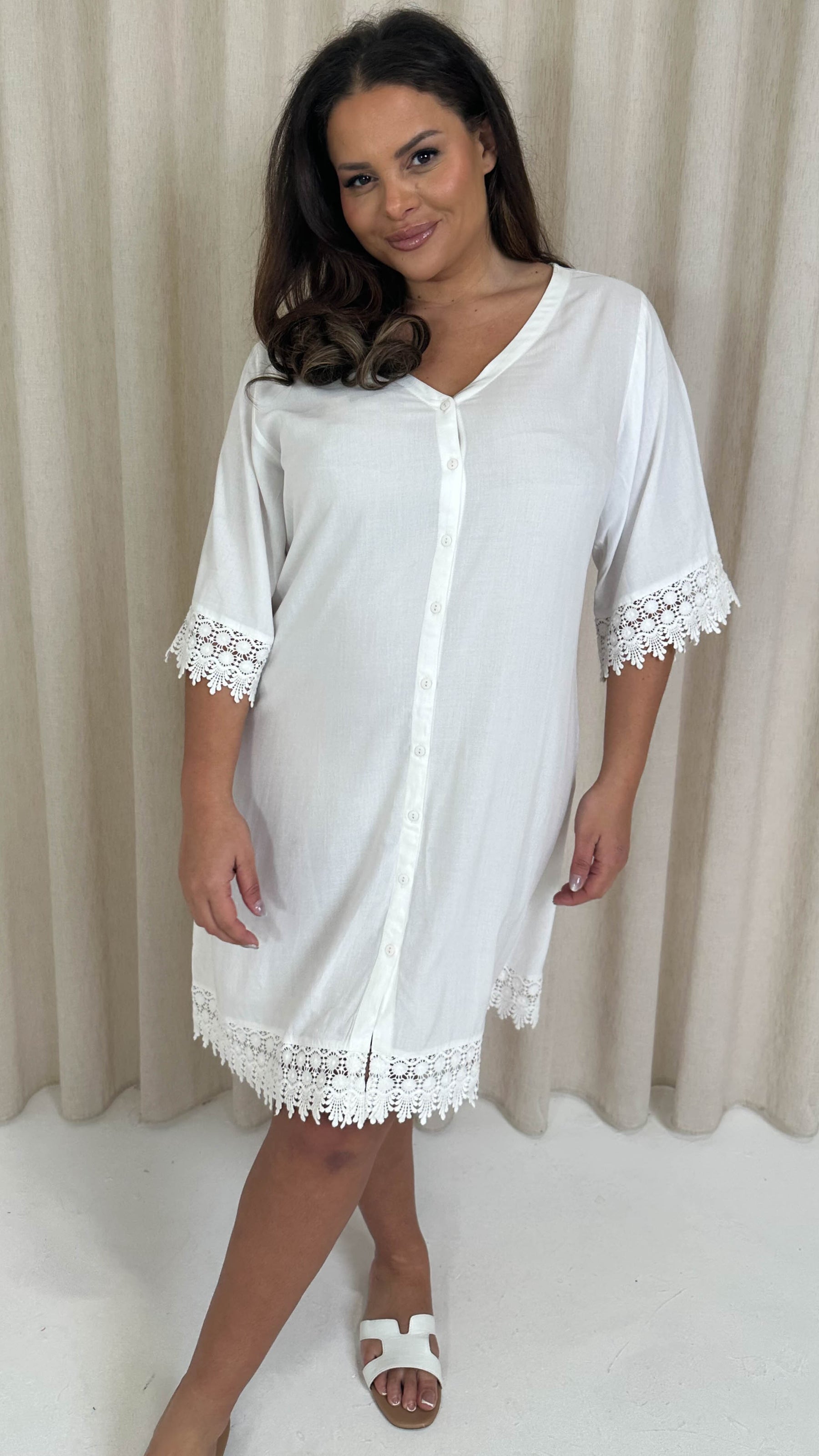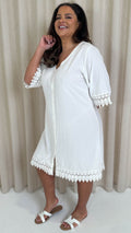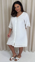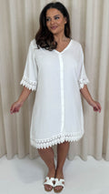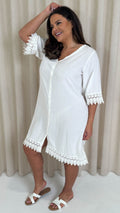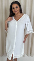 CurveWow Lace Trim Button Front Tunic Dress White