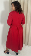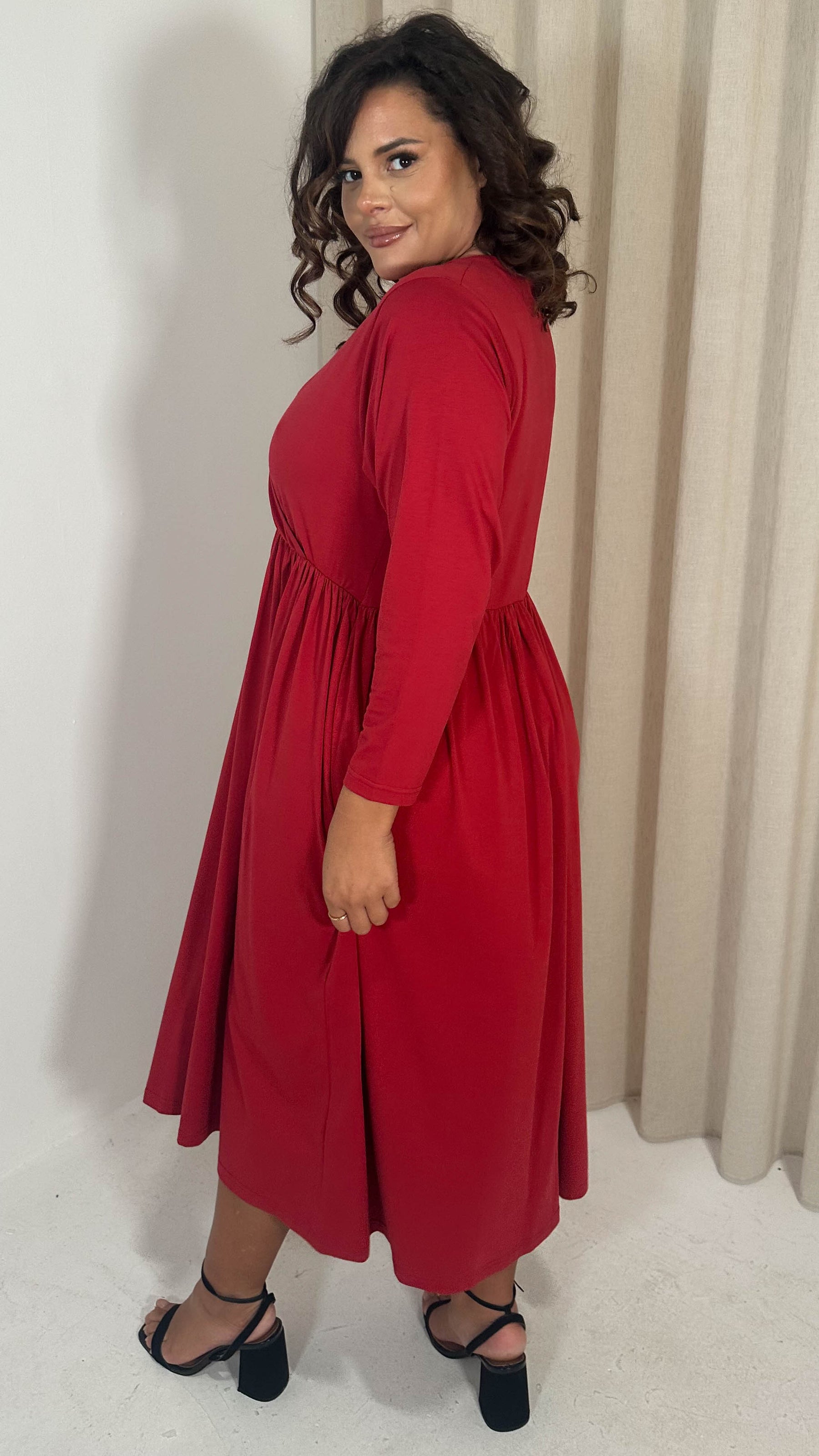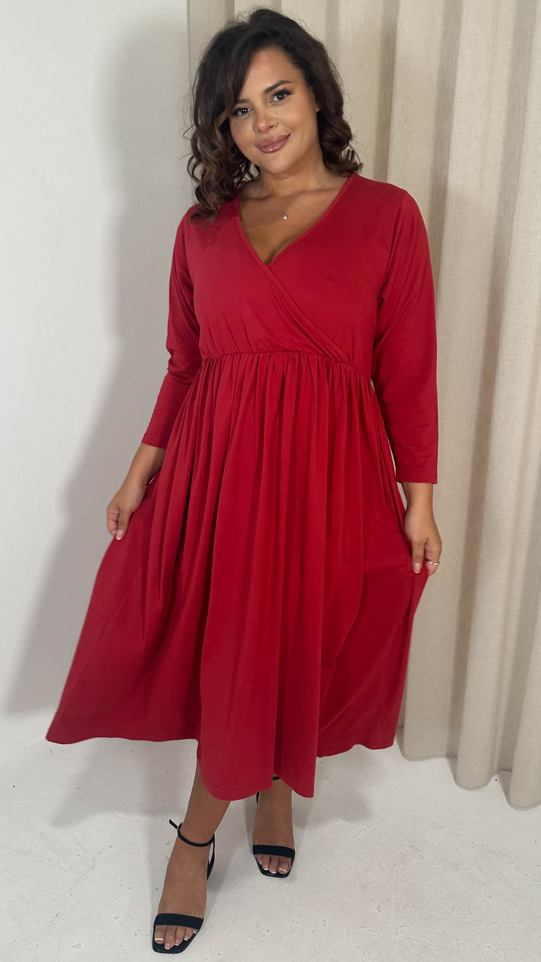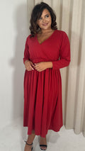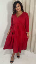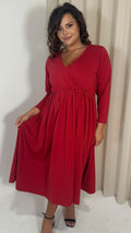 CurveWow Long Sleeve Wrap Midi Dress Red