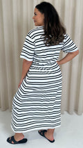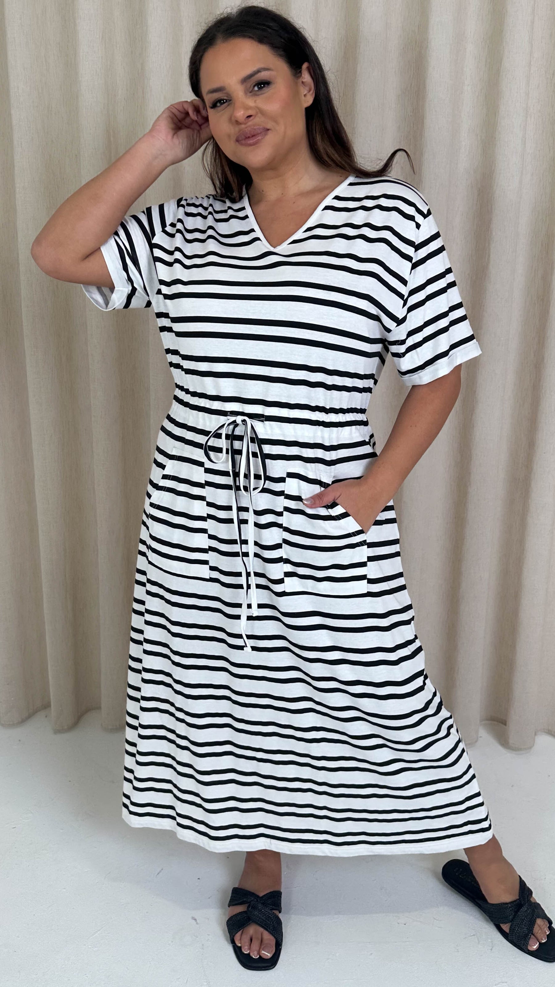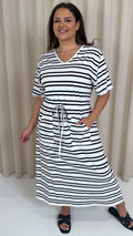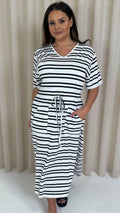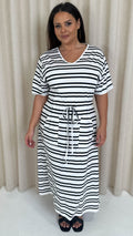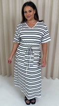 CurveWow Maxi T-Shirt Dress With Drawstring White Based Stripe
