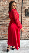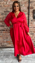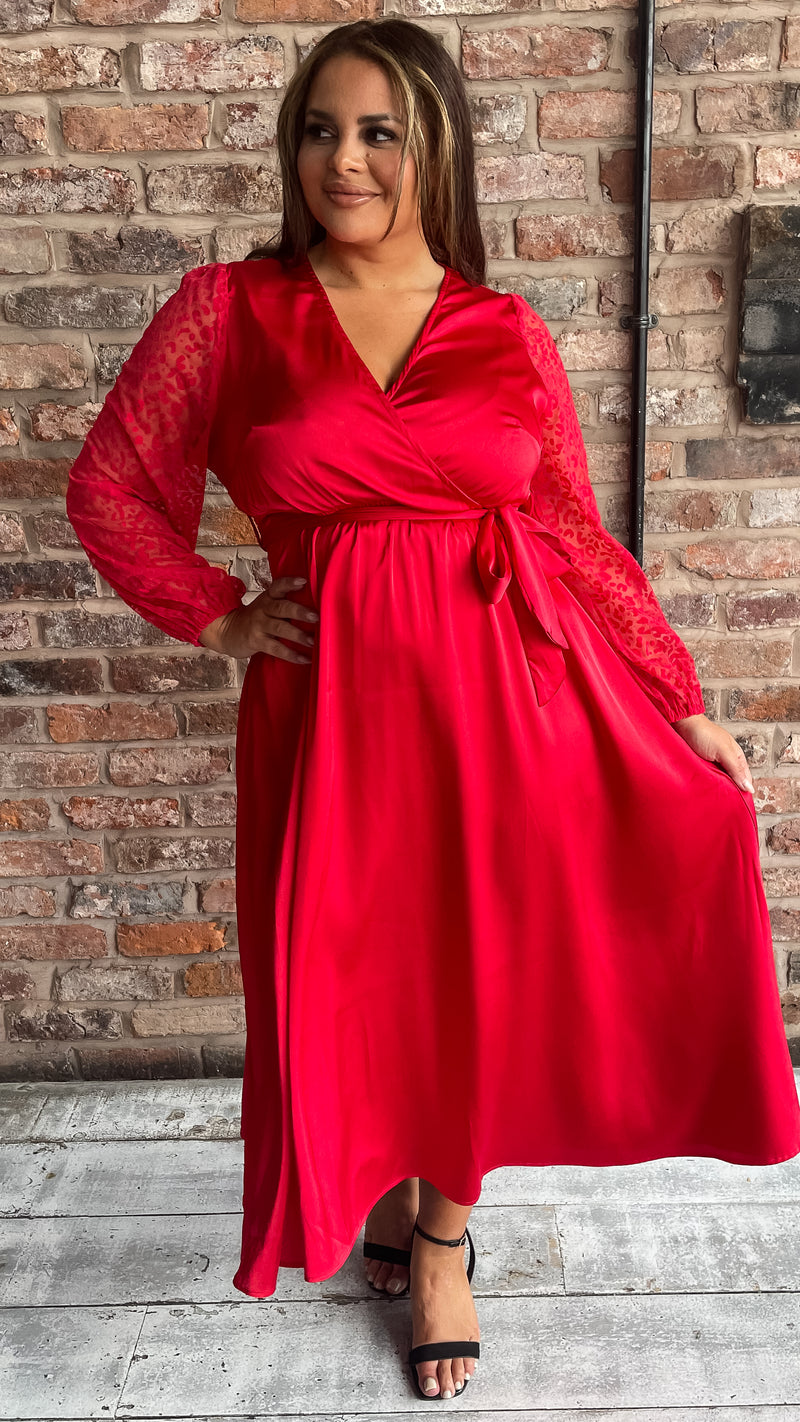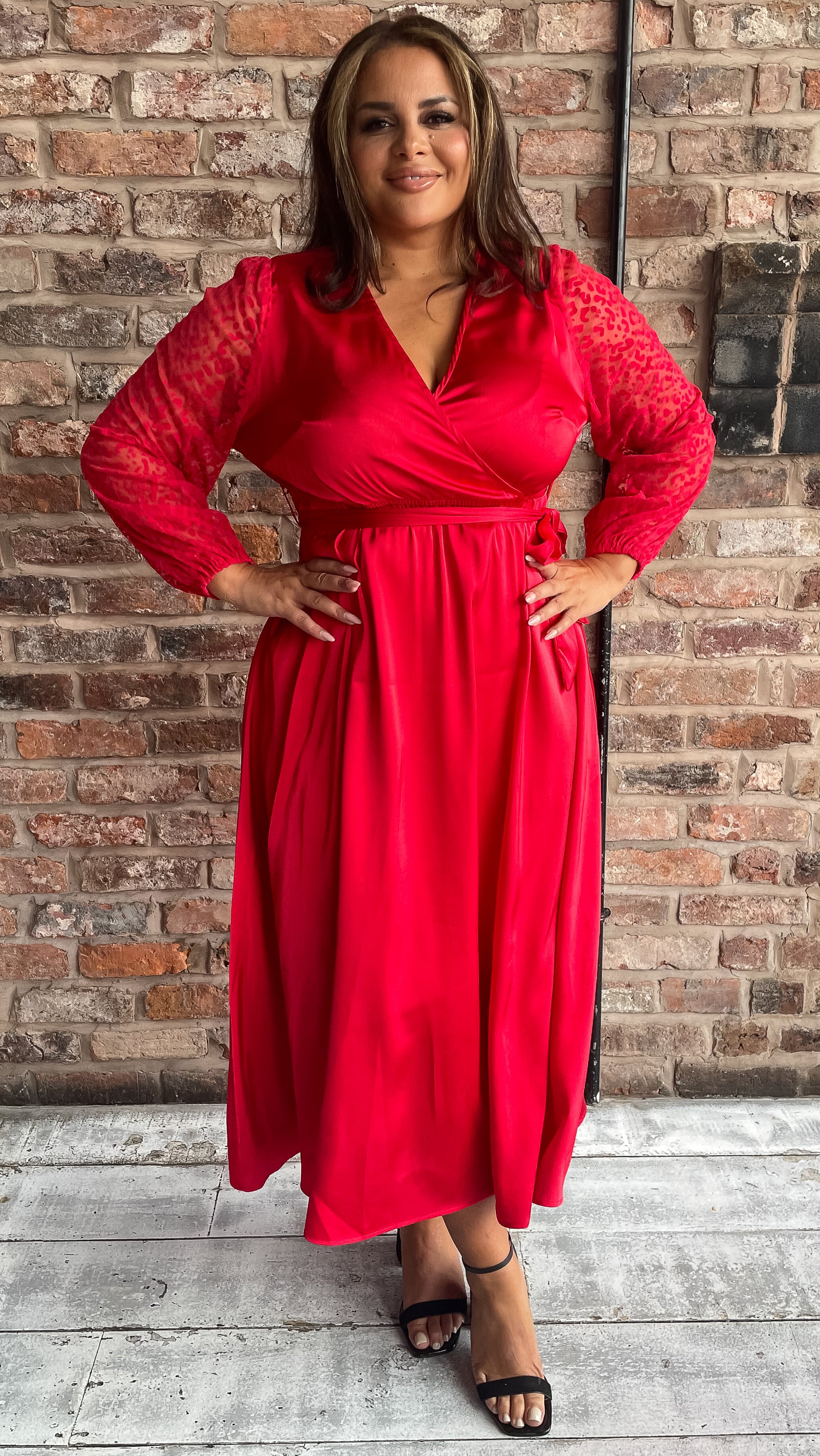 CurveWow Mesh Detail Wrap Midaxi Dress Red