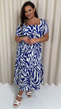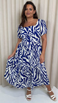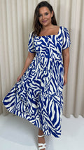 CurveWow Square Neck Puff Sleeve Dress Blue Zebra