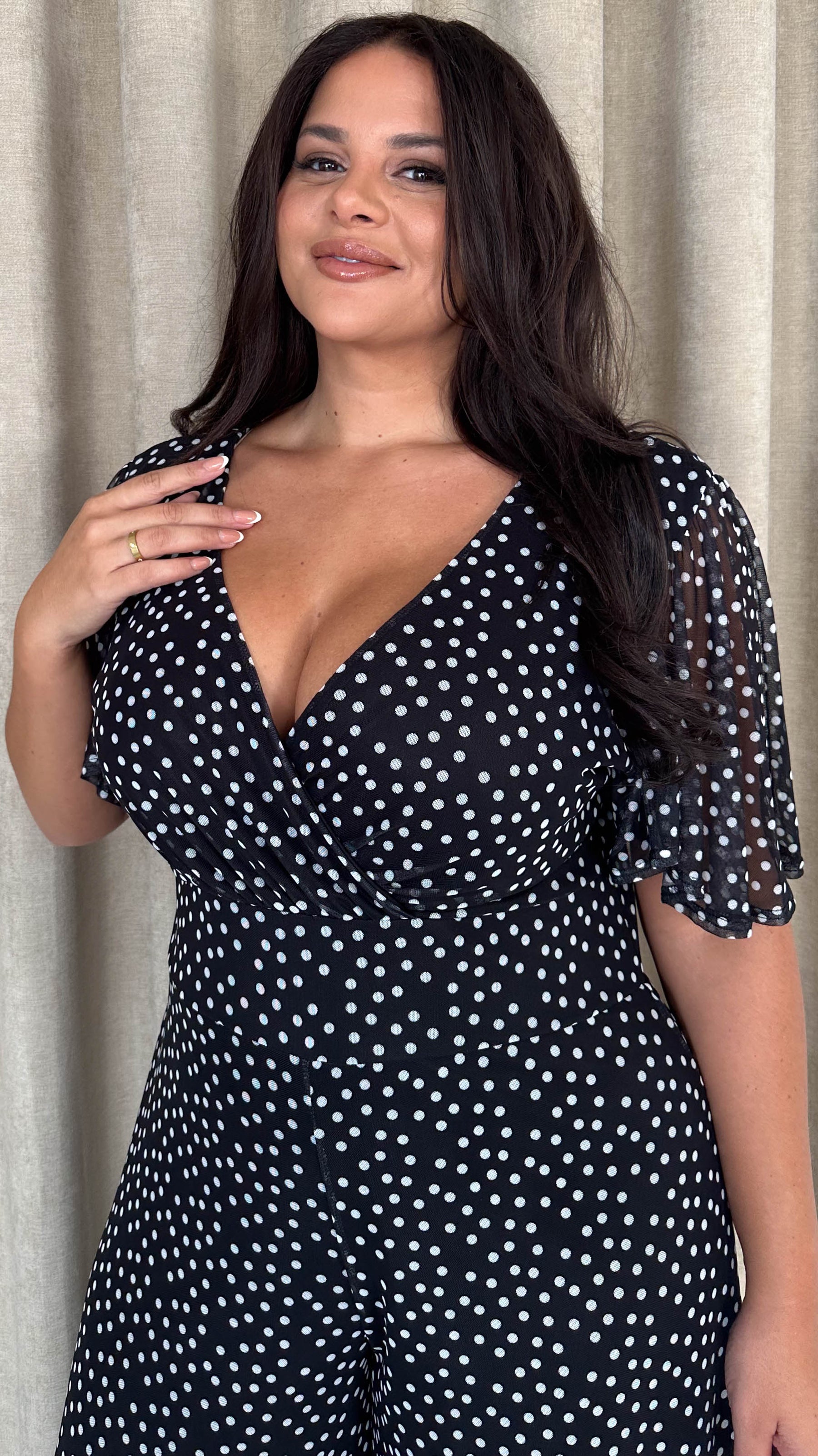 CurveWow Printed Mesh Angel Sleeve Wideleg Jumpsuit Spot