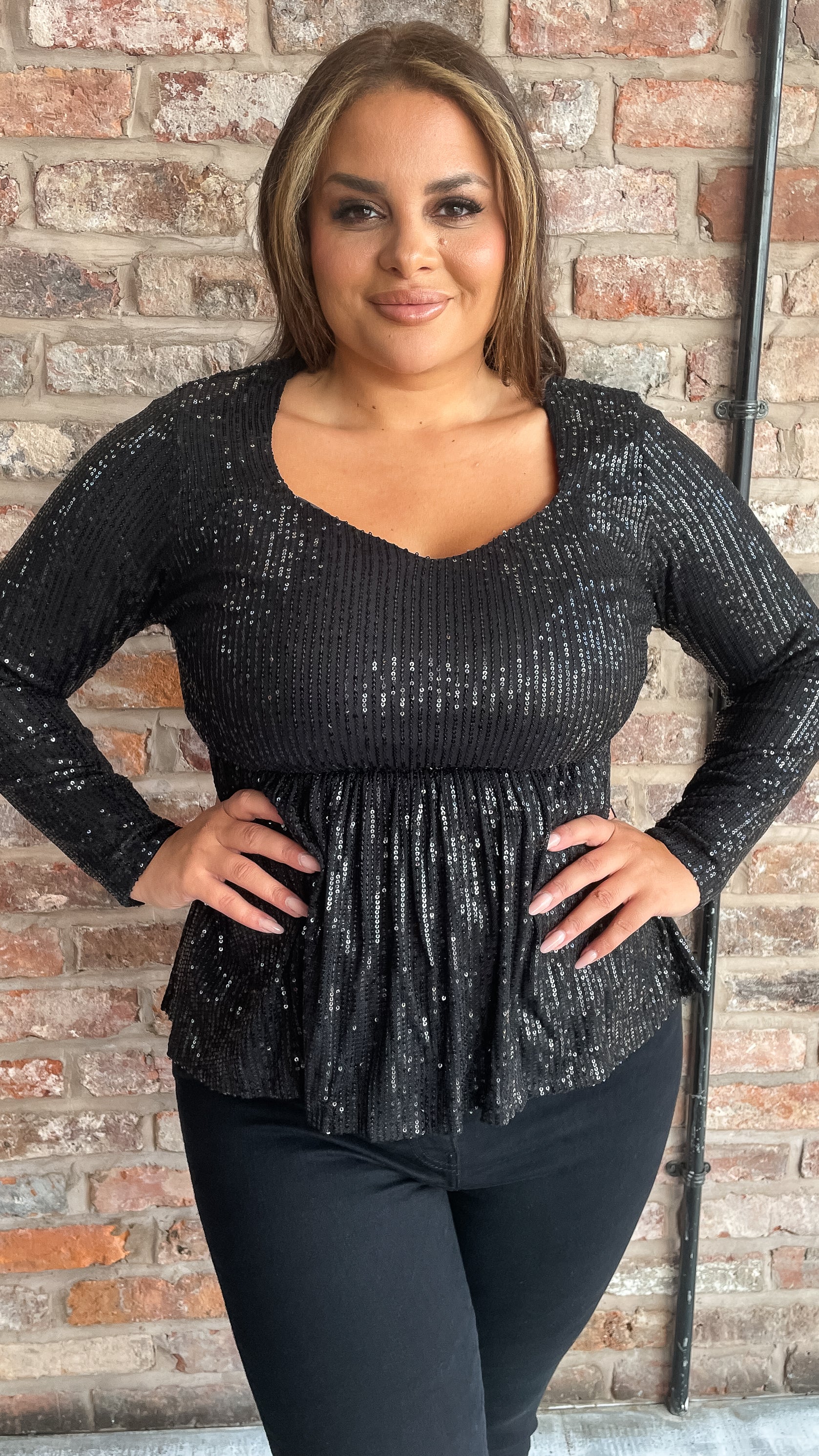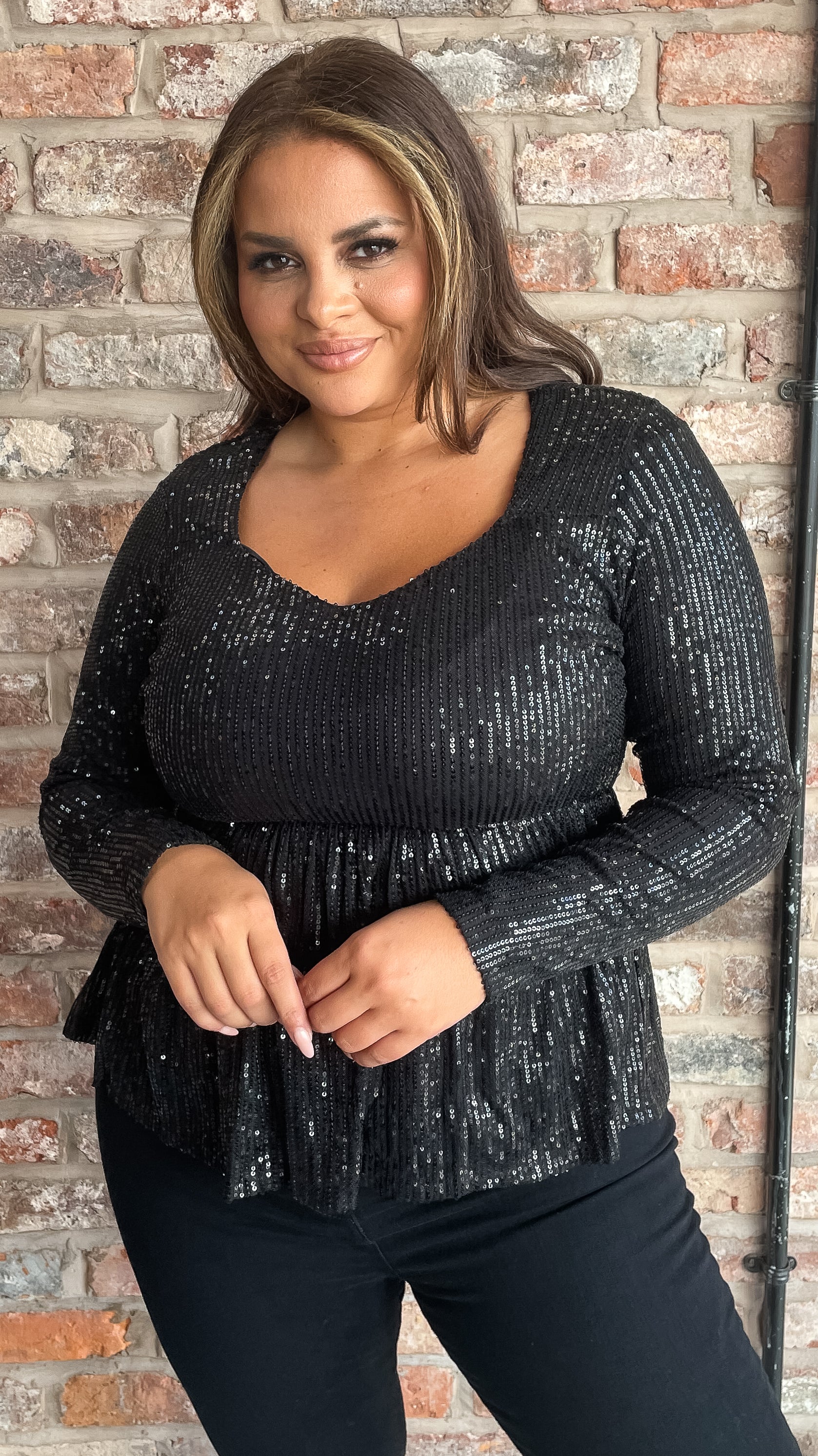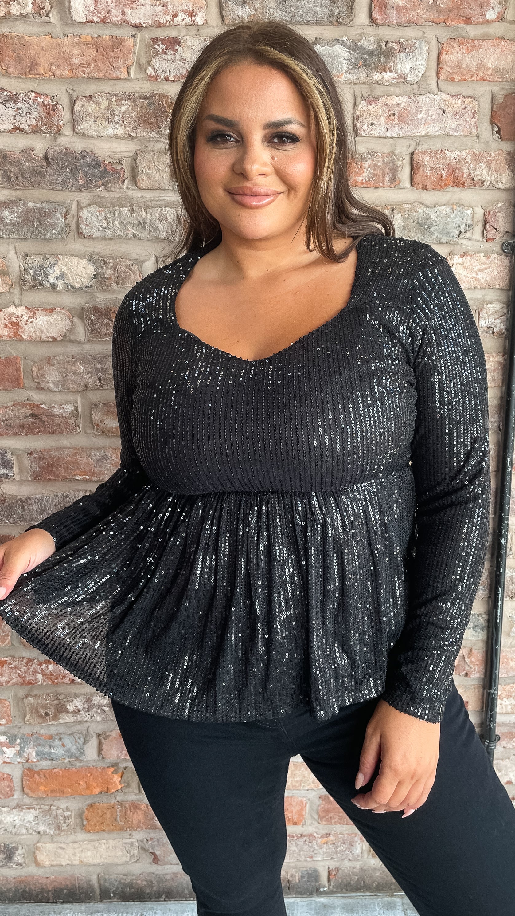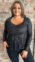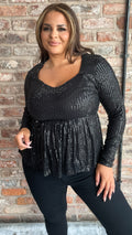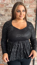 CurveWow Sequin Sweetheart Peplum Top Black