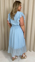 CurveWow Shirred Waist Frill Maxi Dress Light Blue