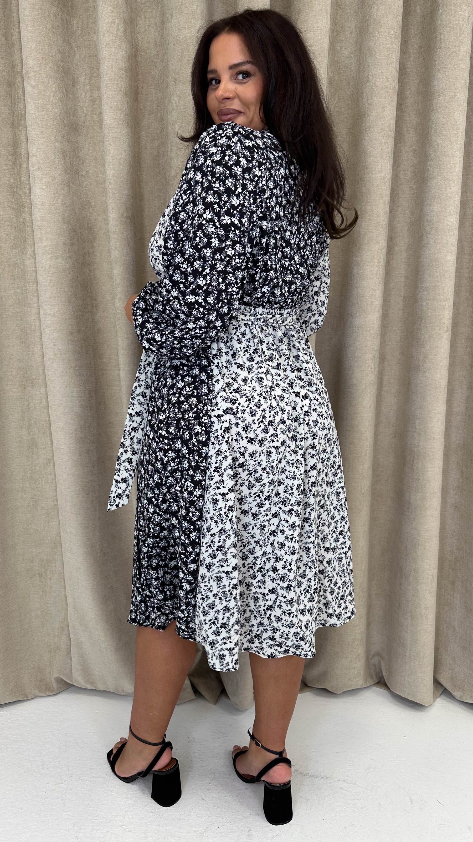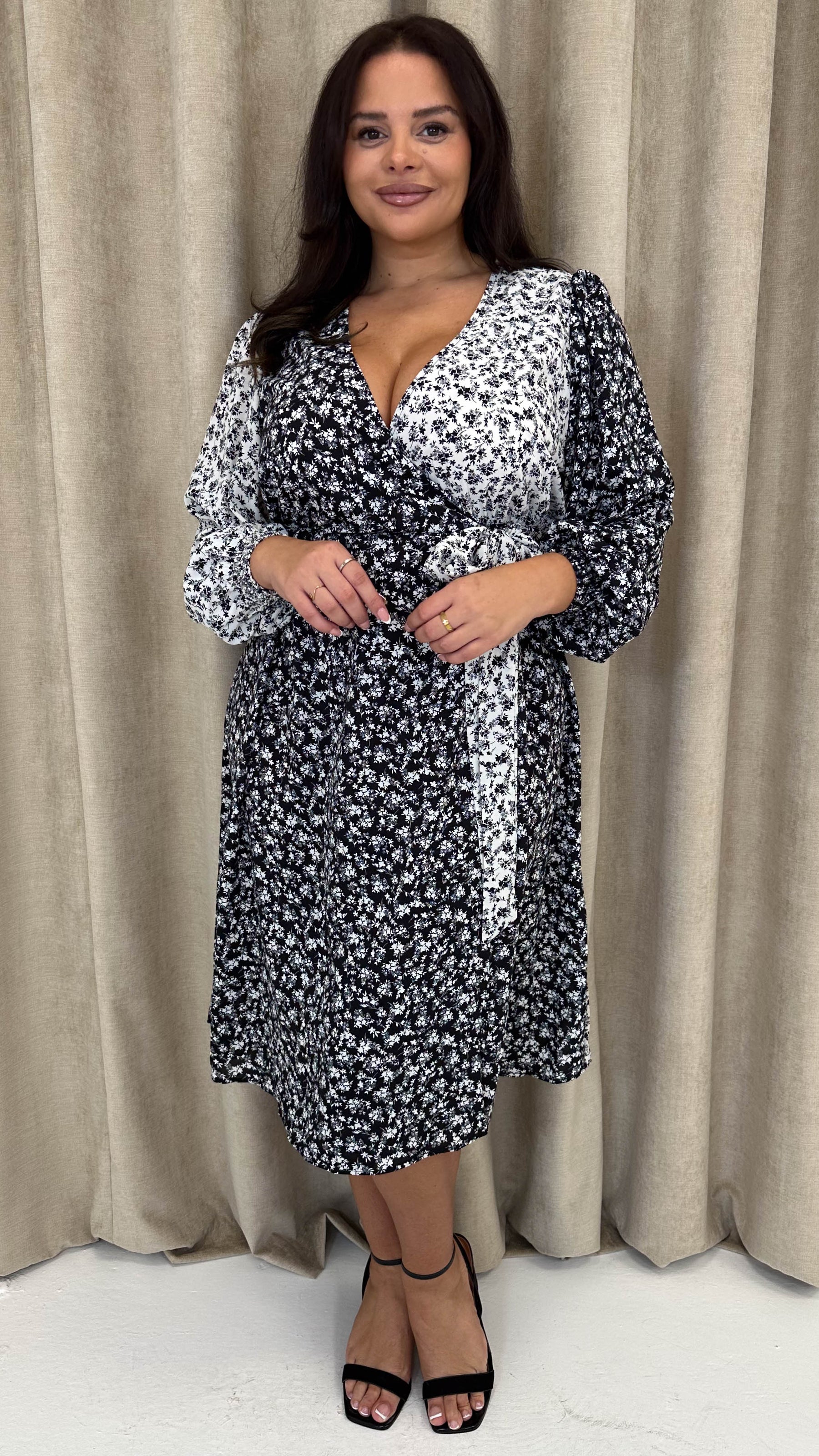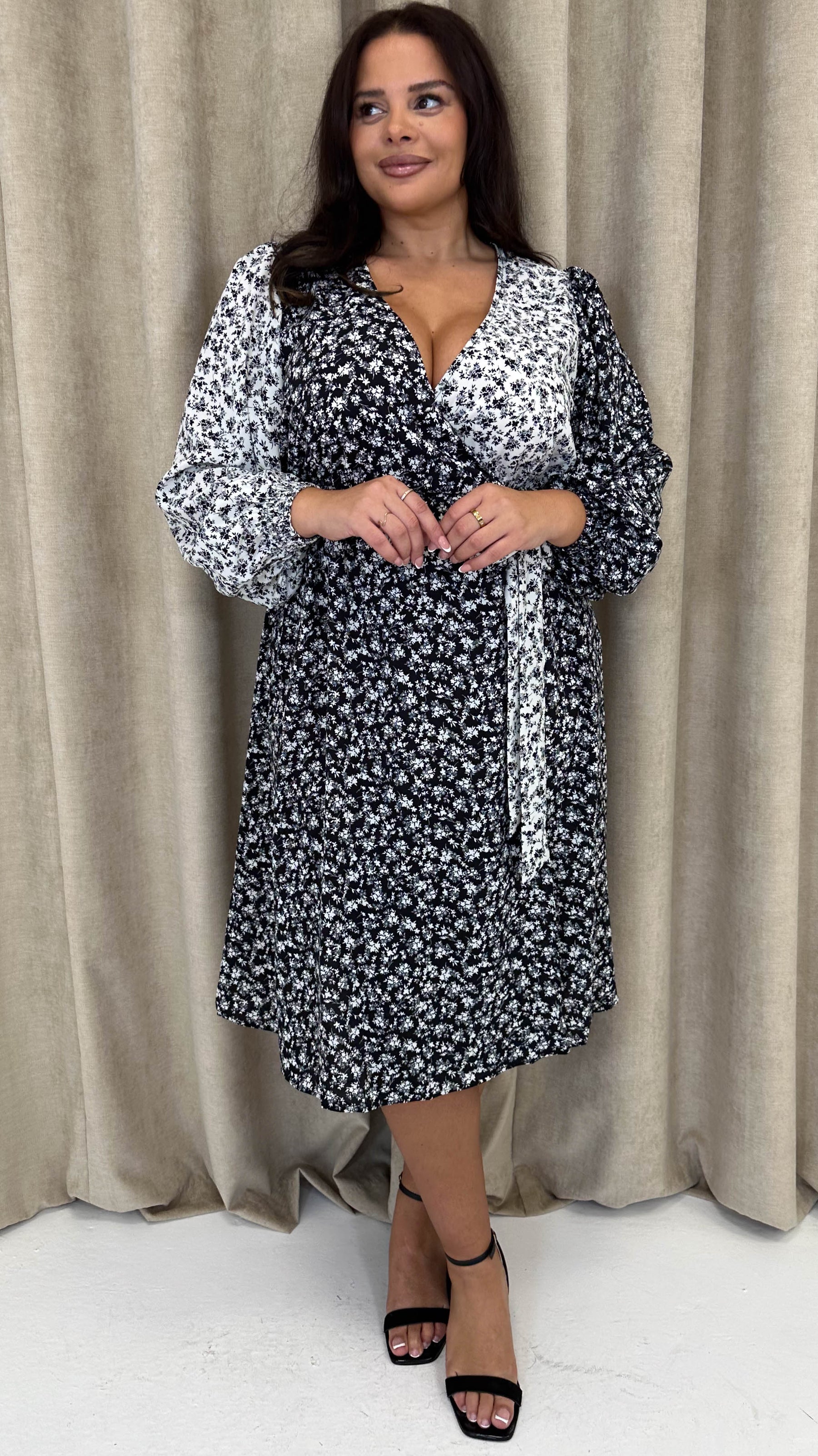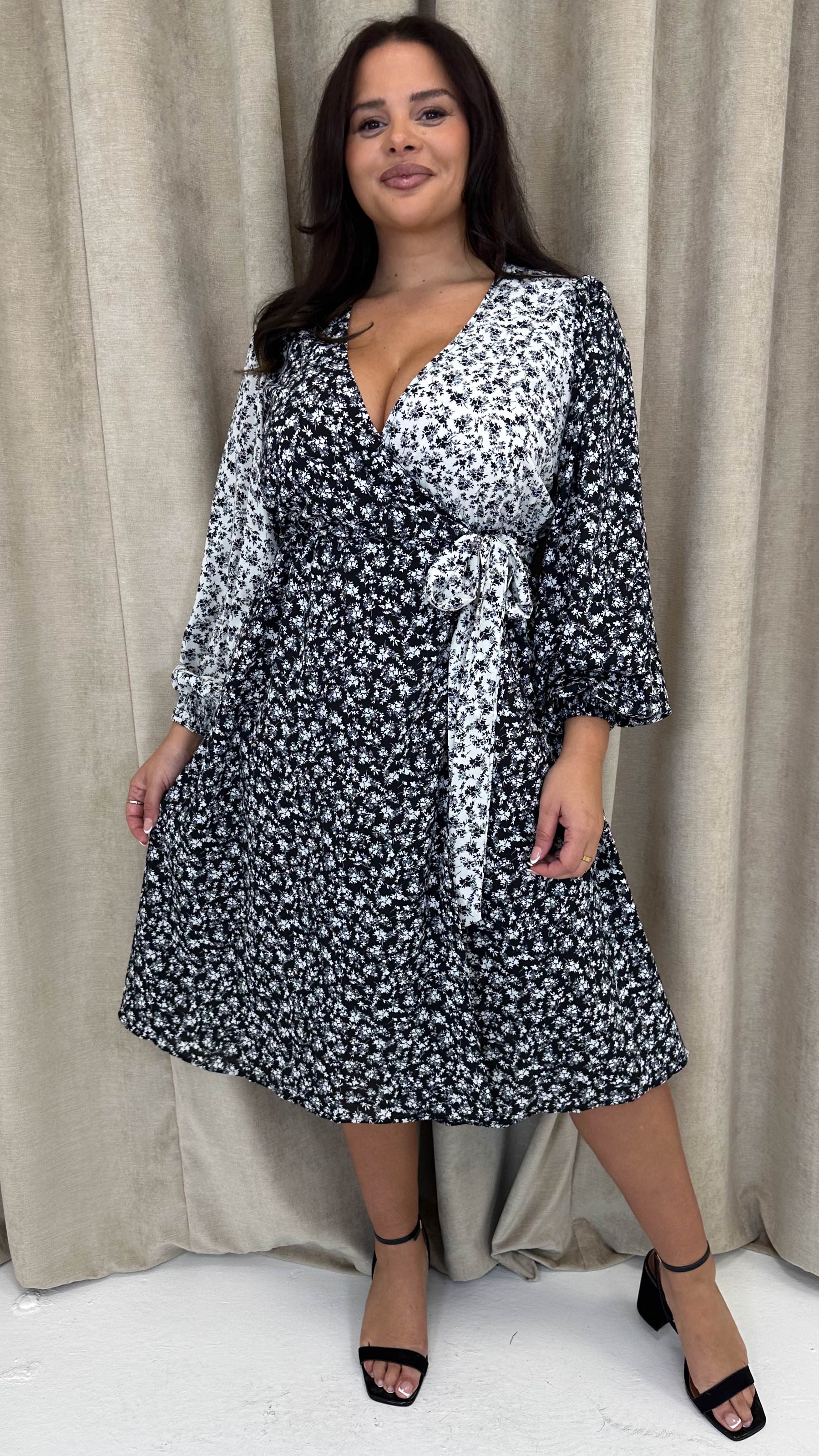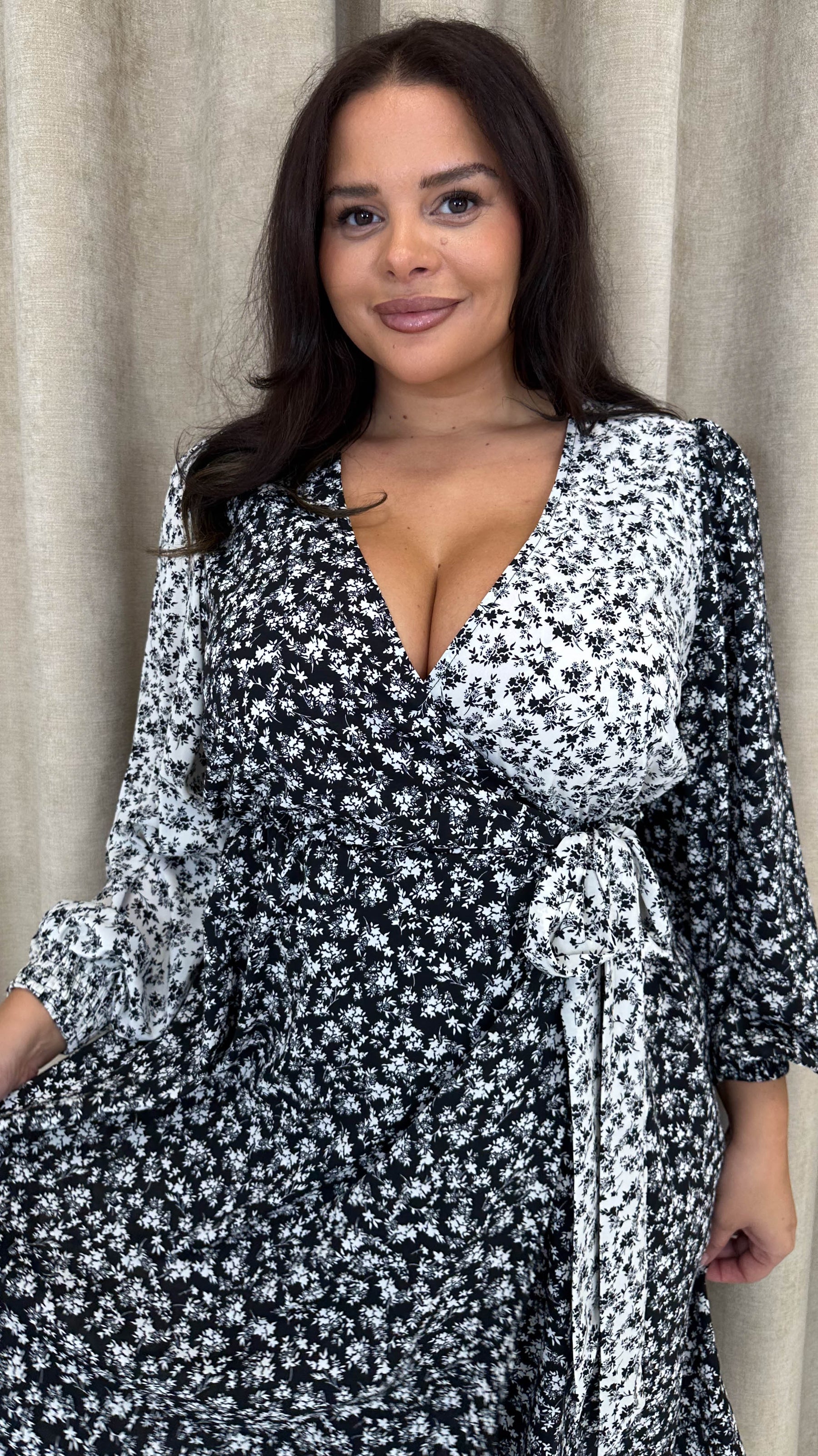 CurveWow Short Sleeve Pleated Wrap Dress Red Print