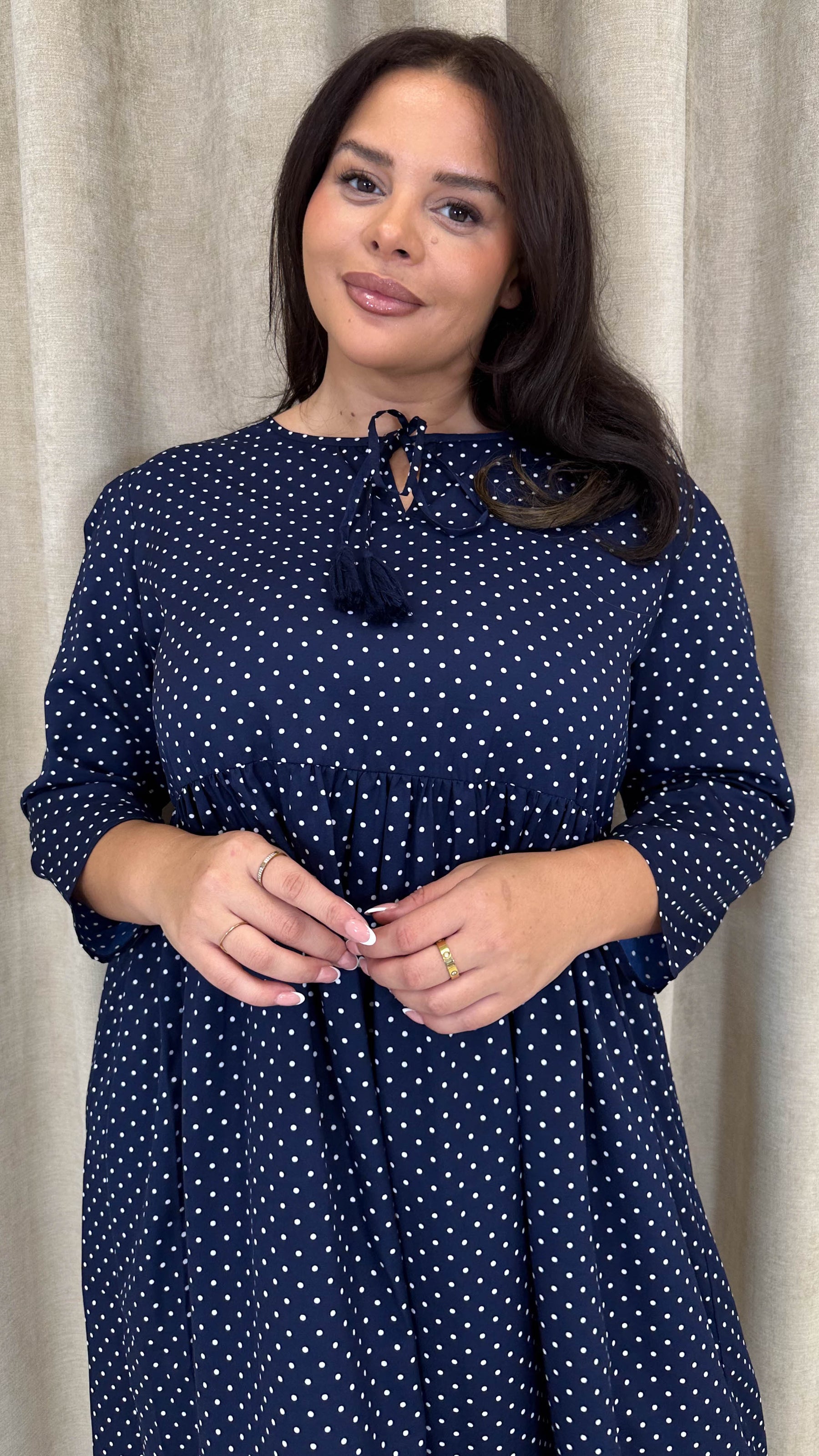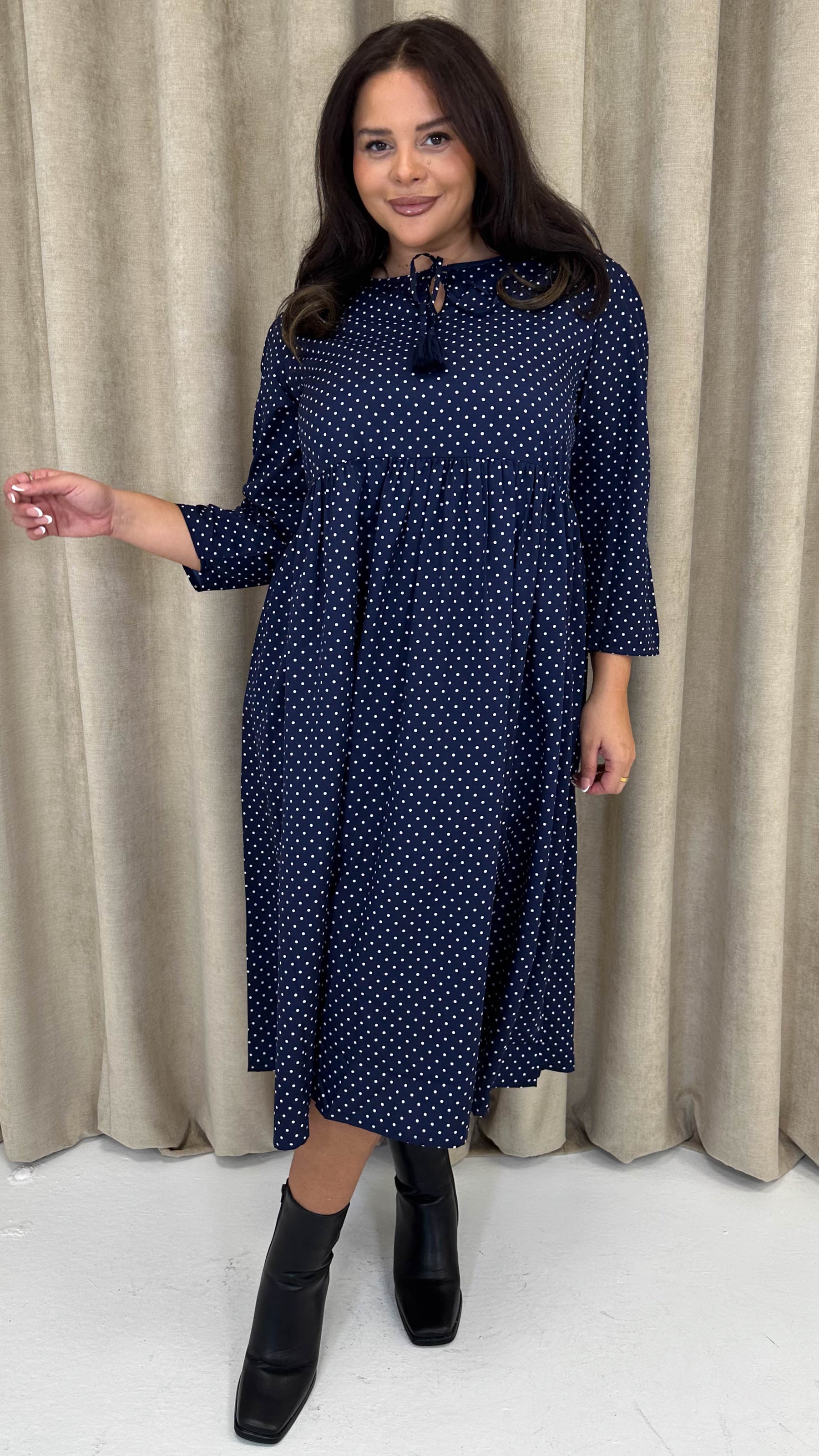 CurveWow Tassel Midaxi Dress Tiny Navy Polka Dot