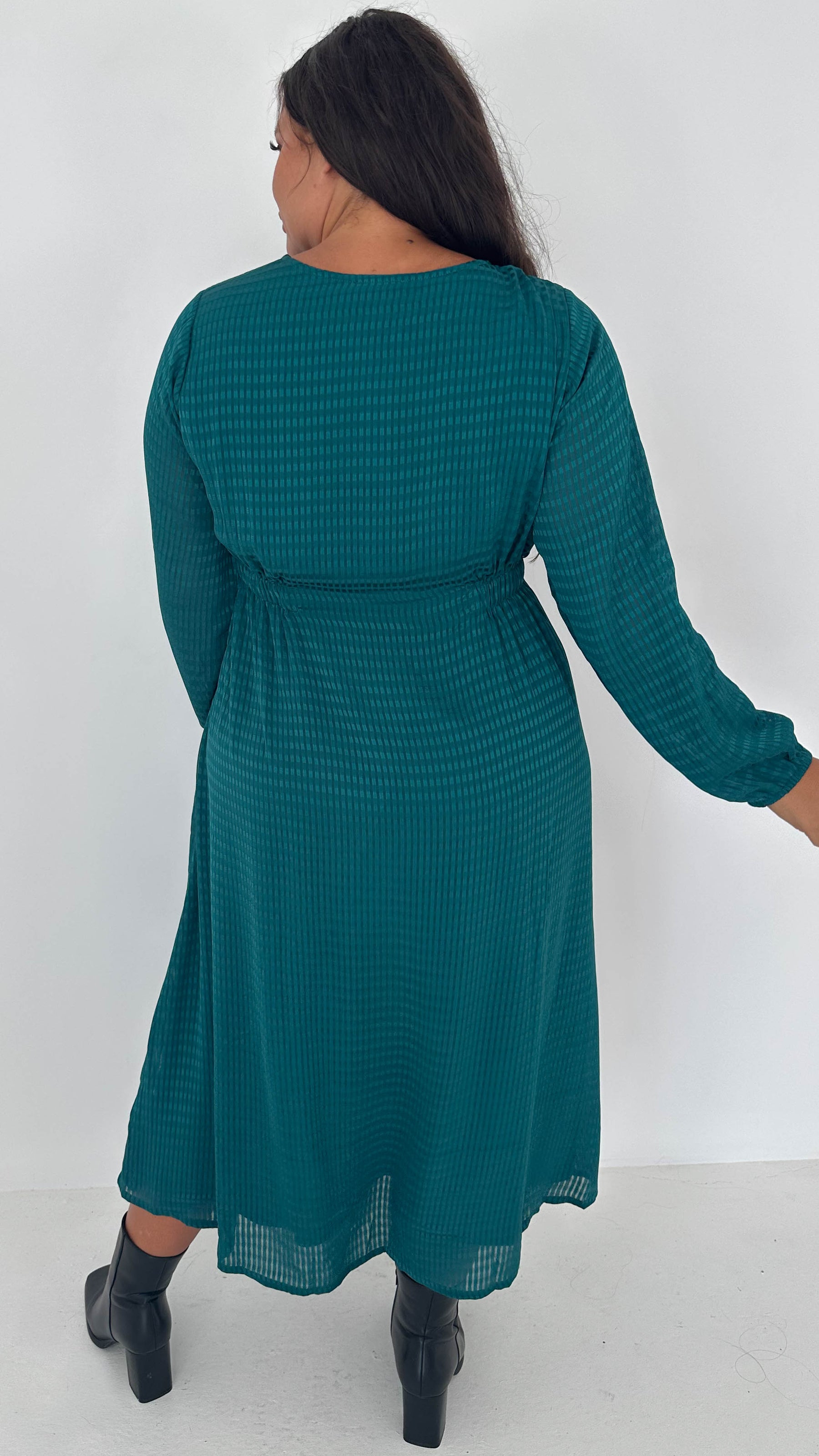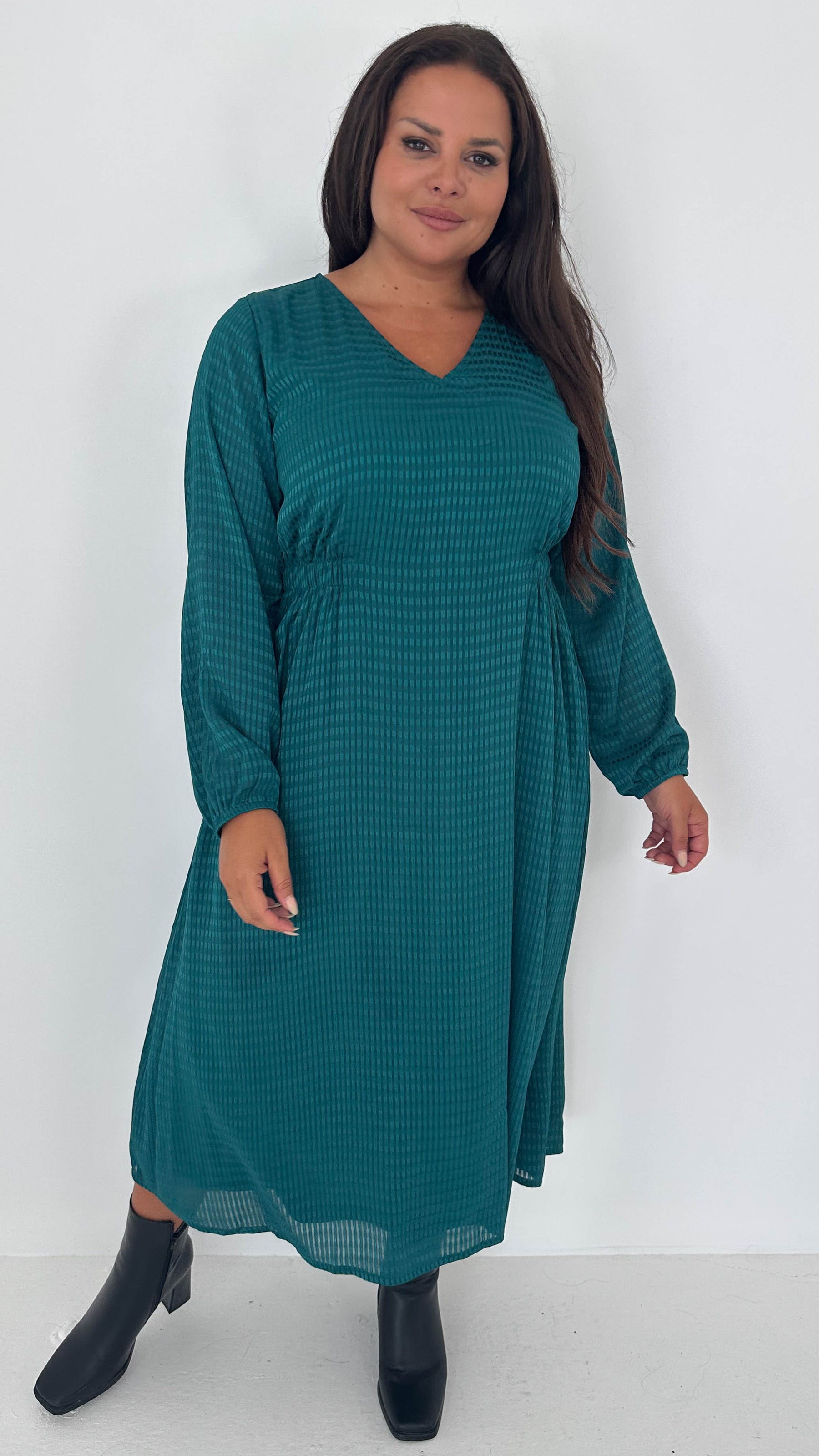 CurveWow Textured Vneck Dress Forest Green