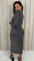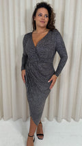 CurveWow Sparkle Wrap Ruched Midi Dress Black/Silver