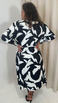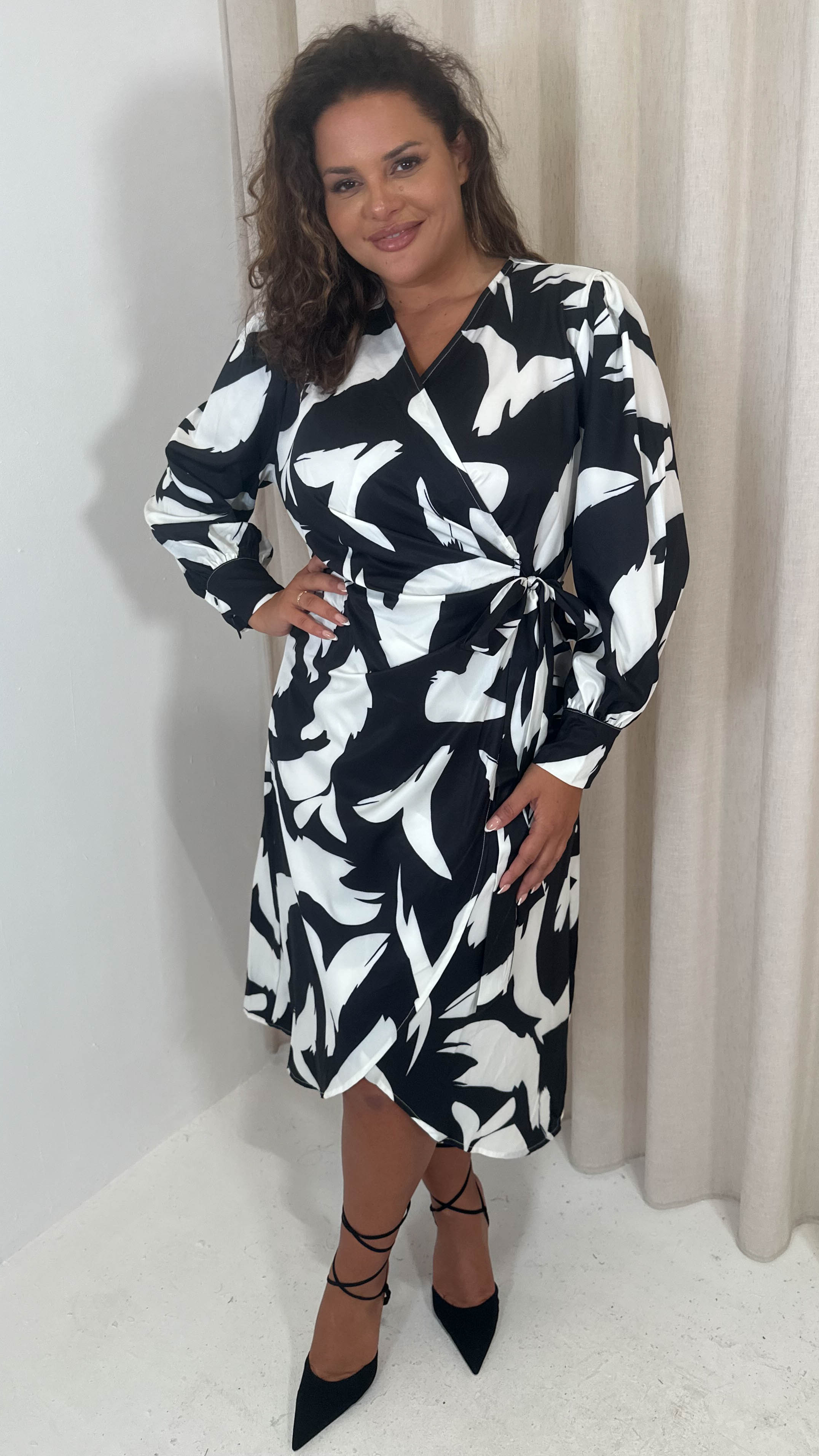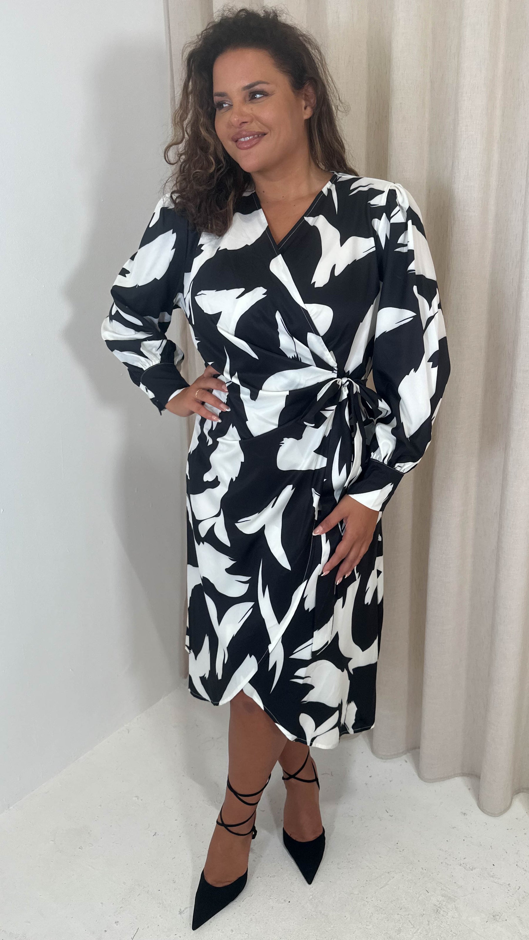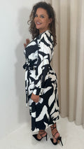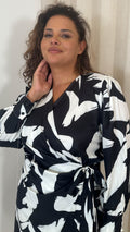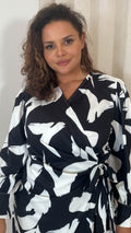 CurveWow Wrap Tie Side Midi Dress Mono Print