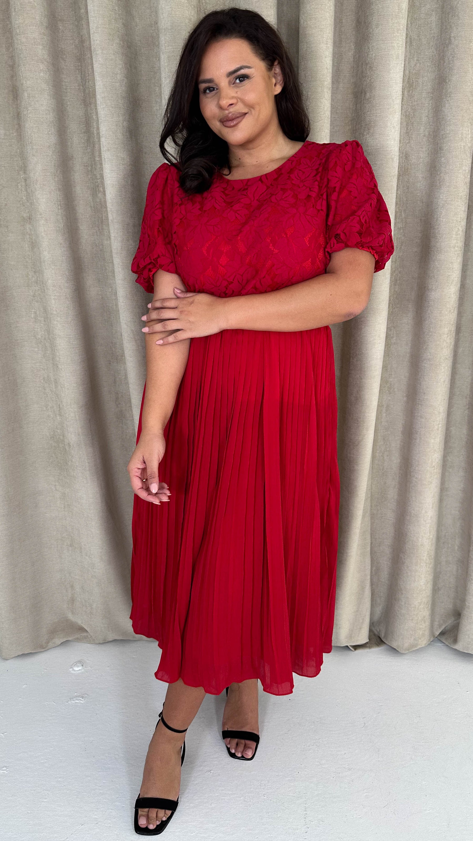CurveWow Wrap Angel Sleeve Pleated Midi Dress Red Polka Dots
