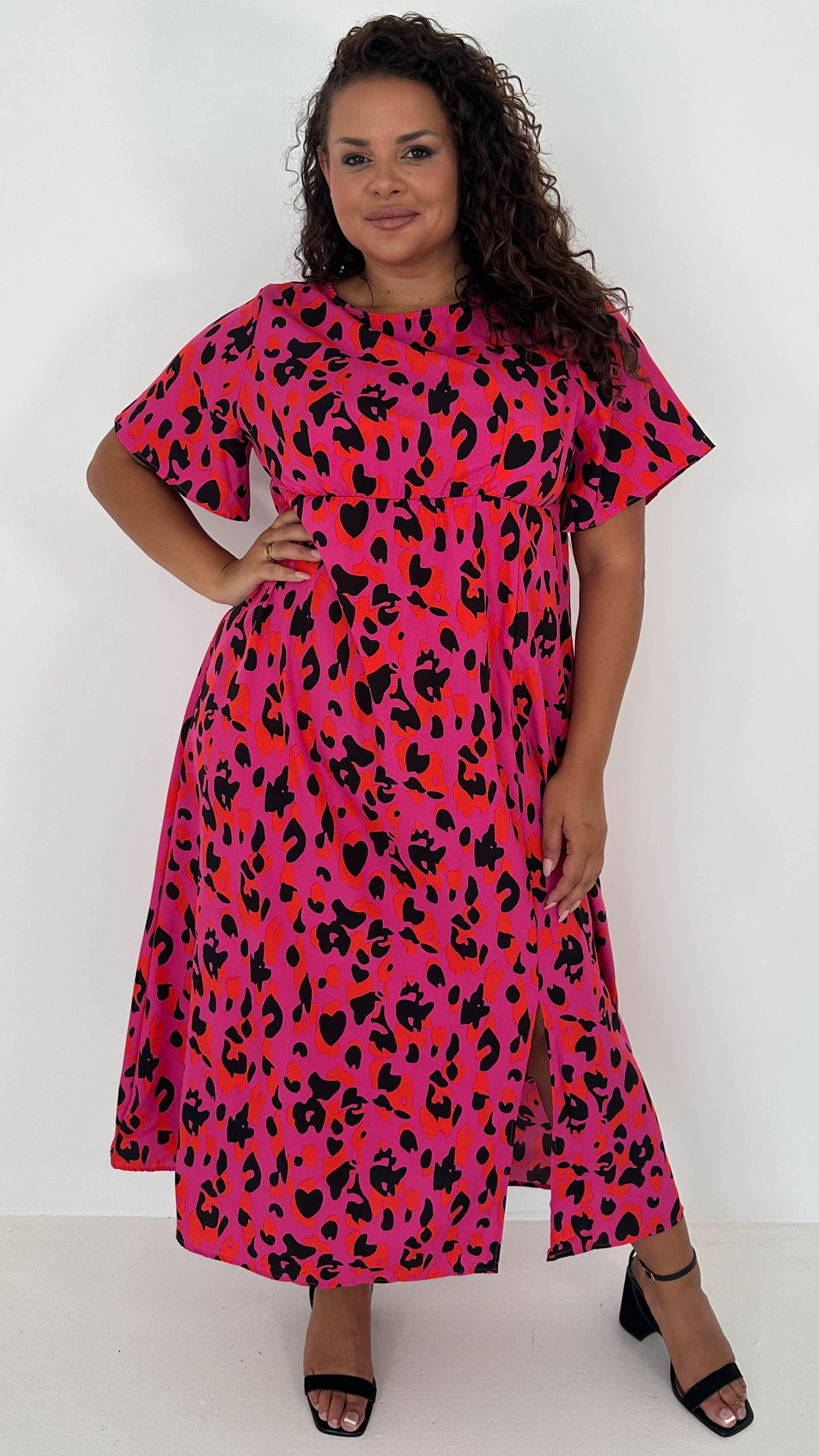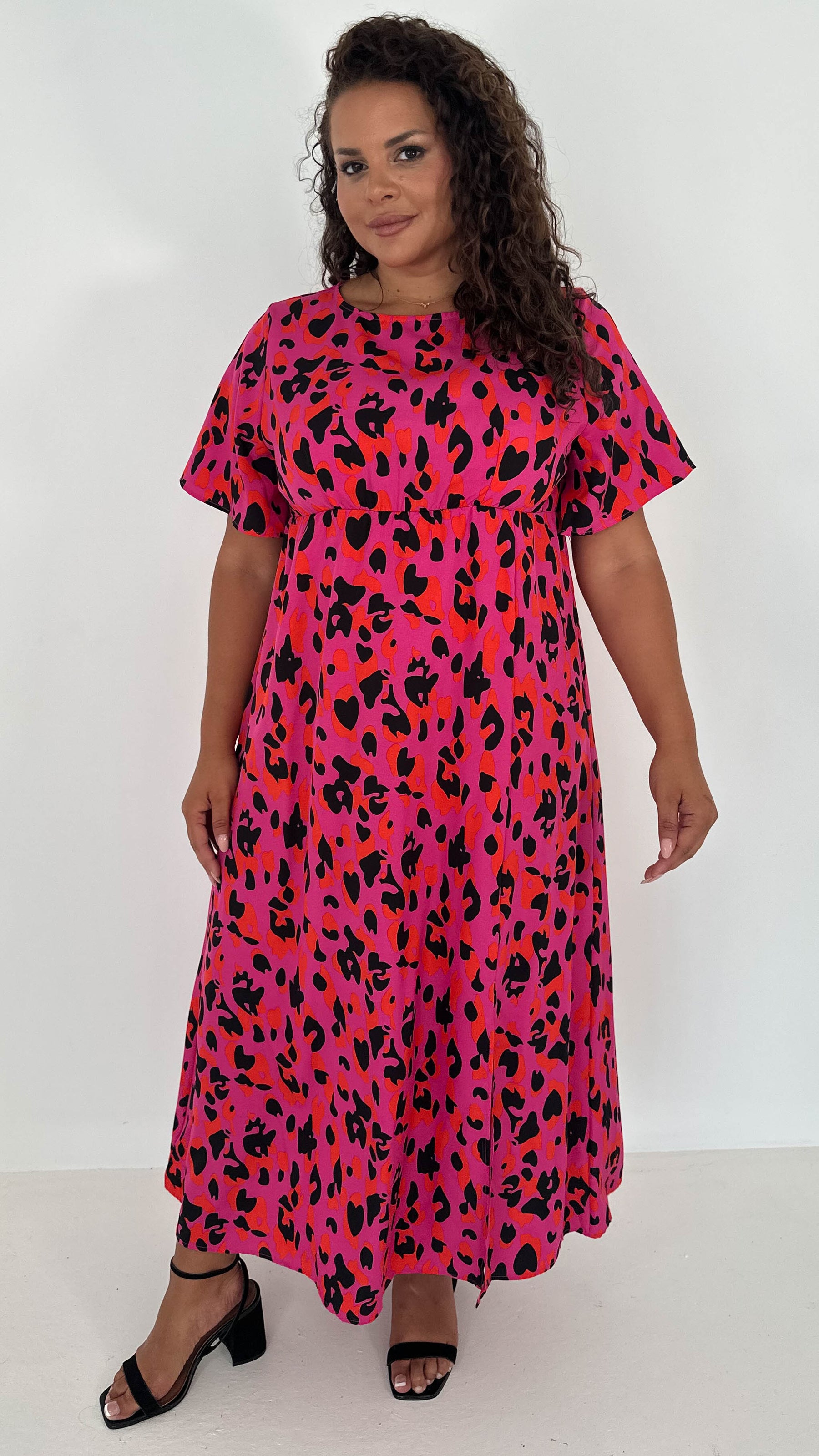 CurveWow Short Sleeve Maxi Tea Dress Pink Animal