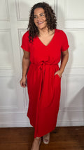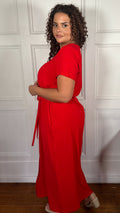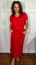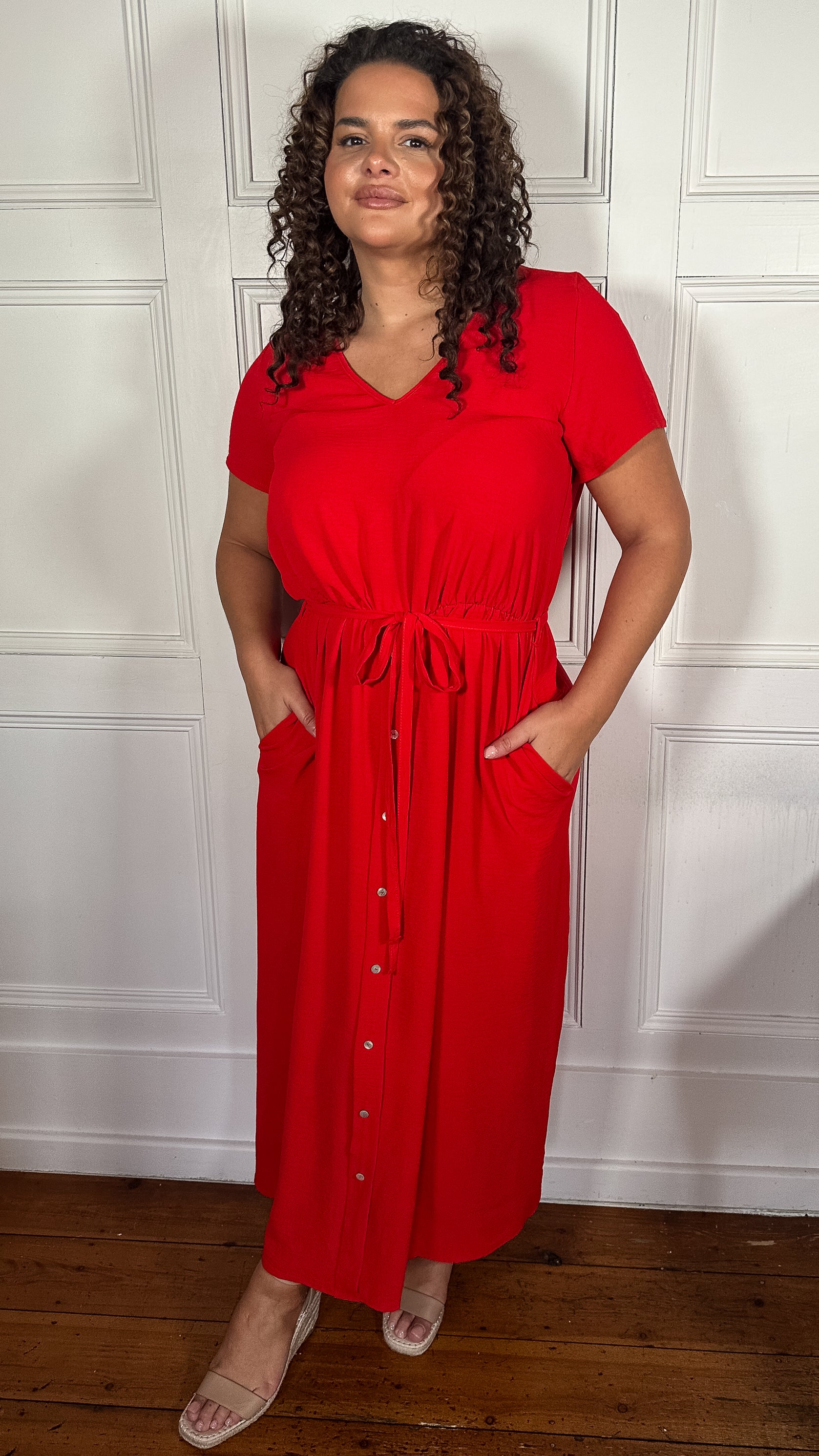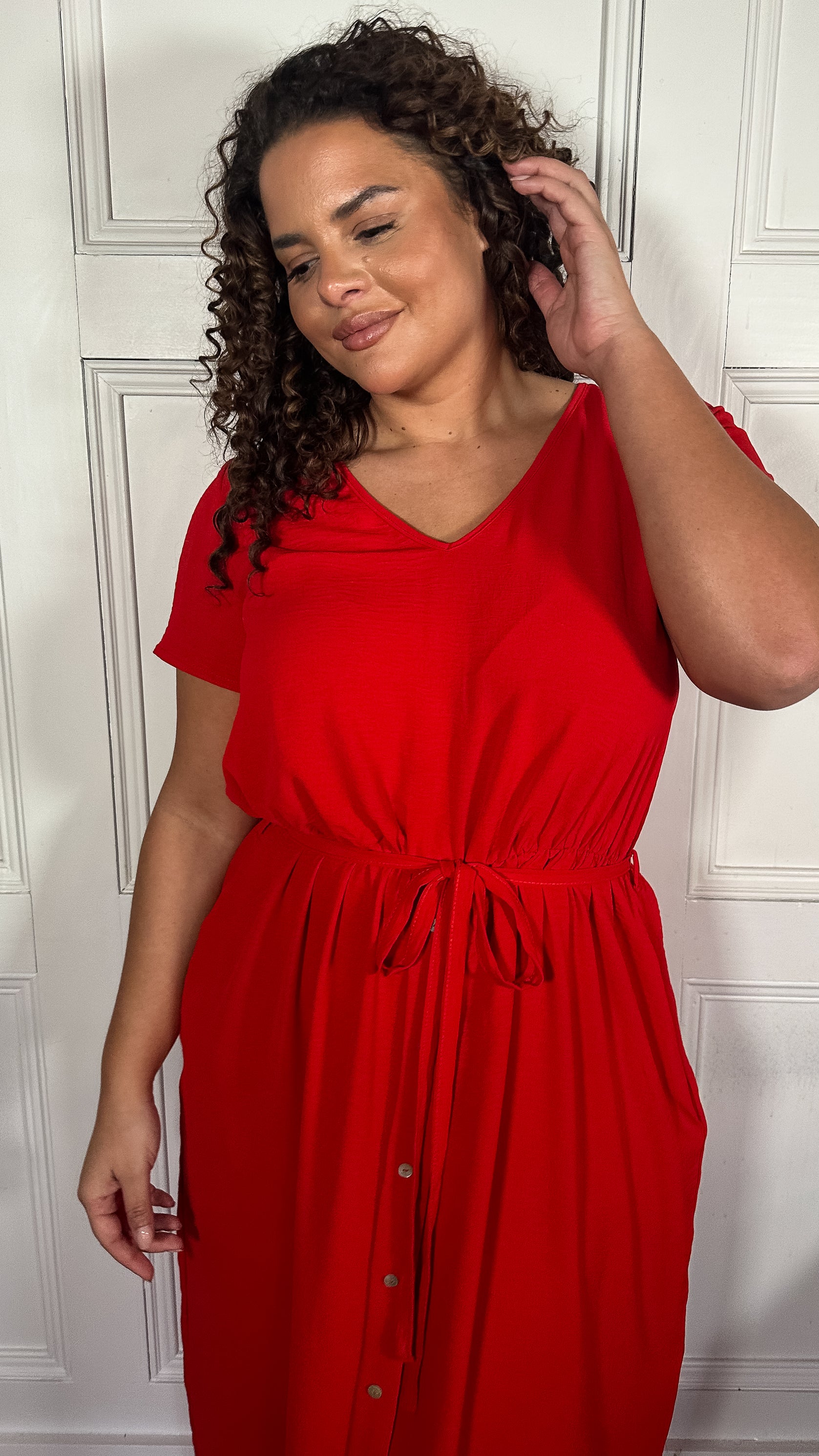 CurveWow Button Front Ocean Crepe Maxi Dress Red