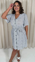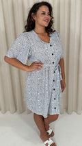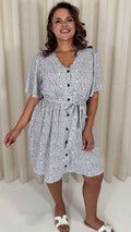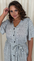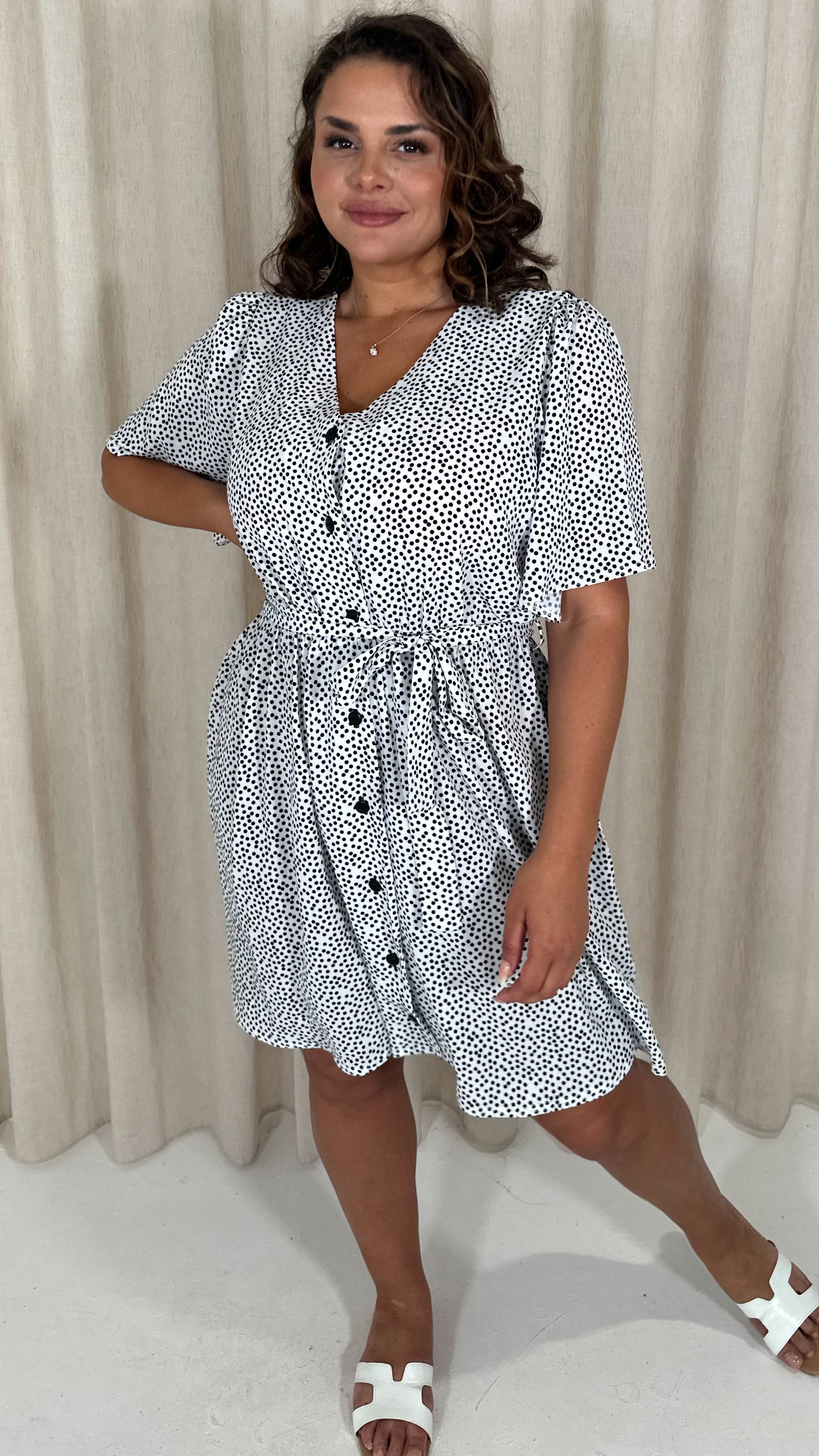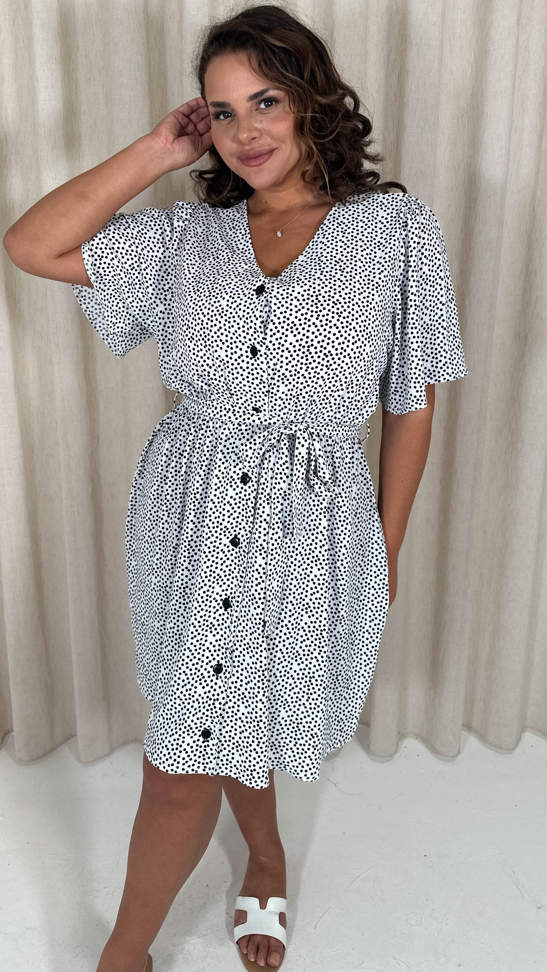 CurveWow Crepe Angel Sleeve Button Down Dress Polka Dot