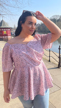 CurveWow Sweetheart Peplum Top Pink Ditsy