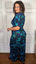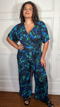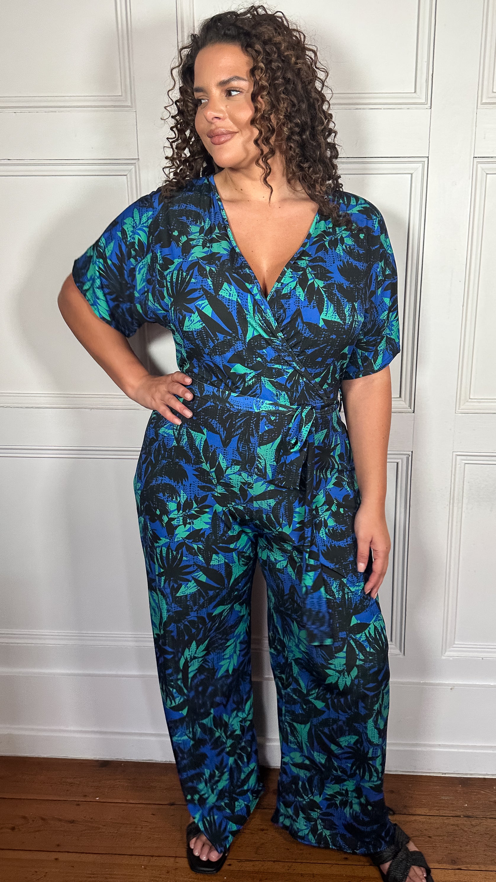 CurveWow Printed Slinky Wrap Jumpsuit Green Tropical