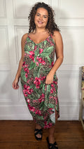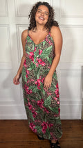 CurveWow Printed Tie Front Maxi Dress Leopard Floral