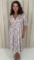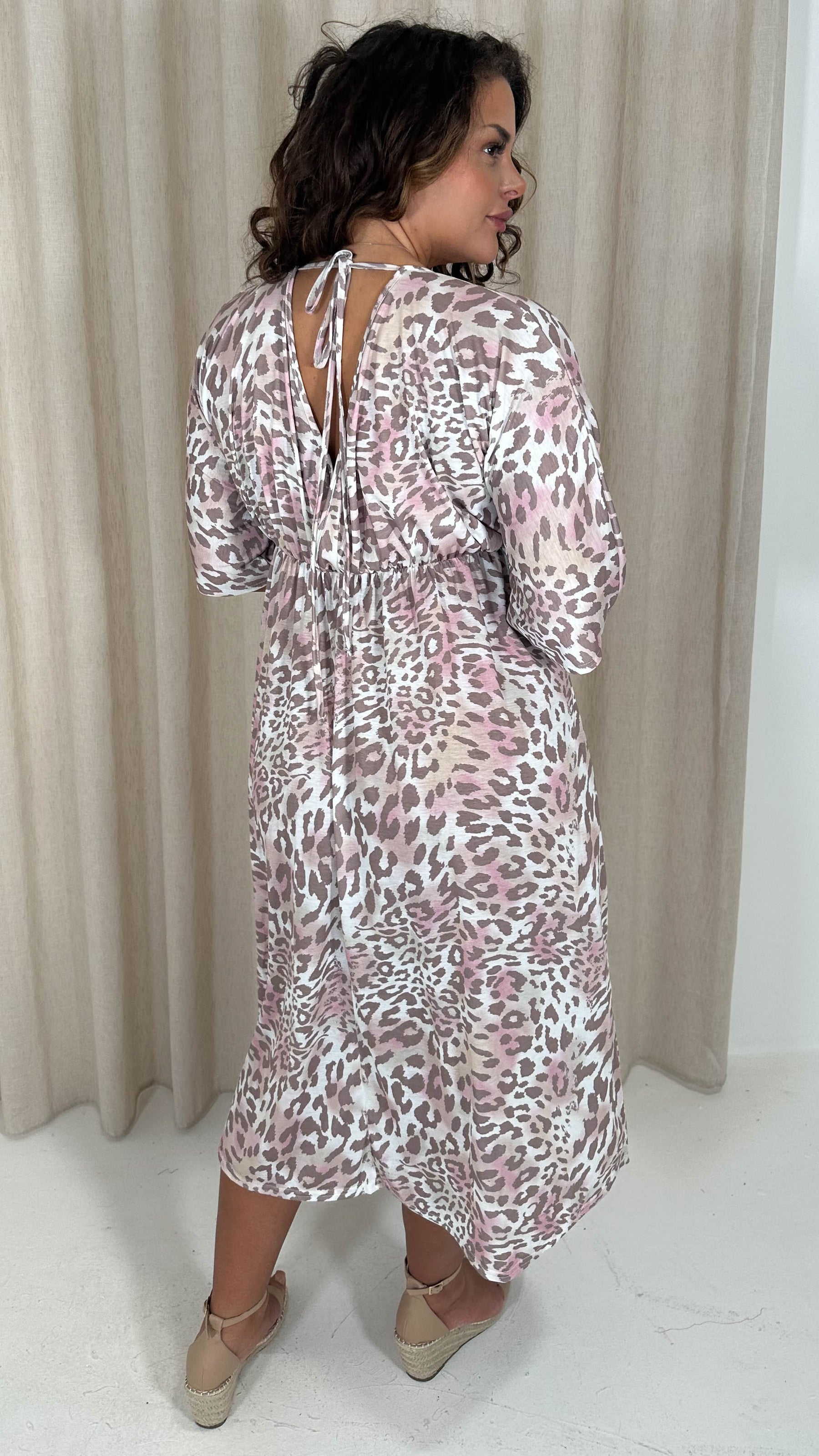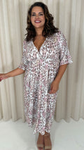 CurveWow Tie Back Kimono Sleeve Midi Dress Light Animal
