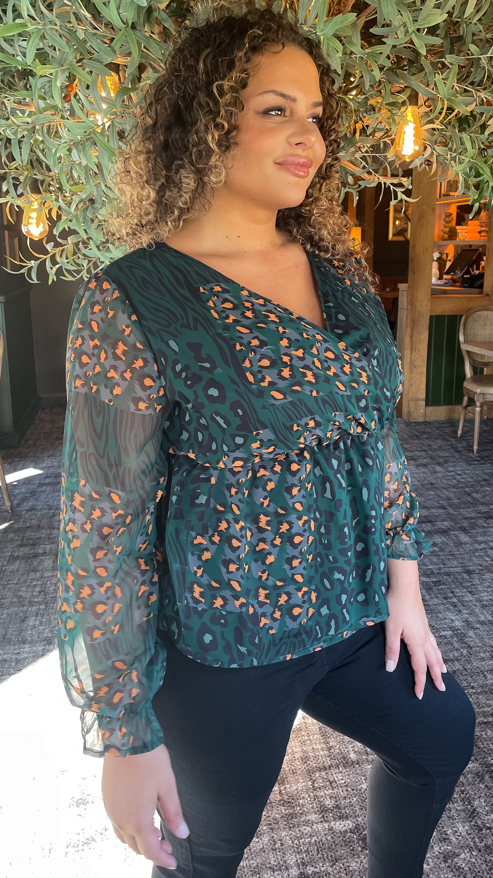 CurveWow Mesh Angel Sleeve Twist Neck Top Black
