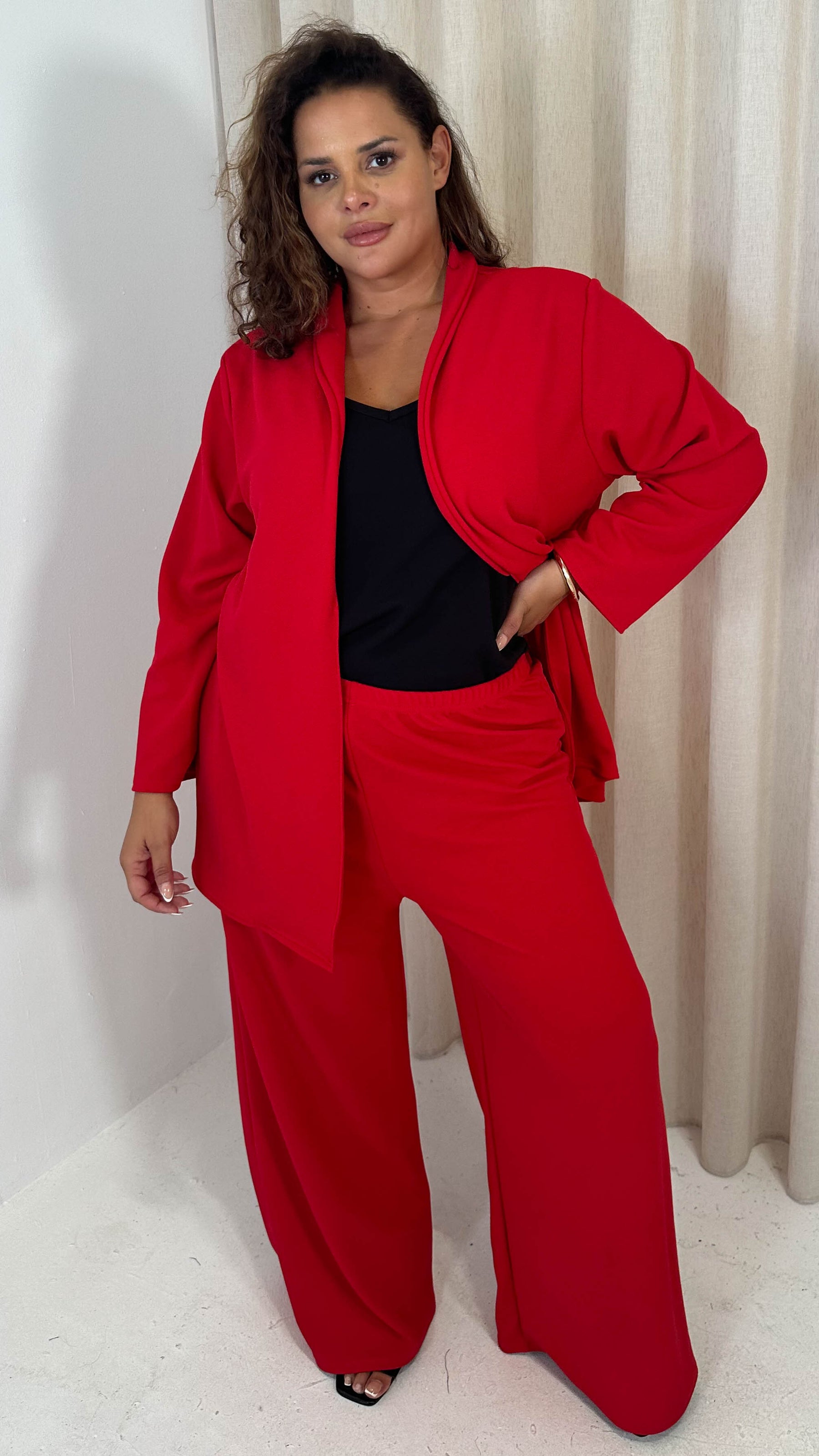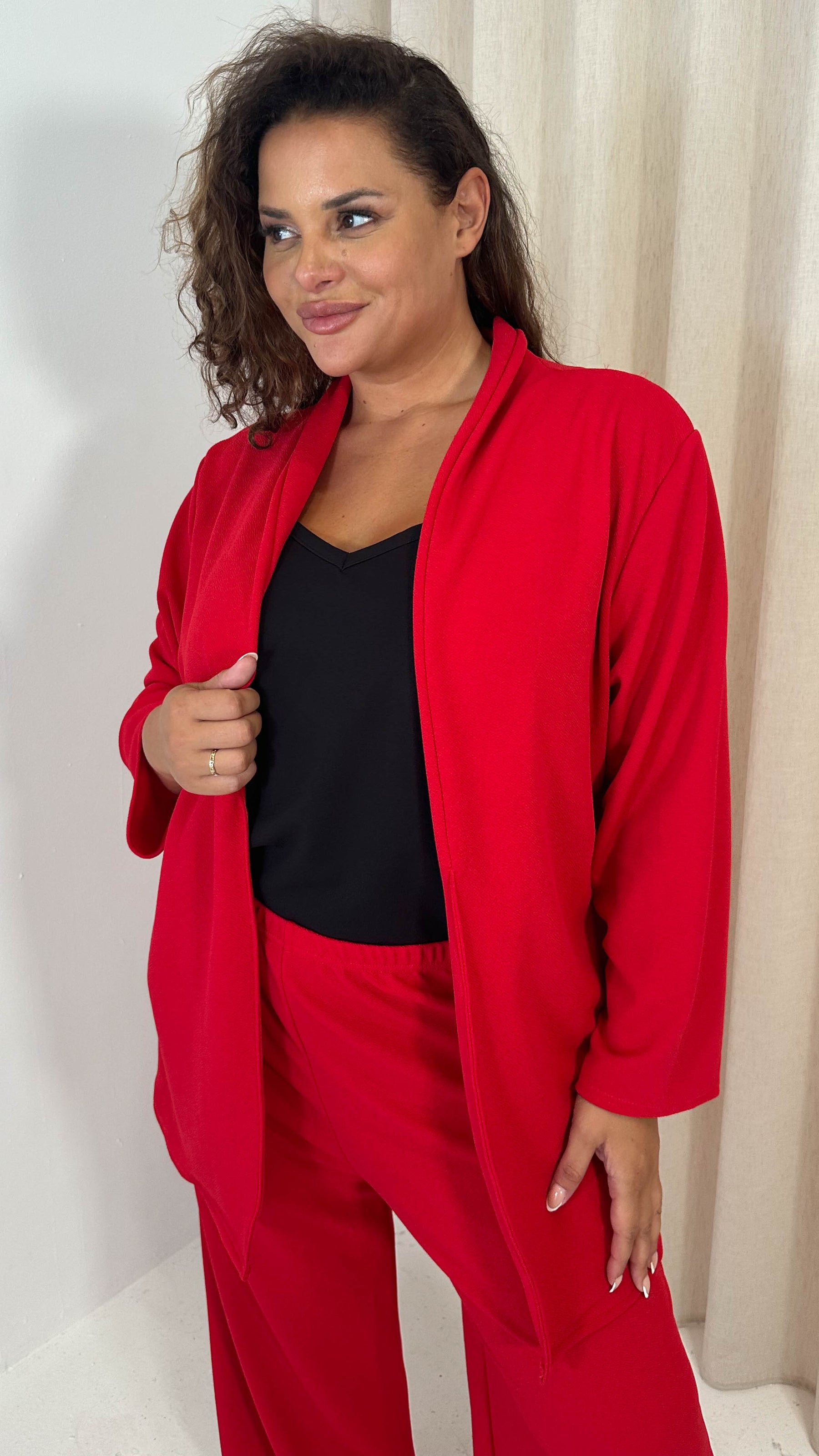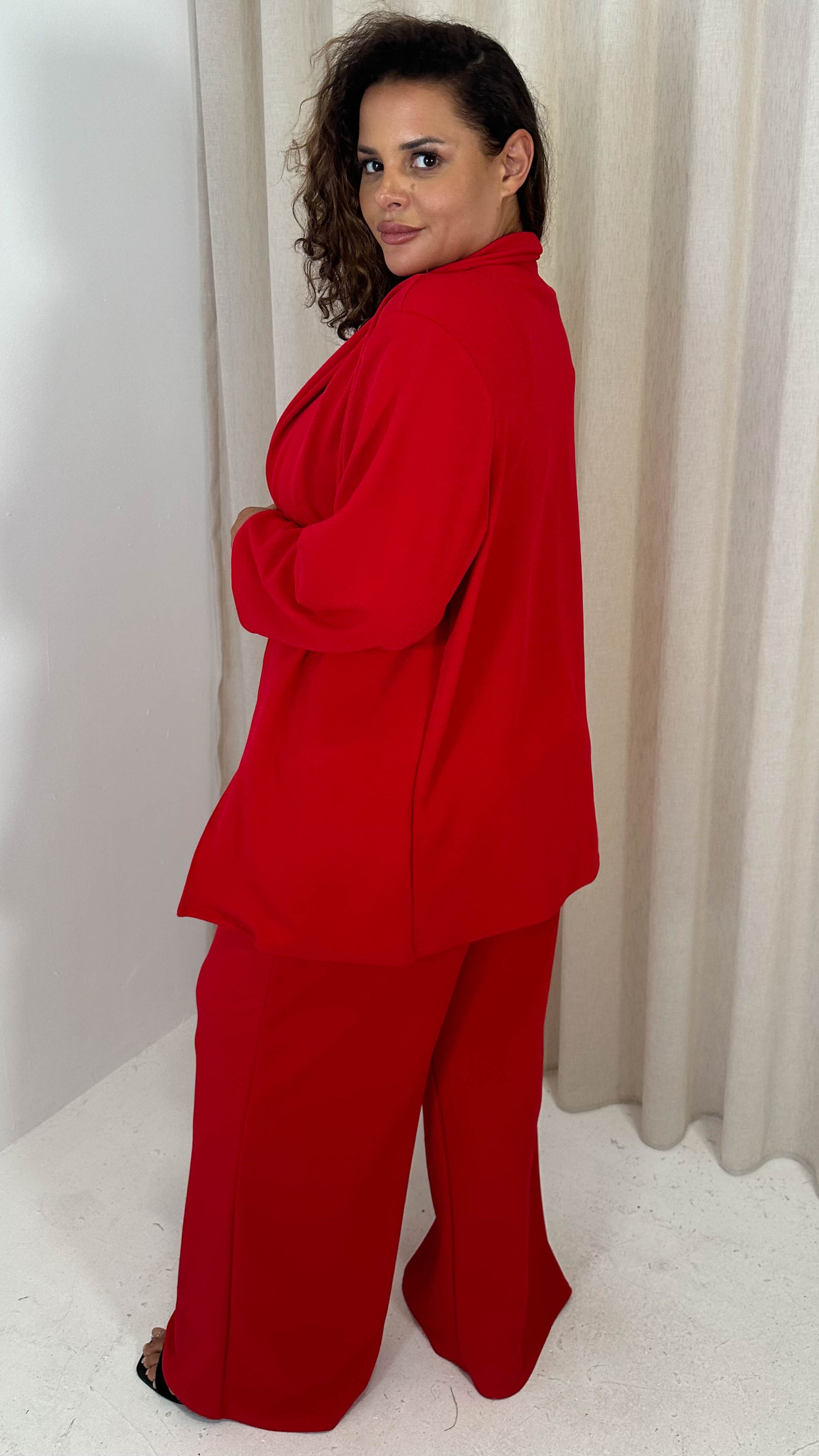 CurveWow Crepe Relaxed Blazer Cherry Red