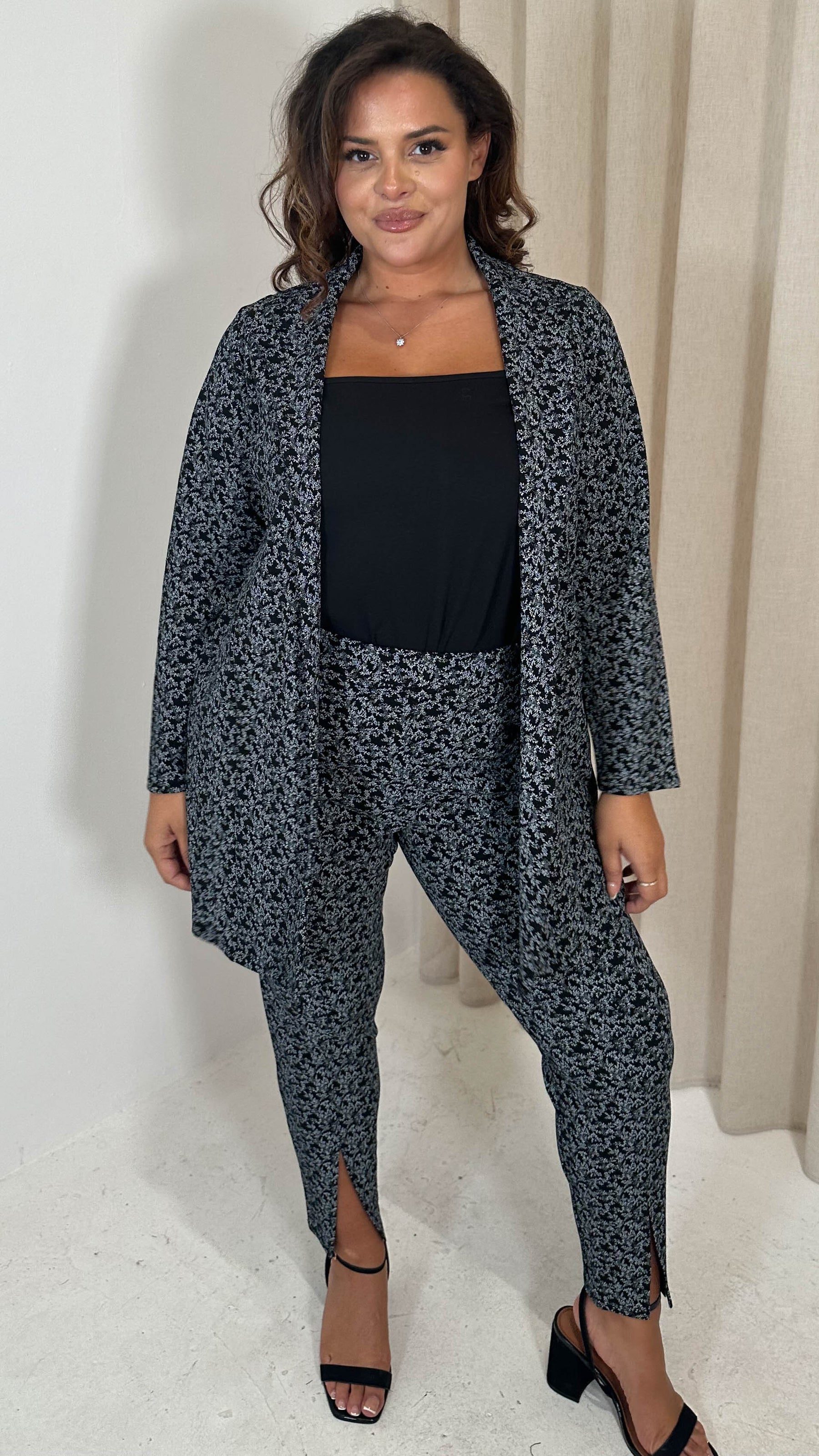 CurveWow Ditsy Print Blazer Mono Ditsy