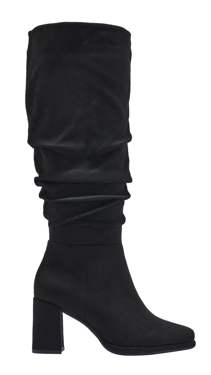 Wide Fit Heeled Thigh-High Boot Black Micro