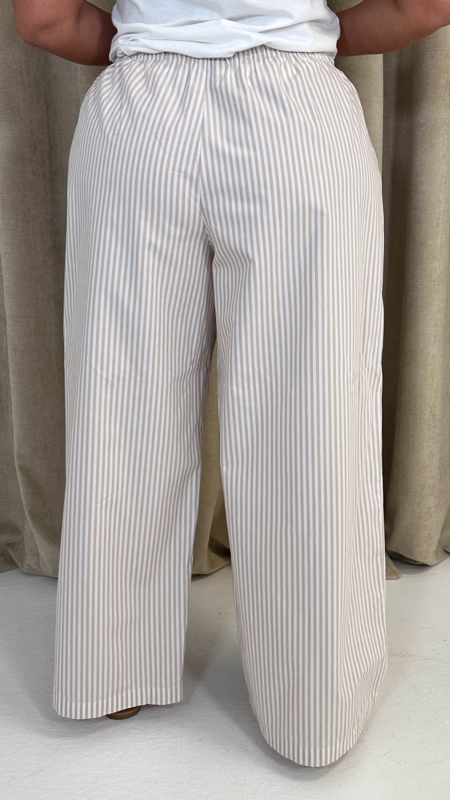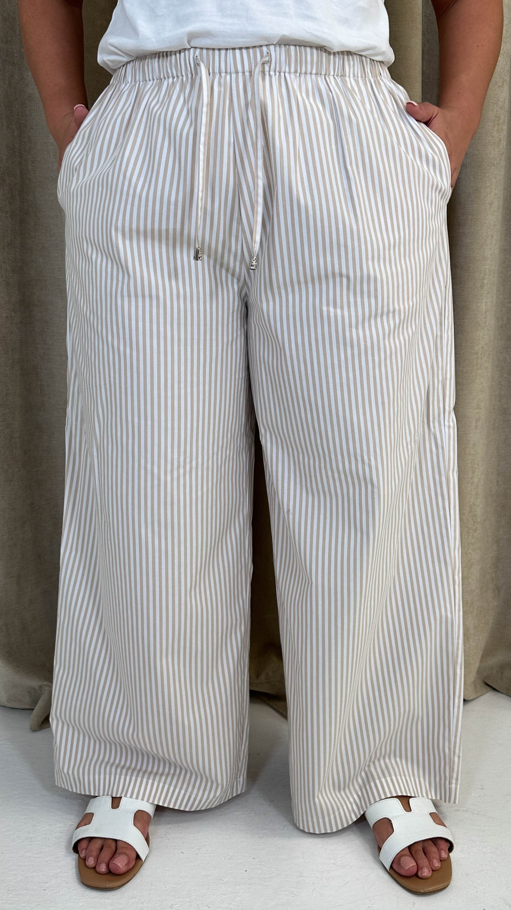 CurveWow Linen Stripe Wide Leg Trousers Sand