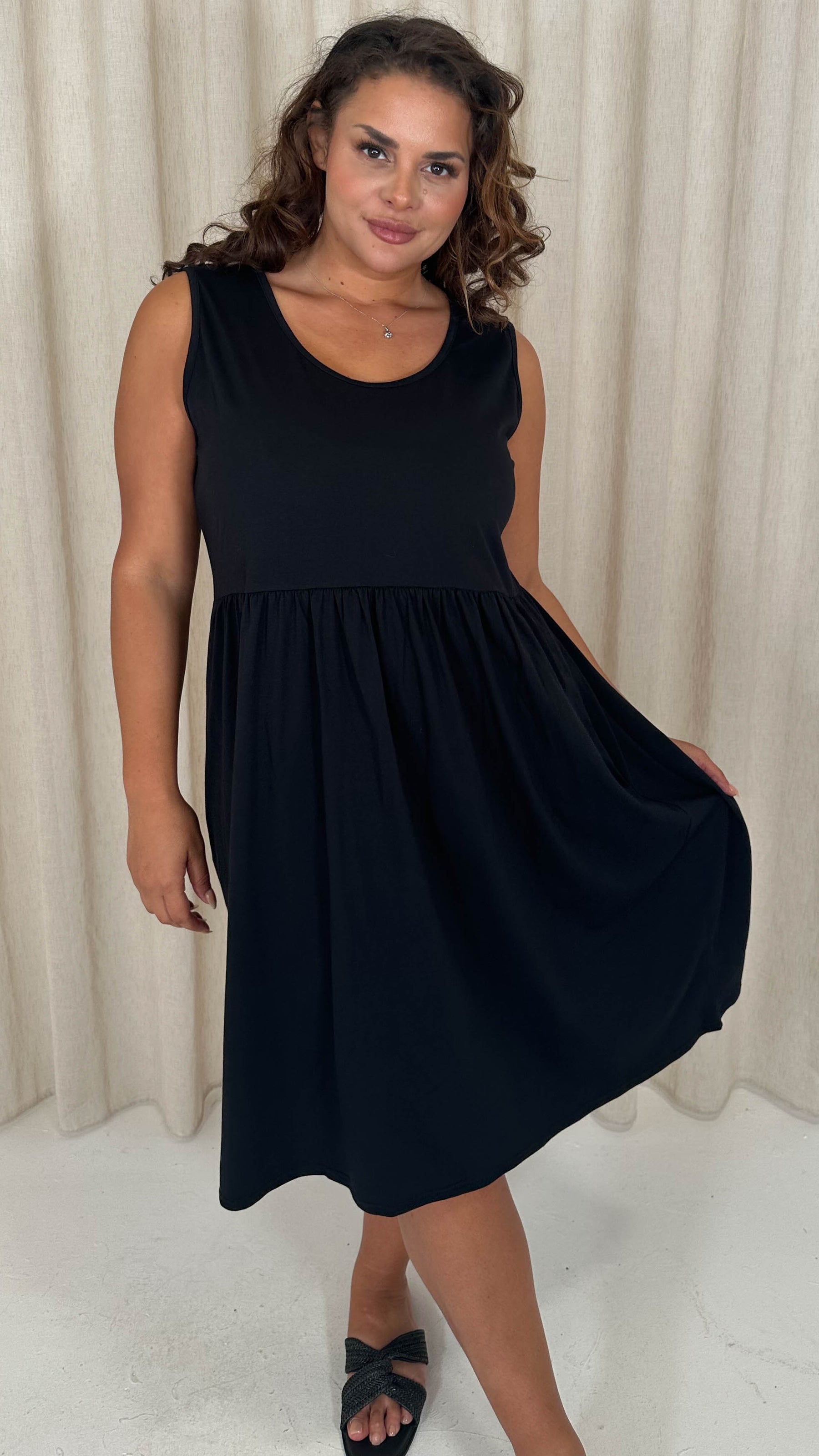 CurveWow Basic Sleeveless Pocket Dress Black