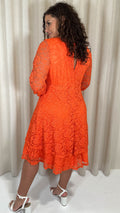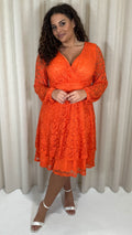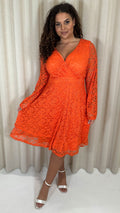 CurveWow Lace Plunge Ruffle Skater Dress Orange