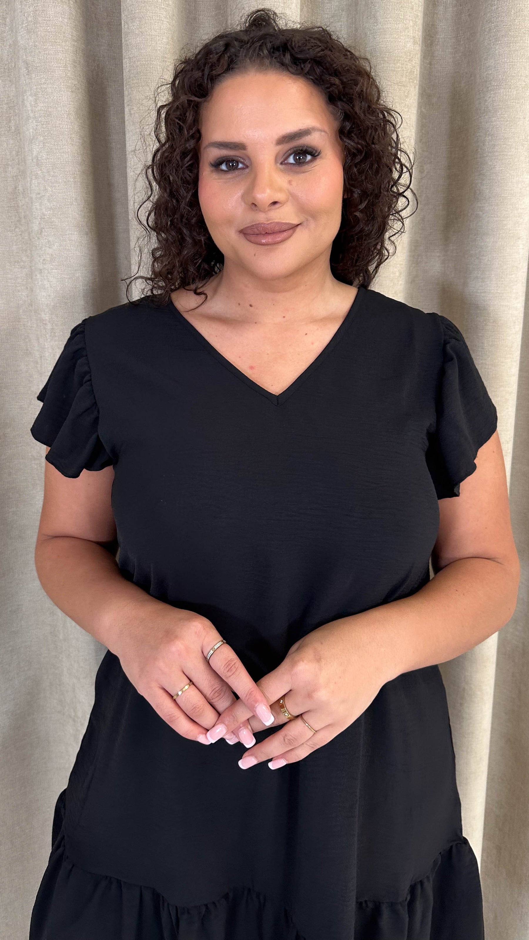 CurveWow Ruffle Tiered Mini Dress Black