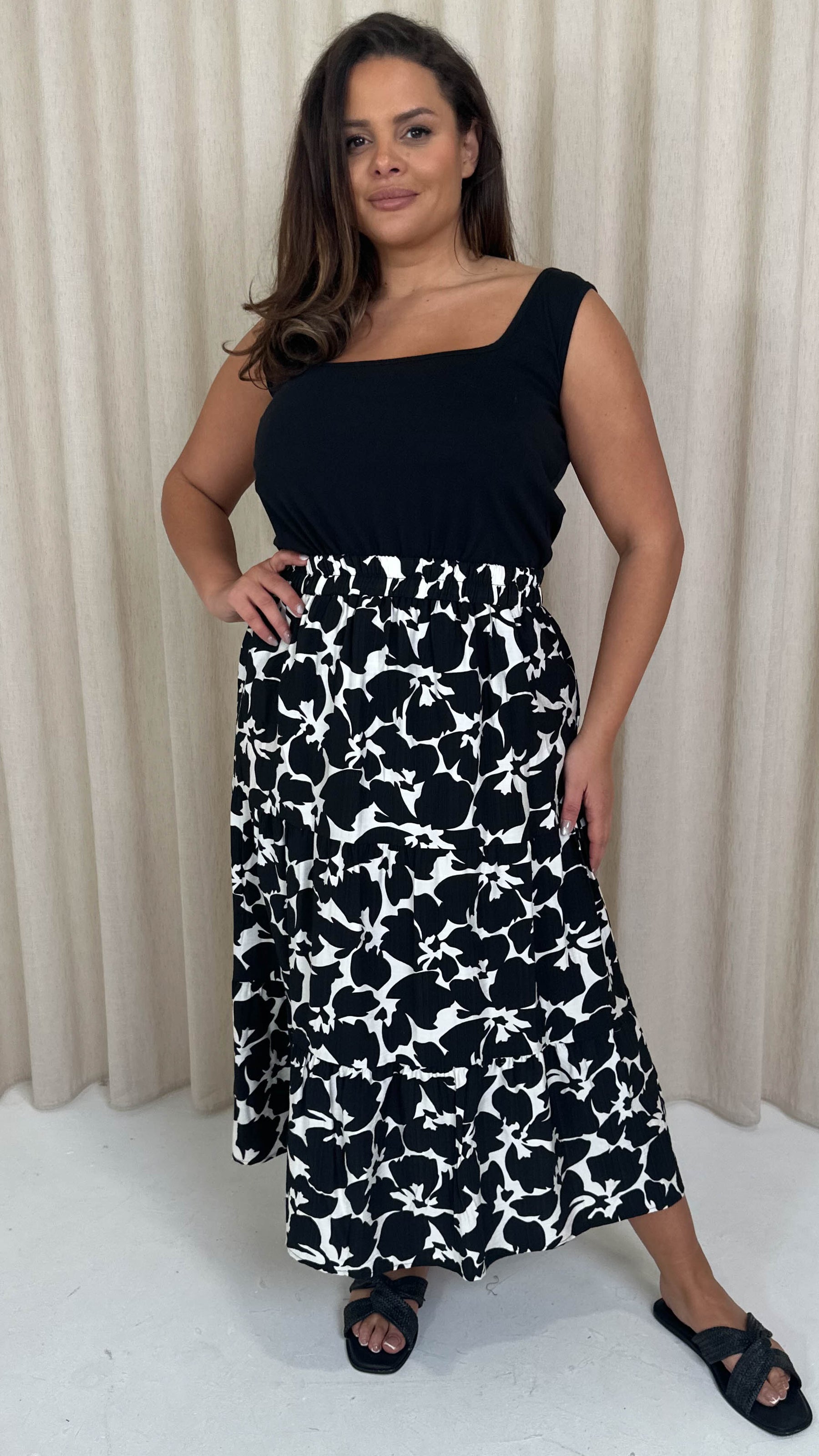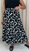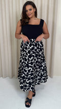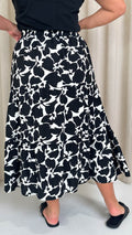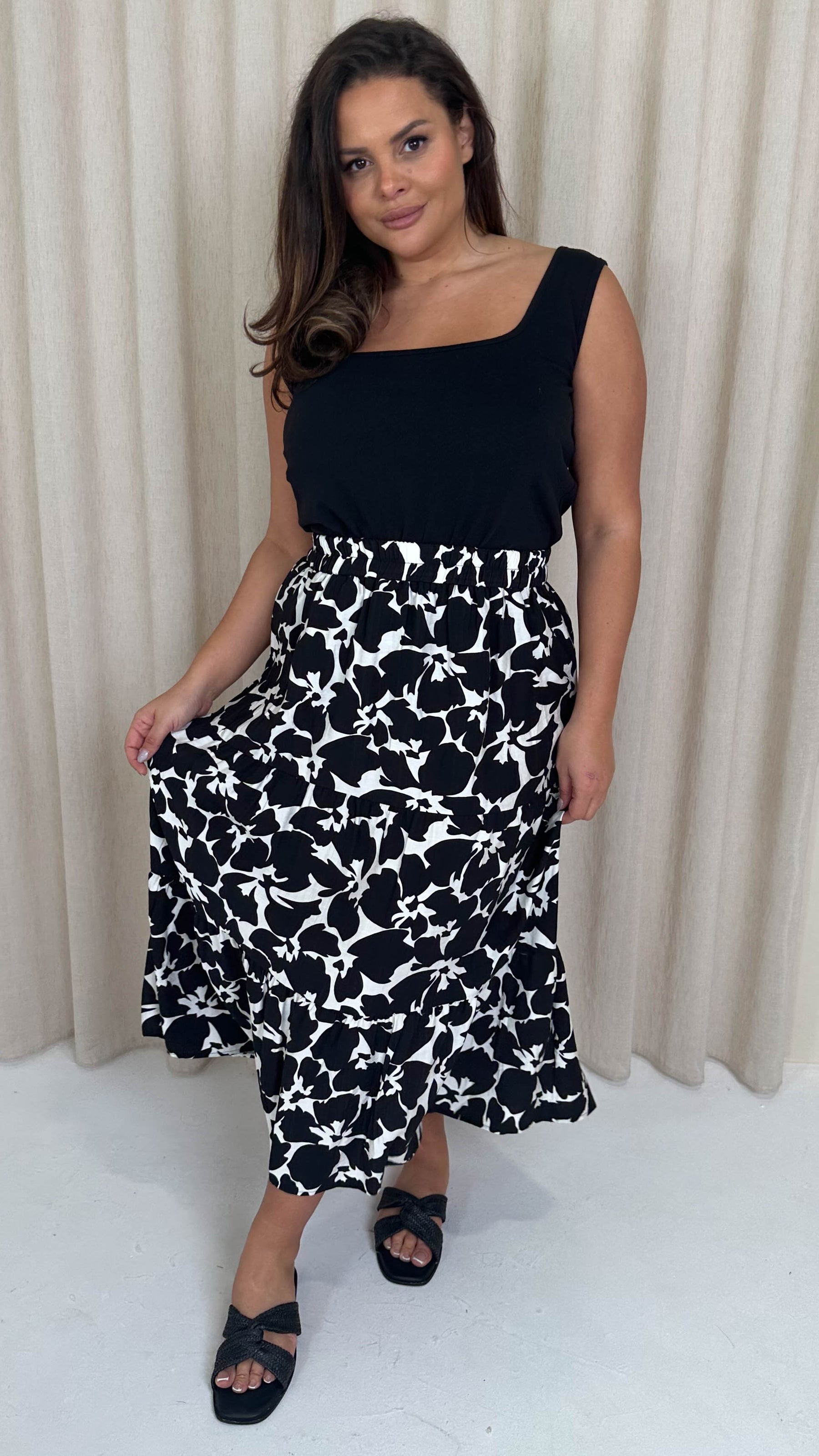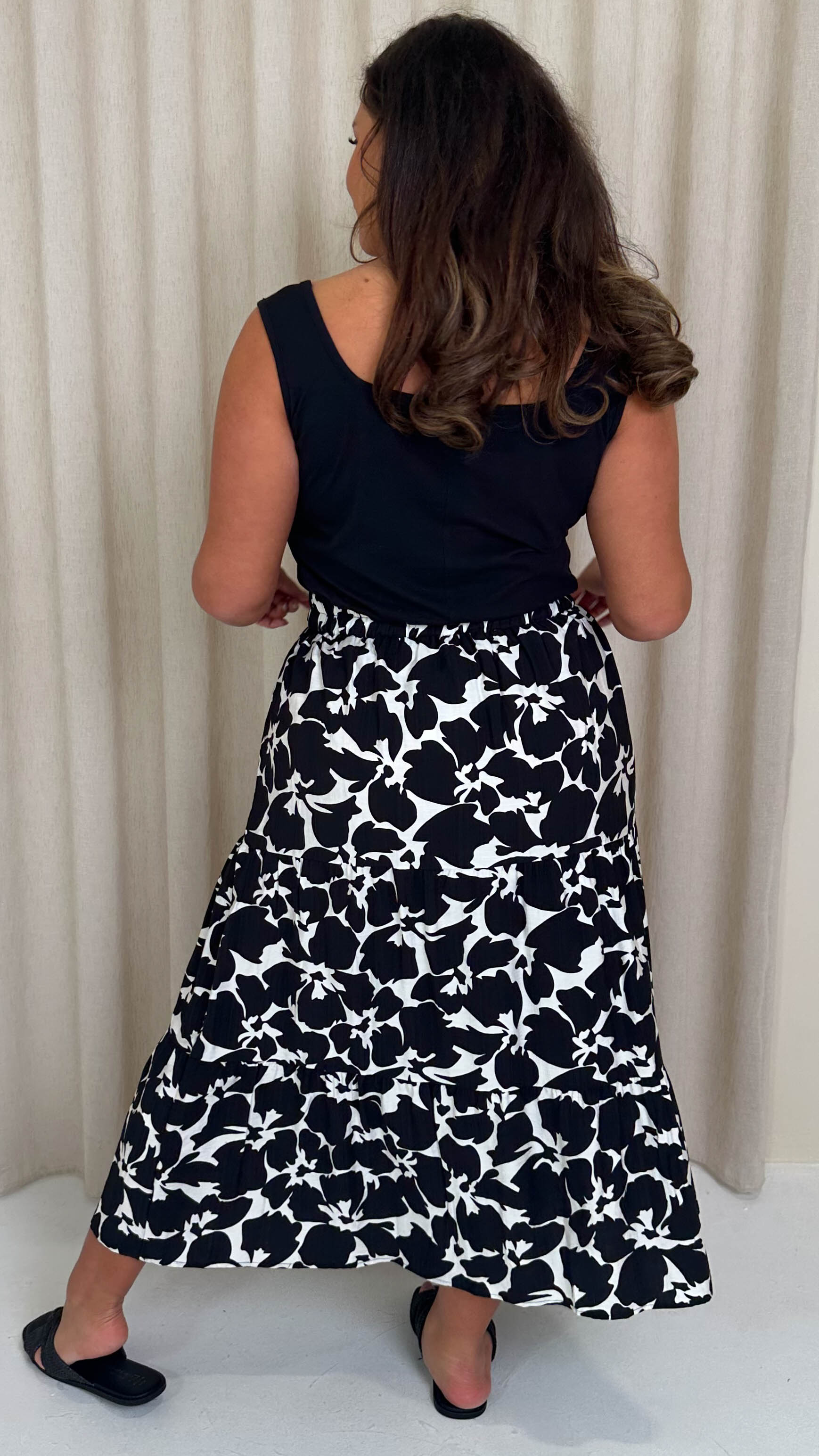 CurveWow Elasticated Waist Tiered Maxi Skirt Black Floral