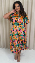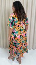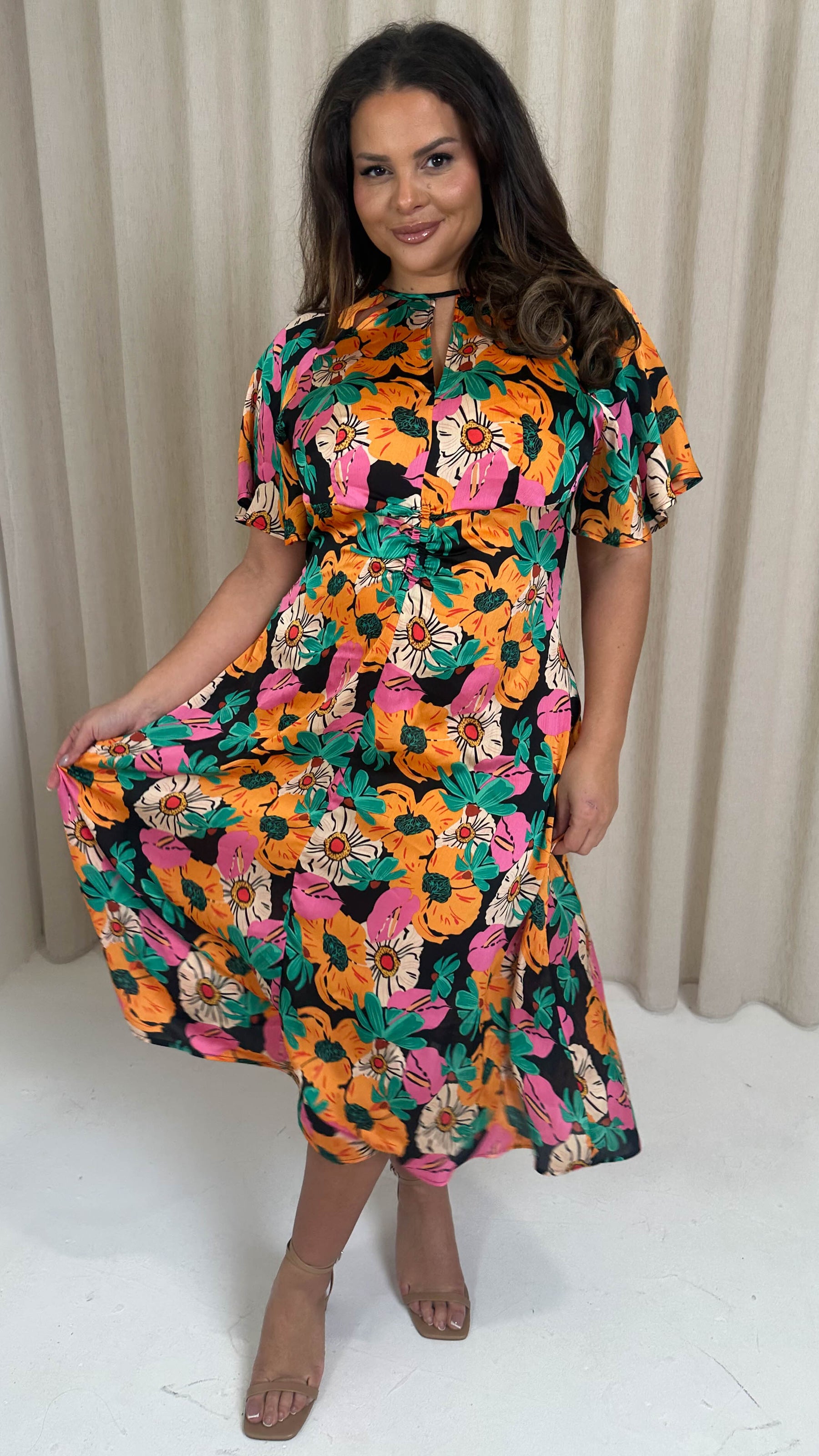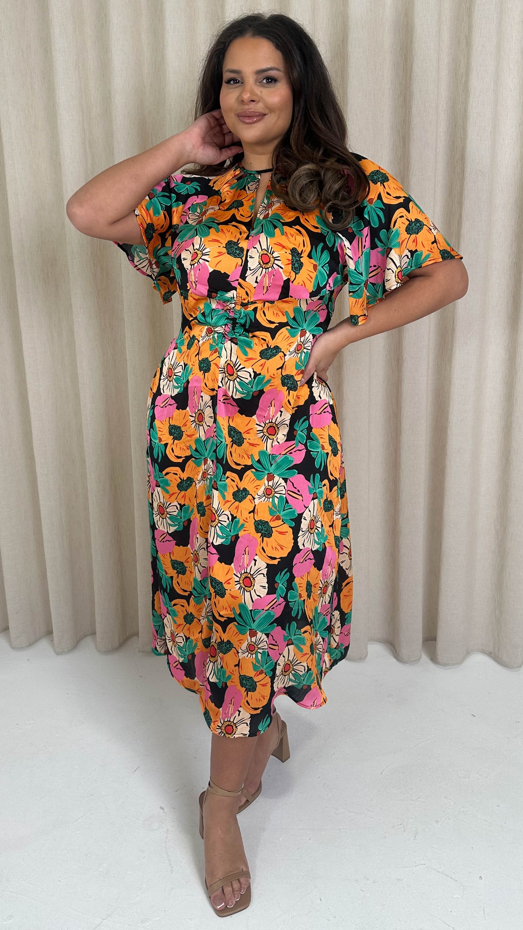 CurveWow Floral Cut Out Midi Dress Multi Floral